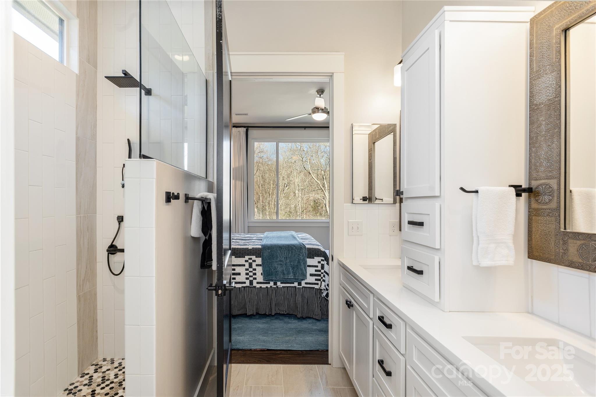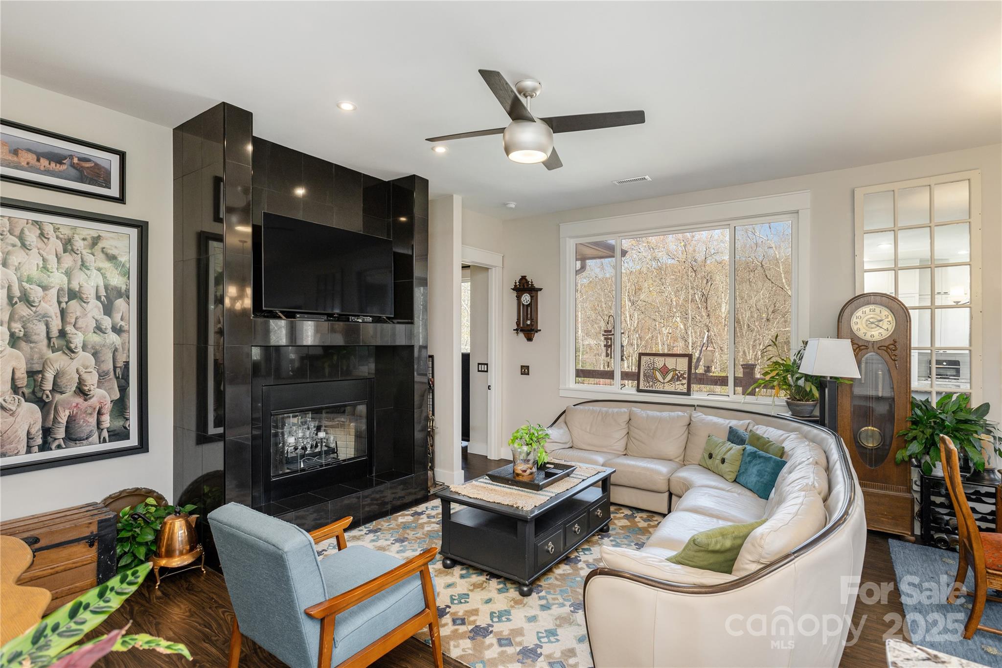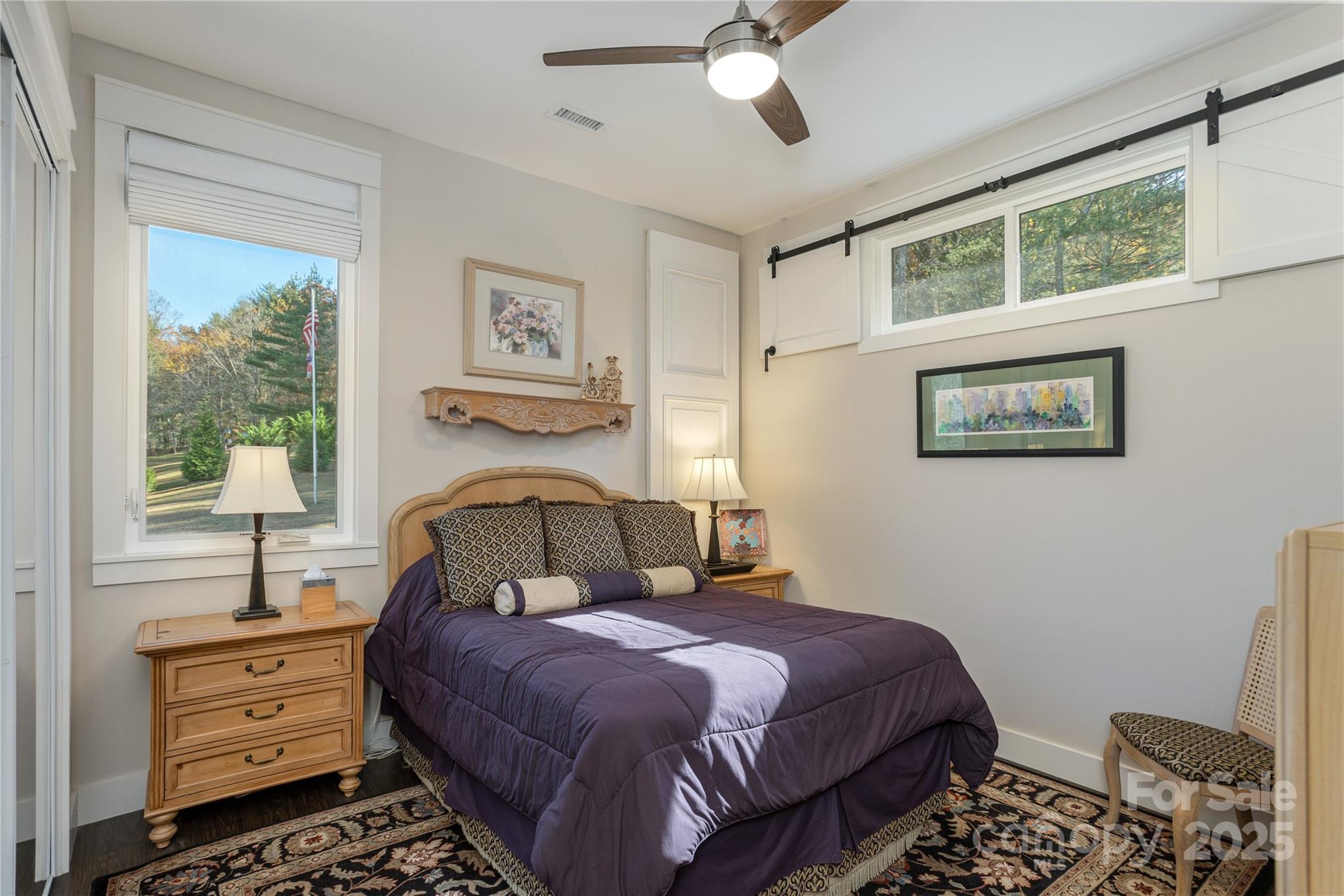 Imagine a life where luxury feels effortless: six acres of beauty, a creek, and a home that is artfully designed and perfectly scaled. Every inch of this one-level residence reflects thoughtful design, quality materials, and a connection to nature that’s rare to find. Ten-foot ceilings and eight-foot doors create an easy sense of volume and light throughout. The home’s large picture windows frame the landscape. Throughout the home, every finish has been elevated. Granite or quartz surfaces, luxury vinyl plank floors throughout, designer lighting and ceiling fans, barn-door shutters, a custom reading nook, custom mirrors, shades and drapery. Even the laundry room offers front-loading appliances and thoughtful counter space. The great room is anchored by a wood-burning fireplace and balances warmth, style and functionality. With sightlines to the kitchen and dining area, it’s a space that keeps everyone connected while feeling spacious and calm. An east-facing, light filled chef’s kitchen, makes cooking and gathering a pleasure. Soft-close cabinetry reaches to the ceiling and slide-out shelves keep everything within reach. A secret walk-in pantry lights up as you step inside, offering practicality with a touch of surprise. The oversized island invites conversation and connection, with hidden storage and a built-in microwave tucked neatly away. Every detail has been considered, from the outside-vented range hood, to the thoughtful flow that makes entertaining easy and everyday tasks effortless. Work or create in the office with built in desk, concealed printer space and custom storage, then retreat to the primary suite designed for relaxing and recharging. The large picture window, modern bookcase and extra large walk in closet greet you on your way to a spa-like en suite bathroom where every feature blends purpose and indulgence: a wall heater for chilly mornings, a floor-to-ceiling linen cabinet, low flow toilets, and glass-door shower tiled to the ceiling. Outdoors, continue living the dream with a screened porch, open deck, and landscaped grounds that bloom in every season—dogwoods, azaleas, rhododendrons, perennials, and three apple trees. Raised garden beds are ready for herbs, vegetables or flowers. A fenced area makes it easy to enjoy the land while keeping pets and children close by. Stroll along the private path leading to Featherstone Creek, a quiet escape at the edge of your property. The insulated two-car garage includes wall-mounted storage. A Japanese rain chain, black brick accents, and a gentle fountain complete the picture: modern comfort grounded in natural beauty. Come see how peaceful luxury can feel.