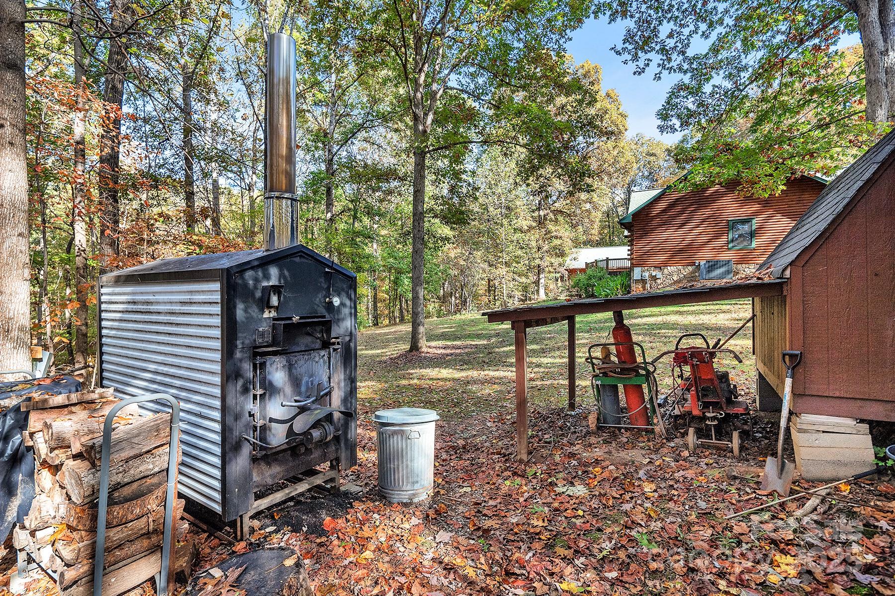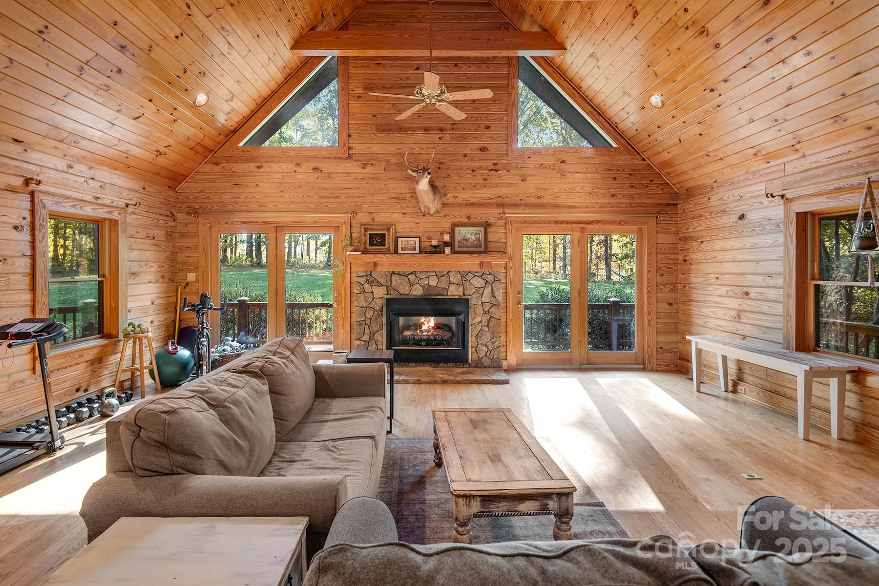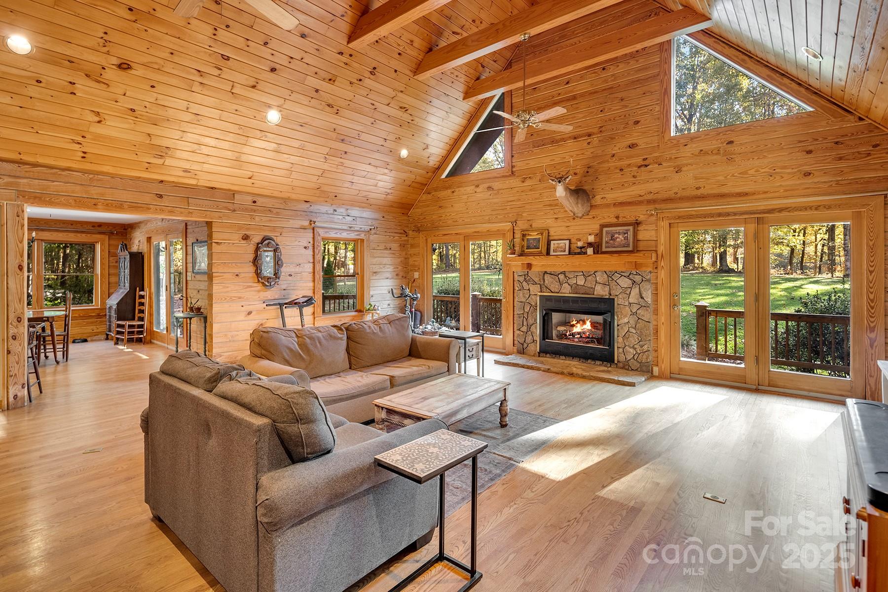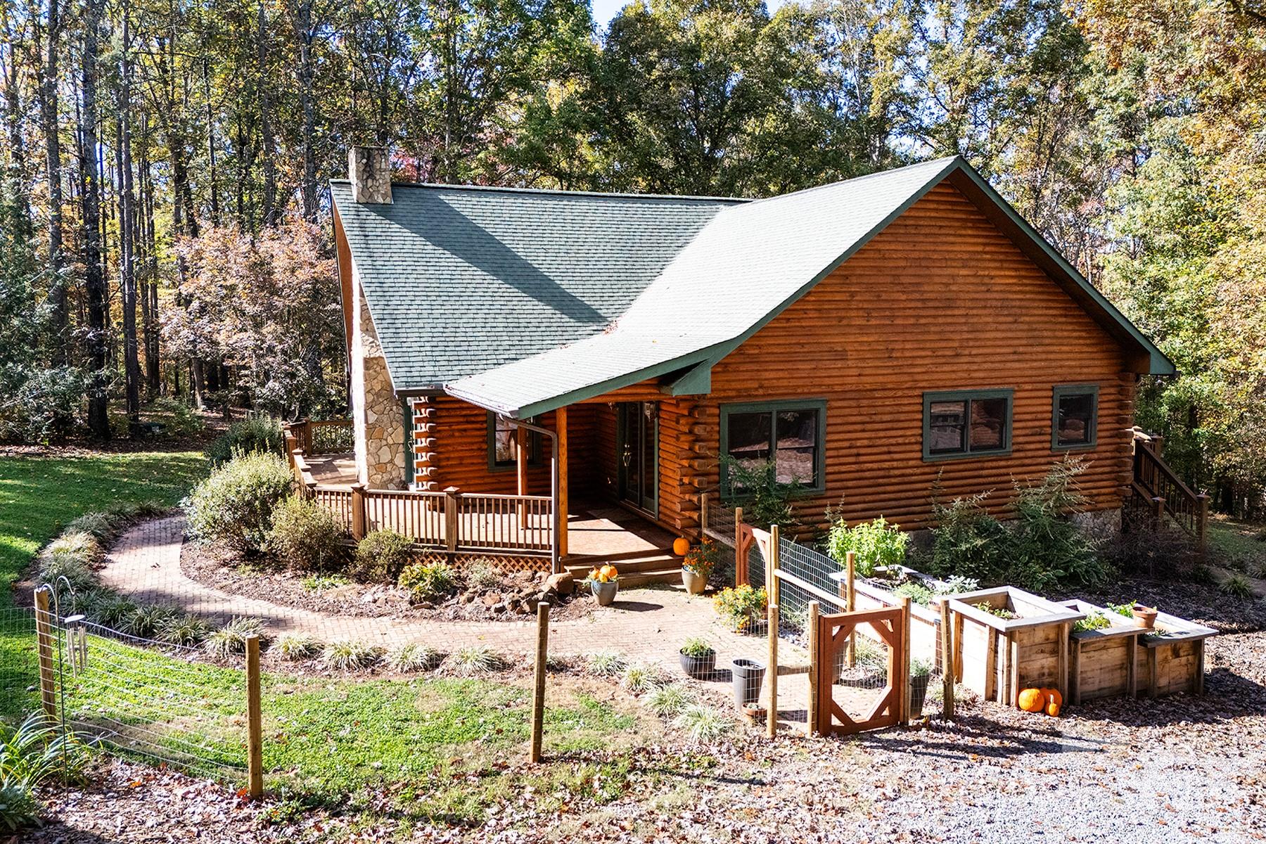 Tucked away at the end of a long private gravel drive, this custom log home rests on 10+ peaceful acres, offering the perfect mix of rustic charm and modern comfort. Step inside to a bright, open layout filled with warmth and natural light. The spacious kitchen features granite countertops, abundant cabinetry, and a sunny breakfast nook that opens to the back deck—ideal for morning coffee or evening sunsets. The living room showcases vaulted wood ceilings and large windows, creating an inviting great room that feels both open and cozy. A separate dining room with double doors also opens to the deck, making indoor-outdoor entertaining easy. The primary suite includes private access to the covered wraparound porch, a quiet spot to enjoy the sights and sounds of nature. Two additional bedrooms, a full hall bath, and a half bath offer comfort and flexibility for family or guests. Outside, you’ll find room for work, hobbies, and play. The property includes two detached carports and a two-car garage with a finished bonus room above, accessible by exterior stairs—perfect for an office, studio, or guest suite. There are also three outbuildings, one with electricity, plus a chicken coop ready for your backyard flock. Designed for comfort and efficiency, the home offers two heating options: a new 16 SEER, two-stage HVAC system for modern convenience and a Taylor 450 wood-burning stove for cozy winter nights. Whether you’re dreaming of a peaceful country lifestyle, a weekend retreat, or a welcoming place to gather with family and friends, this property has it all—space, privacy, craftsmanship, and timeless appeal. Every corner reflects thoughtful design, blending natural textures with modern amenities. Come experience the peace and beauty of this special log home—where light pours through tall windows, the air feels a little fresher, and every view reminds you why you came home.