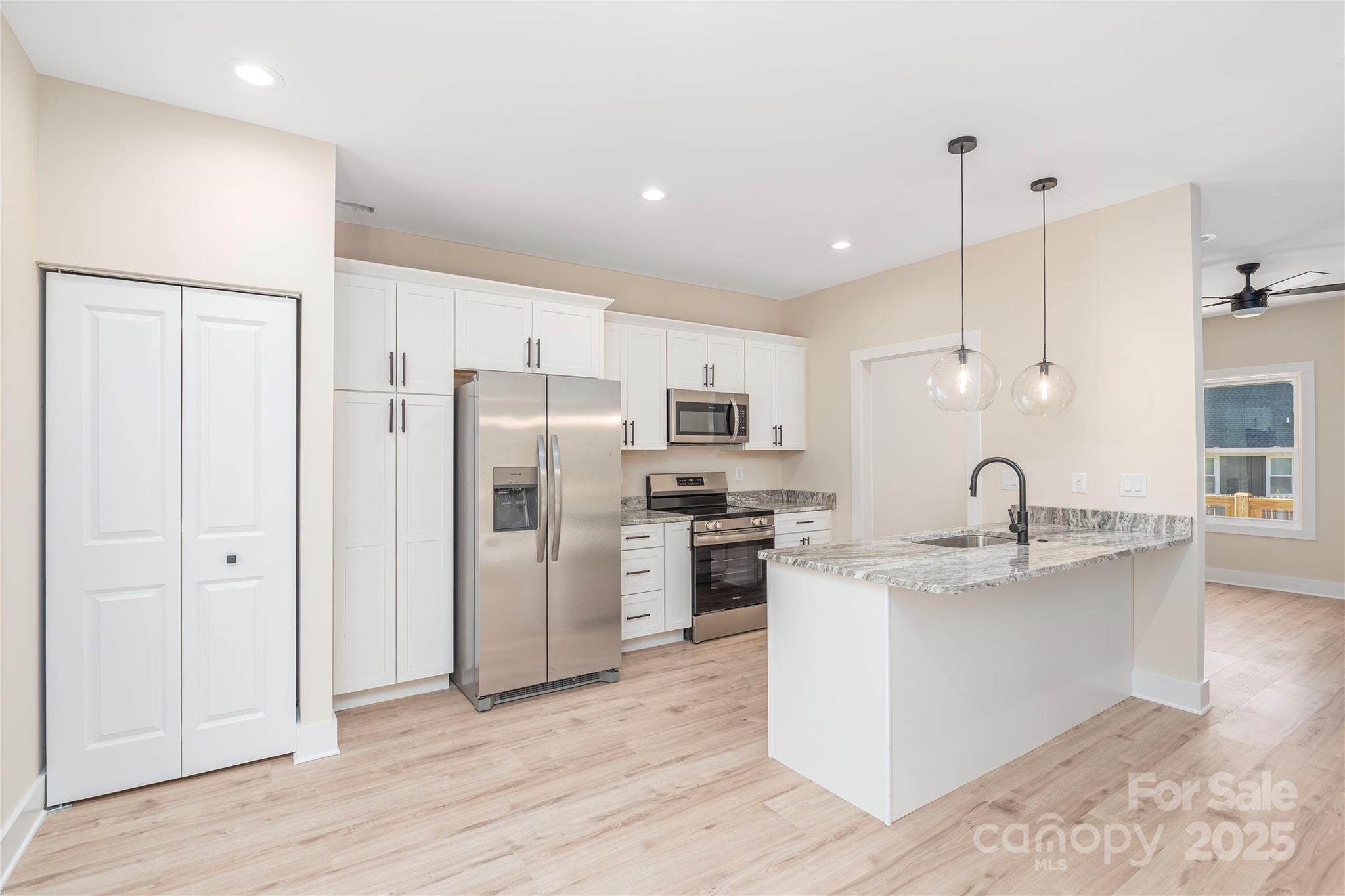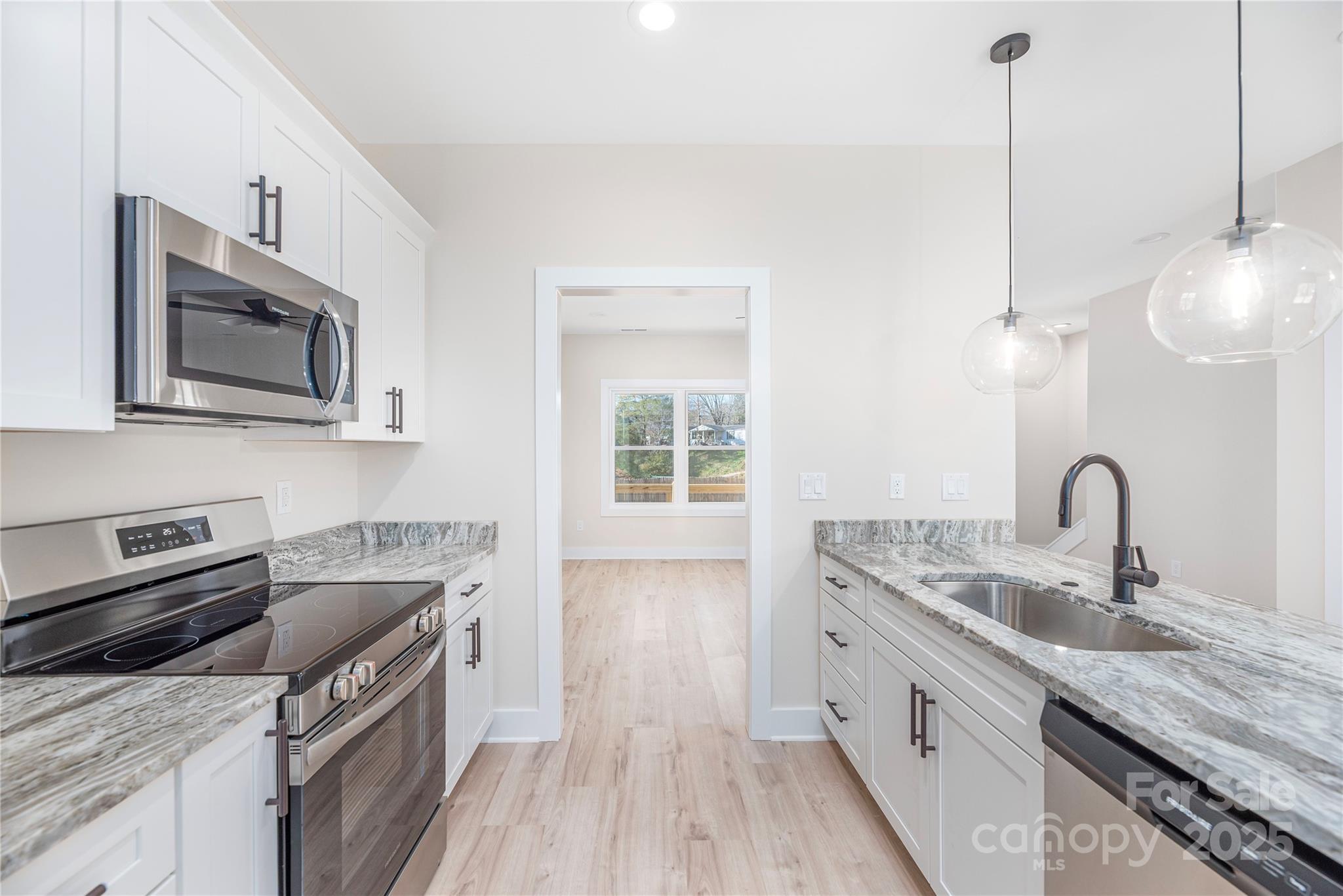 Welcome home to this bright and inviting new construction, perfectly located just minutes from downtown Asheville and UNCA. Step inside to a spacious open floor plan with luxury vinyl plank flooring that flows throughout the whole house. The gourmet kitchen is the heart of the home, featuring granite countertops, stainless steel appliances, and a large island with bar seating—perfect for casual meals or entertaining friends. From the dining area, step out onto your back deck and enjoy evenings grilling or relaxing outdoors. Don't miss the side yard with a level spot for garden or play area. Upstairs, you’ll find two comfortable primary suites, each with its own private bath, offering flexibility for guests or roommates. A covered front porch adds to the charm, inviting you to unwind and take in the friendly neighborhood vibe. With a concrete driveway, extra parking, and excellent curb appeal, this move-in-ready home offers modern style and low-maintenance living. Schedule today as it is priced to sell!