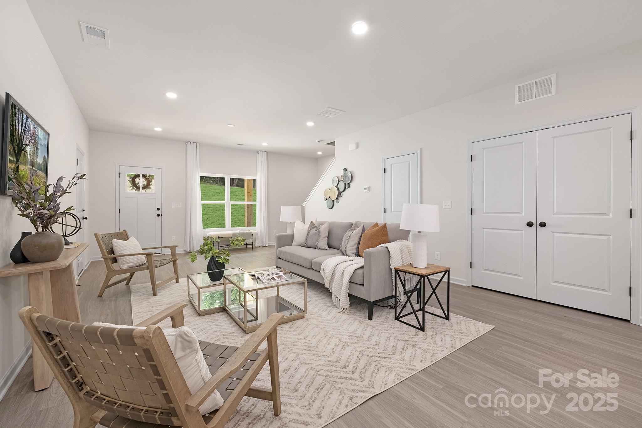 New Construction with Modern Farmhouse Style! Open and inviting, this home features LVP flooring throughout the main level and a bright white kitchen with quartz countertops, pantry, and plenty of recessed lighting. The huge living room is perfect for gatherings. Relax in the spacious primary suite with walk-in closet and a sleek bathroom with quartz, LVP flooring, and black hardware. Guest bedrooms are generous with double closets. Enjoy the rocking-chair front porch, back patio, 1-car garage, large driveway, and charming wooden shutters with stone wainscoting—style and functionality all in one!