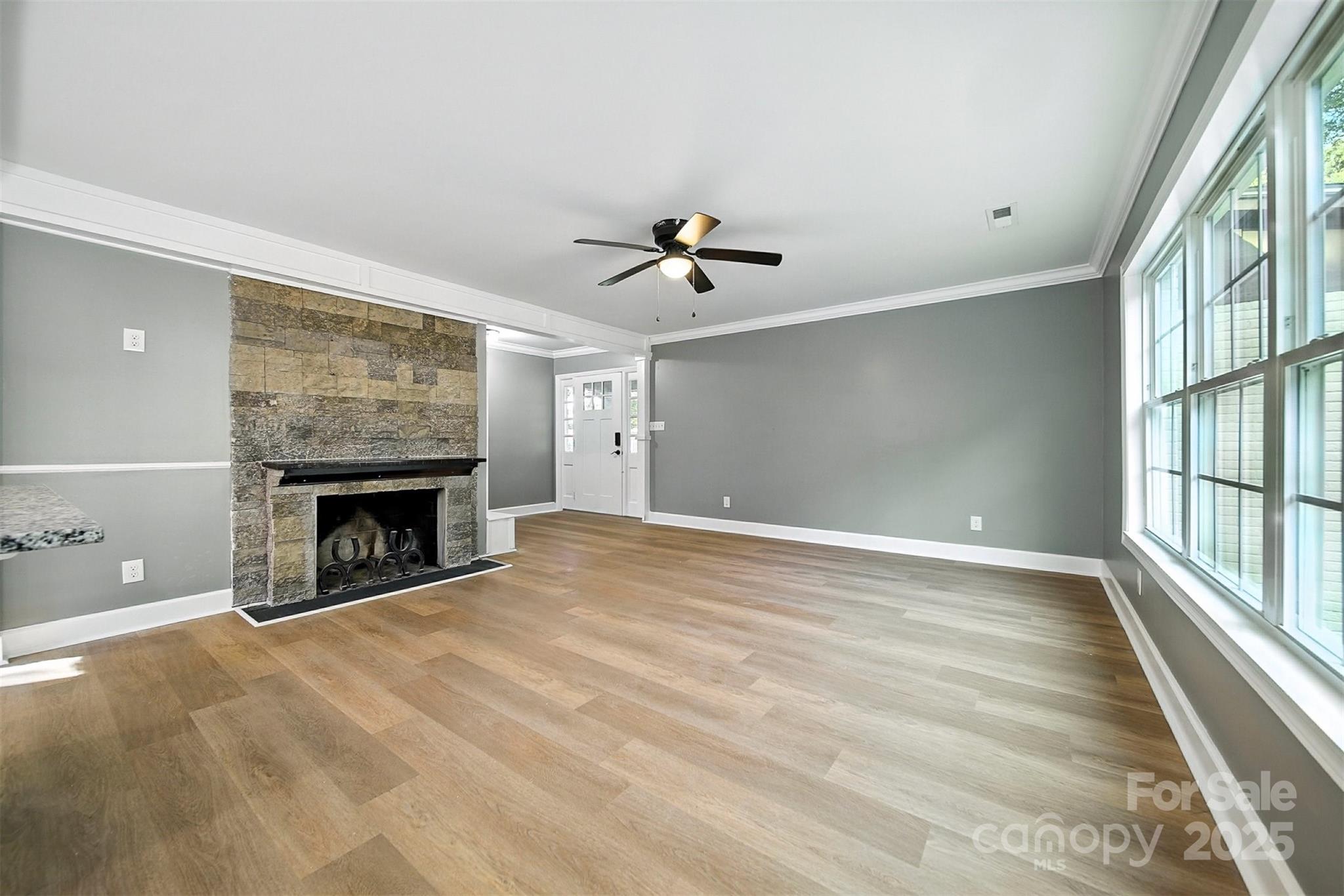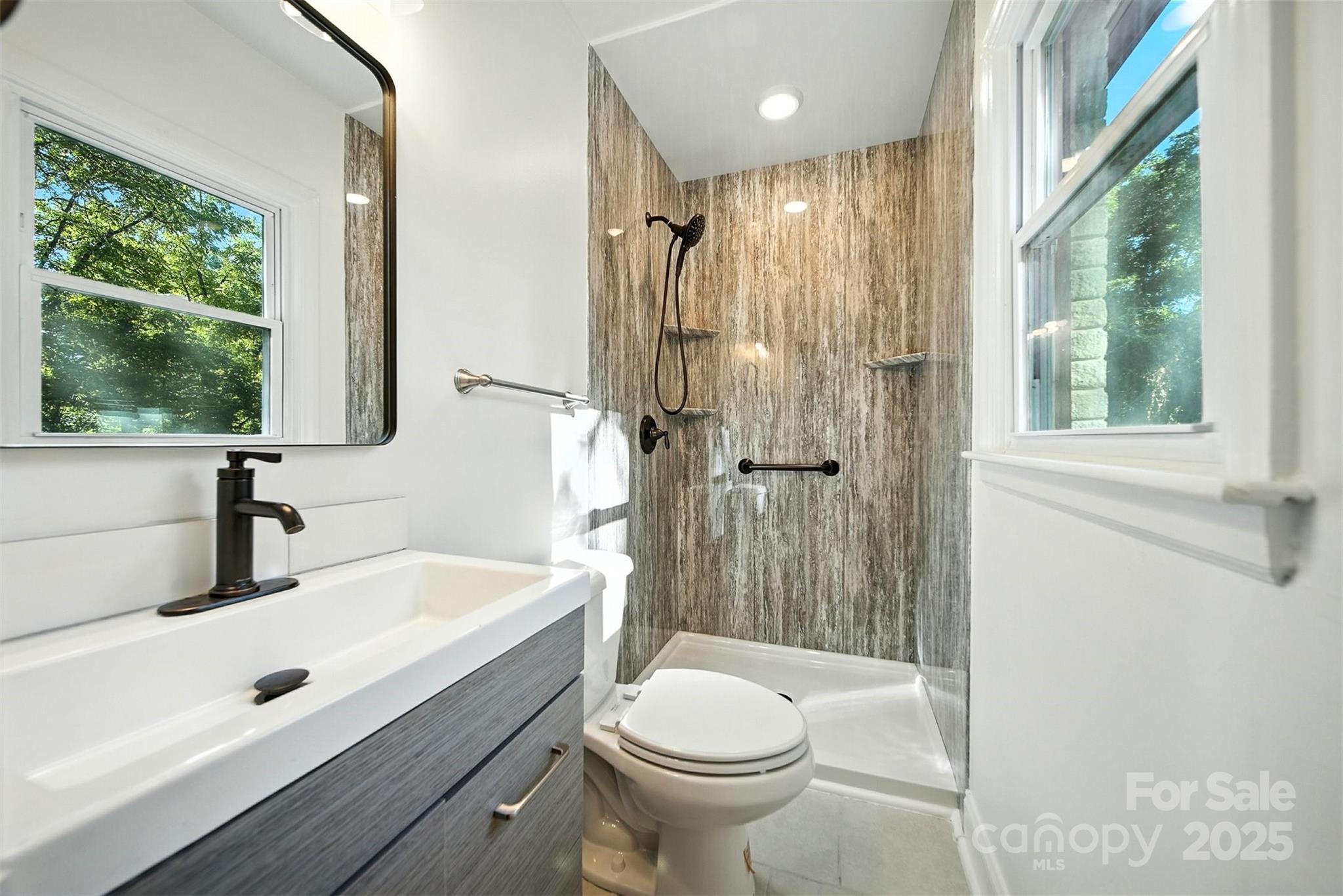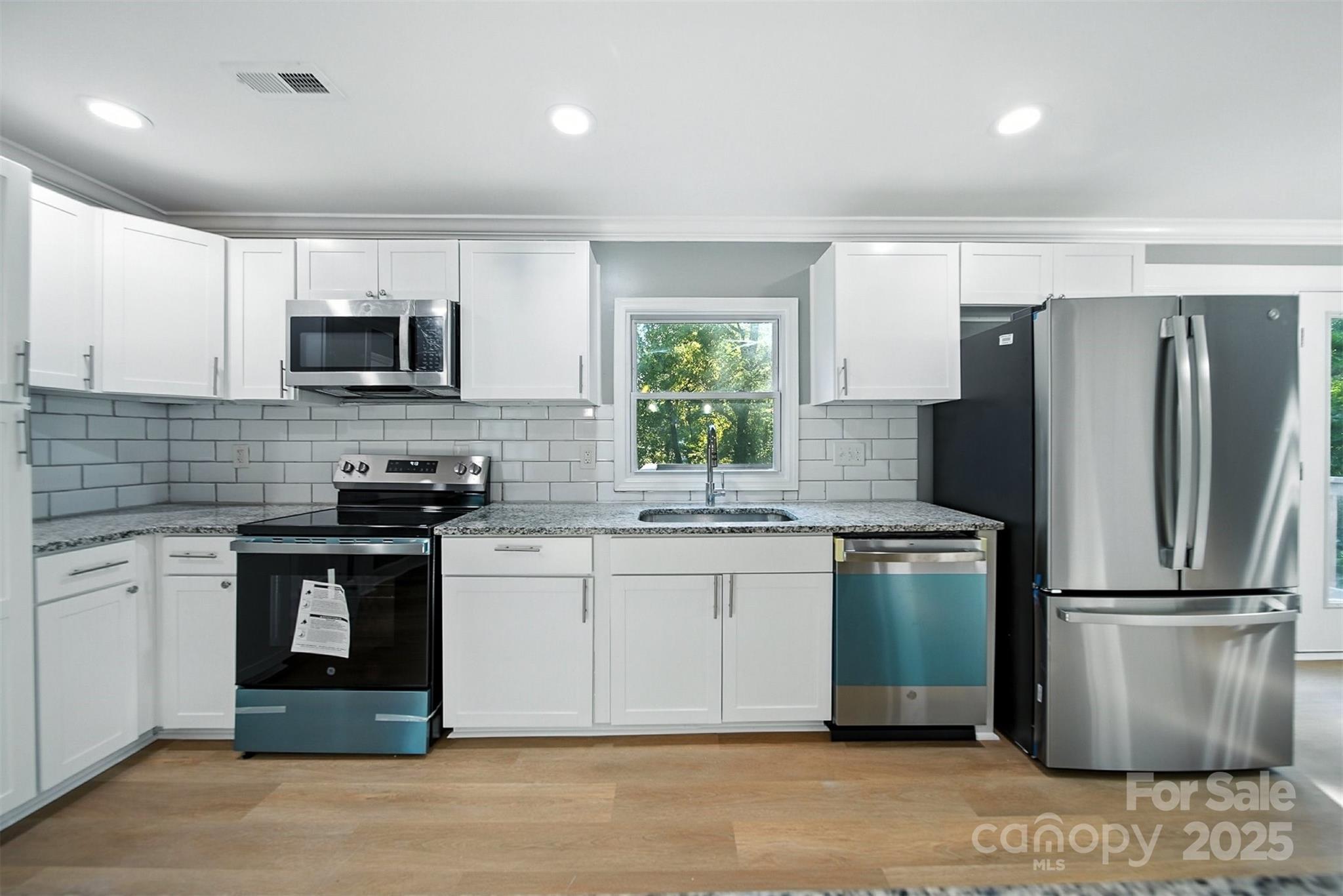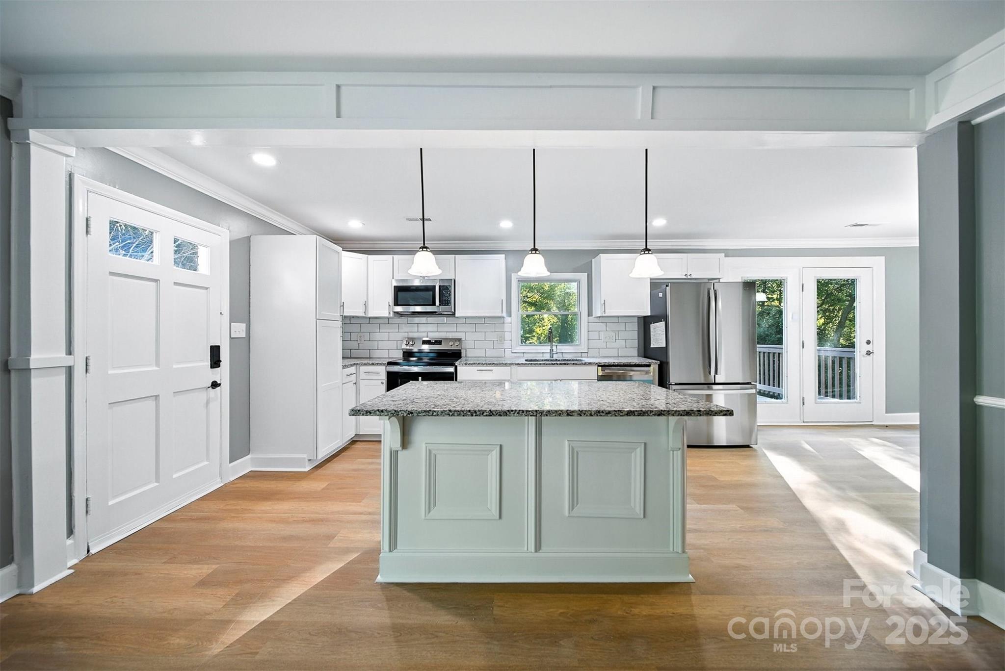 Timeless single-level home on a fenced corner lot in one of Gastonia’s most established neighborhoods. Blending classic charm with modern upgrades, this 3-bedroom, 2-bath beauty offers an open, light-filled layout designed for comfortable living. The inviting living room flows seamlessly into the chef’s kitchen, complete with custom white cabinetry, subway tile backsplash, stainless steel appliances, and a center island with bar seating. The dining area, highlighted by French doors, opens onto a large back deck overlooking a private backyard and creek, perfect for entertaining or relaxing. The spacious primary suite features a sleek ensuite bath with a stunning tiled shower. Hard surface flooring runs throughout for both style and easy maintenance. Curb appeal shines with painted brick, landscaped flowerbeds, and mature surroundings. Conveniently located near shopping, dining, and more! This one is a must-see!