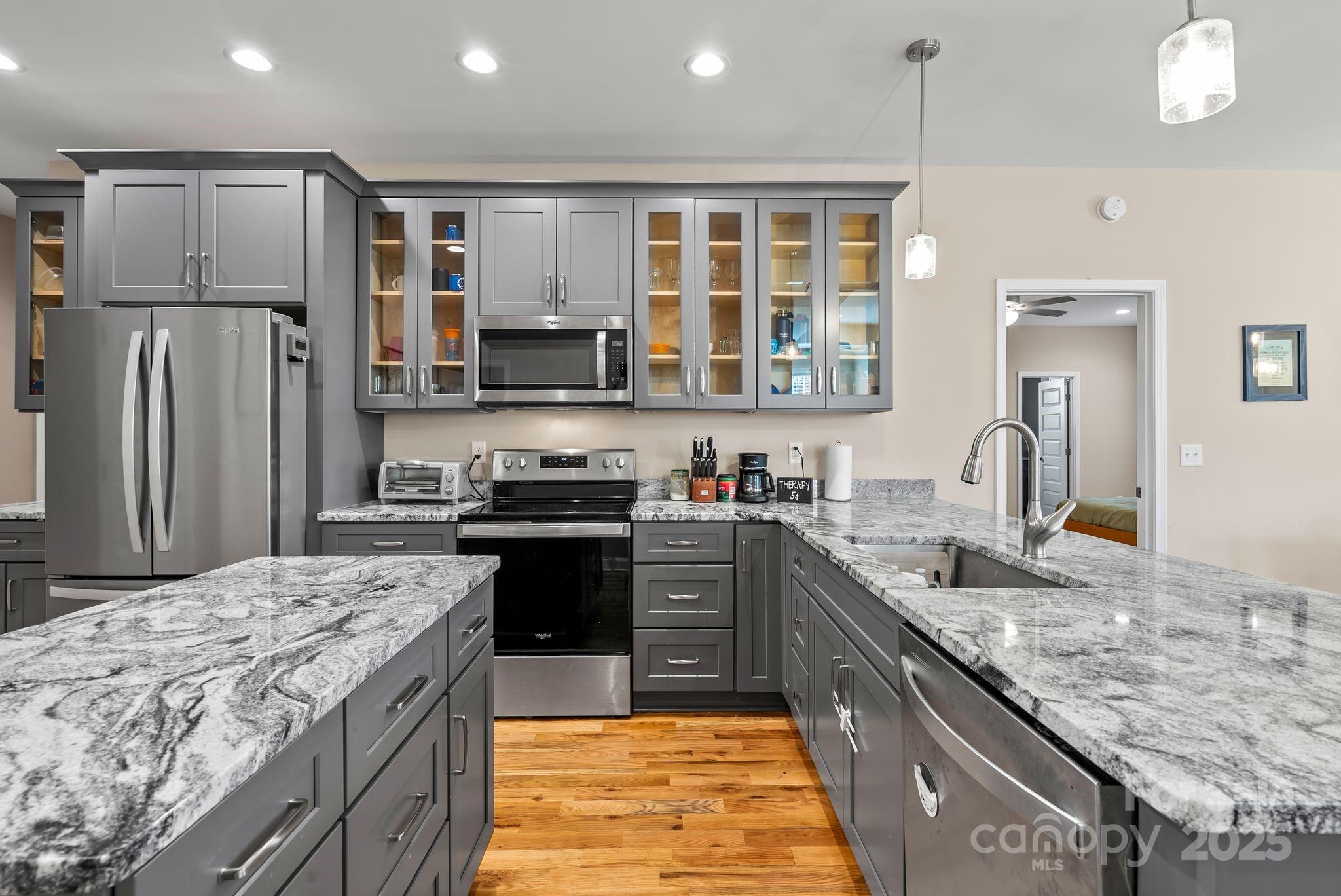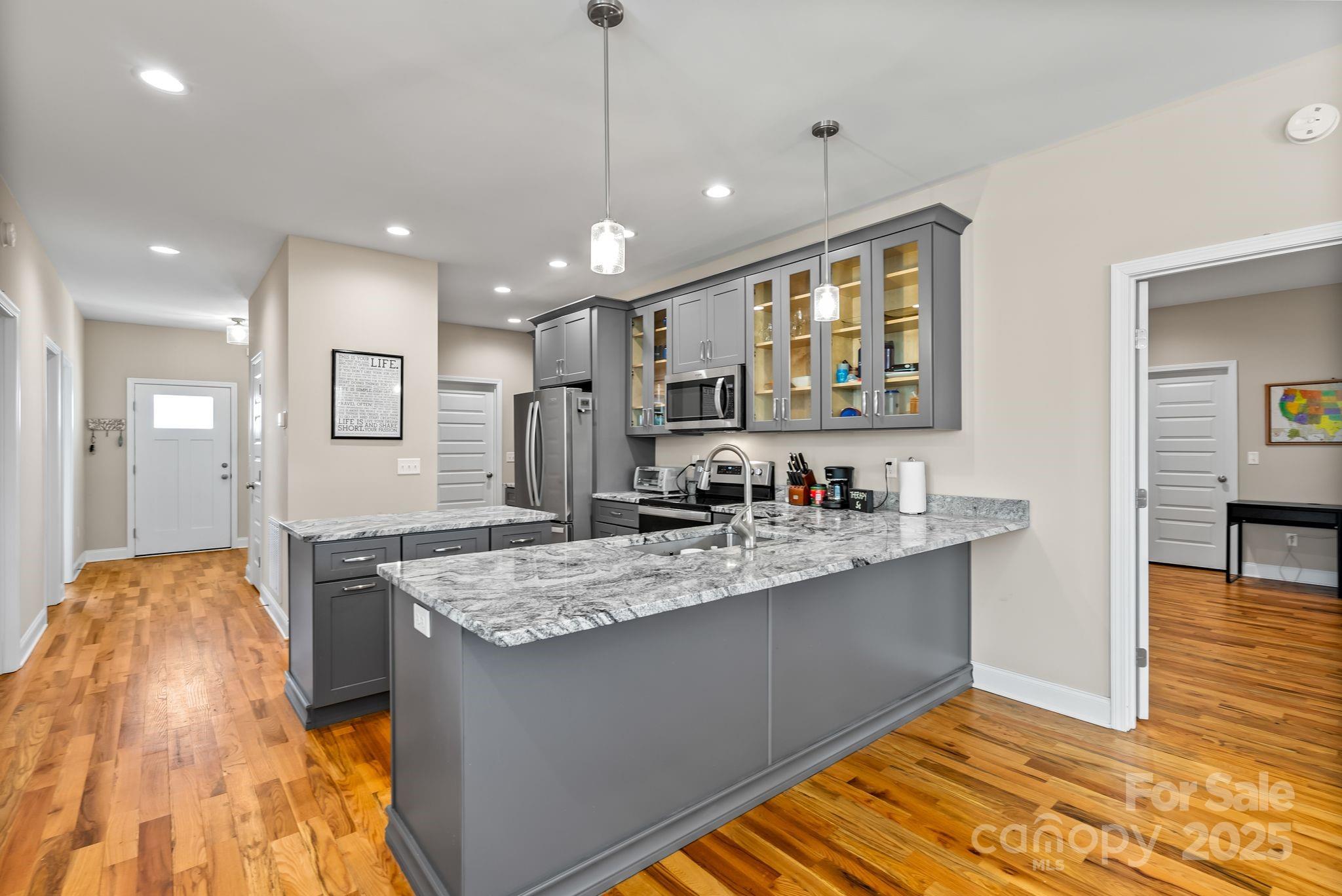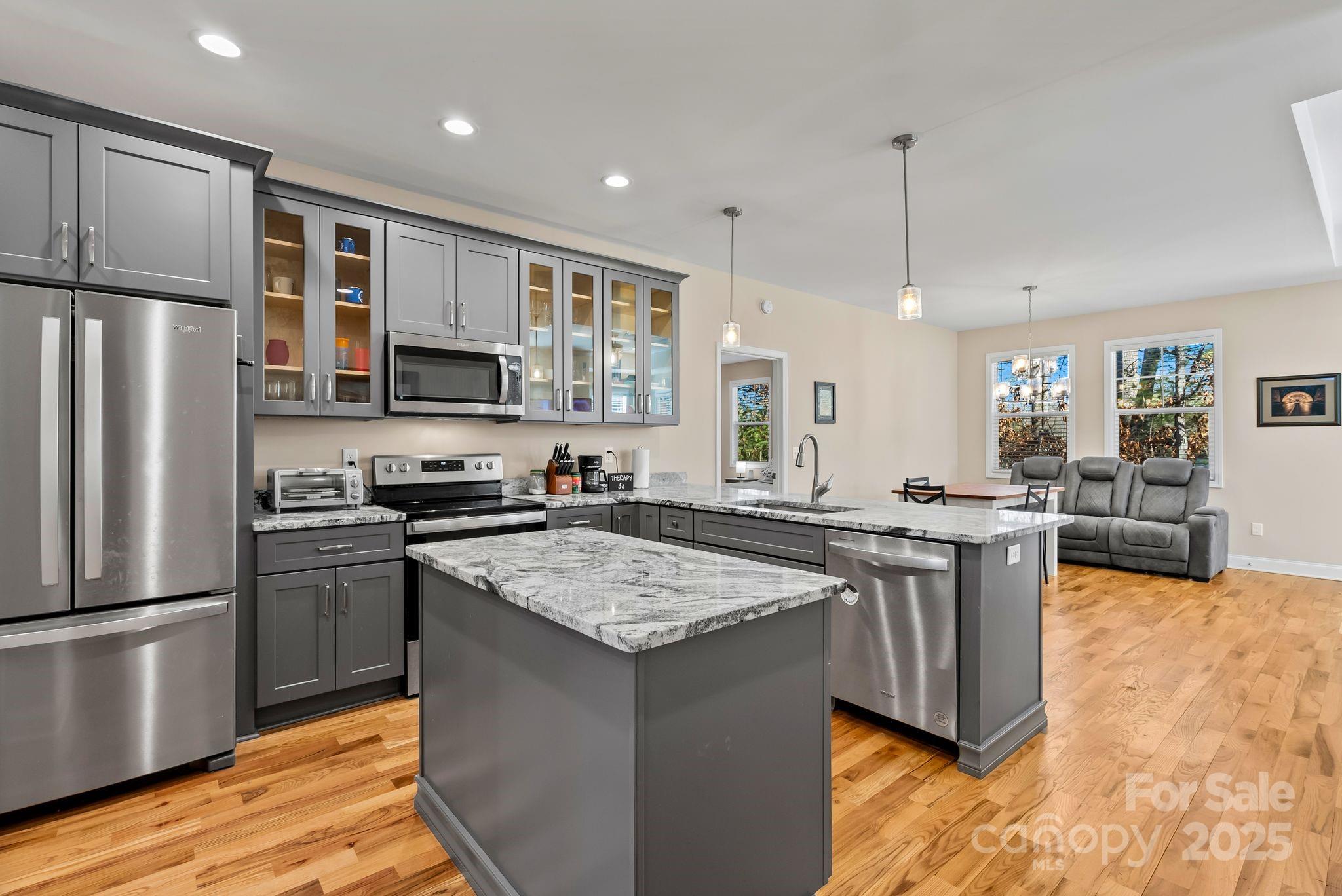 Large, well-maintained home in an attractive & convenient North Asheville community. With 5 bedrooms, 3 full baths, and attached garage, there's plenty of space to spread out & make room for whatever you need. It's really a super flexible layout. Main level features expansive primary suite with walk-in closet, open-concept kitchen/dining with stainless appliances & granite countertops, large living area with gas log fireplace, 2 additional bedrooms and another full bath, plus pantry and laundry room. Upstairs has 2 more large bedrooms, with bonus space and a 3rd full bath in between. Hardwood floors throughout, plenty of closet space, and covered front porch with a nice view out across the neighborhood towards the mountains. This lot is perched on a high spot in the neighborhood, which minimizes any concern about water management. Less than 15 minutes to downtown Asheville & less than 10 minutes to Weaverville. Come take a look today & imagine making this your amazing new home.