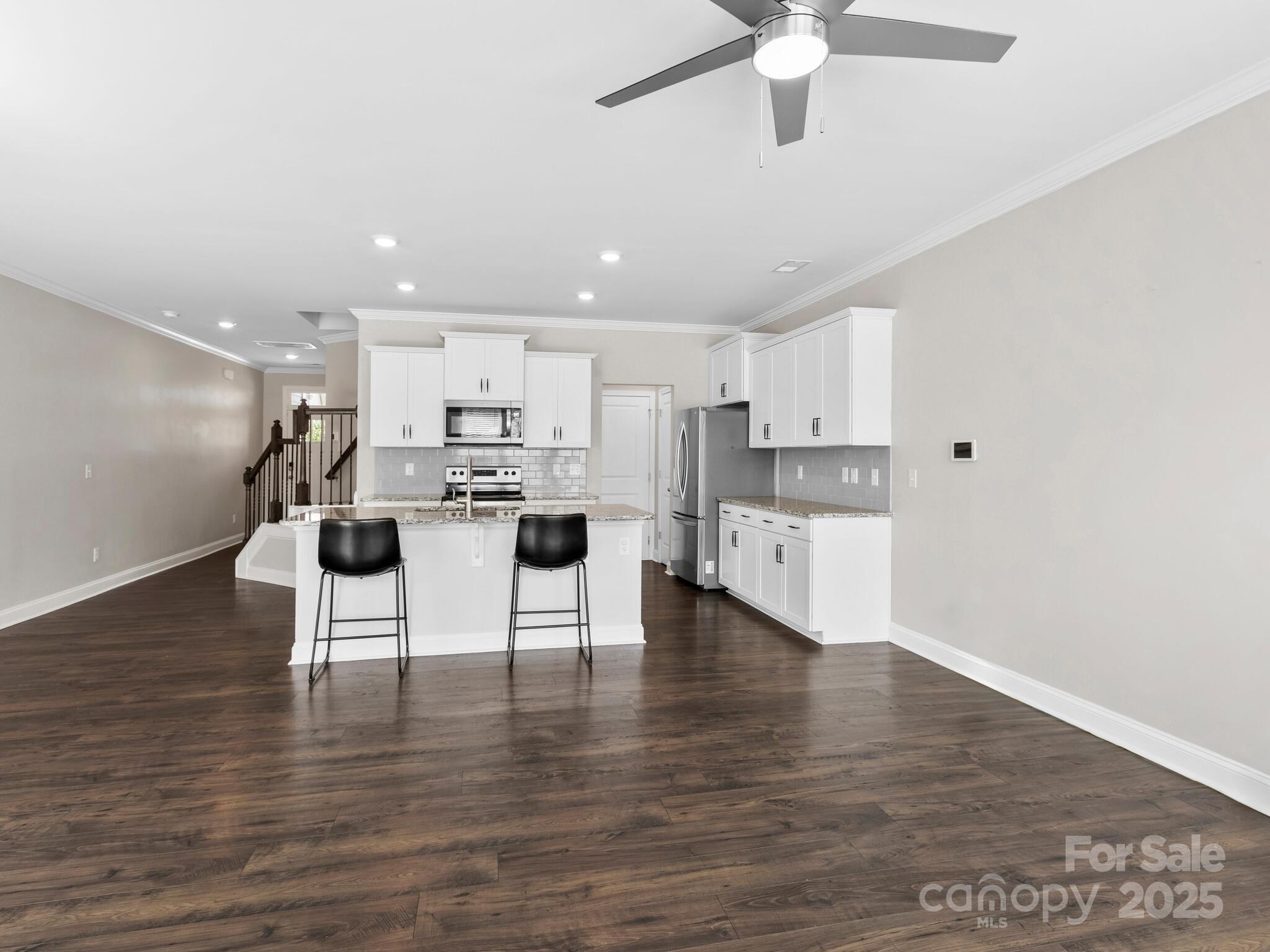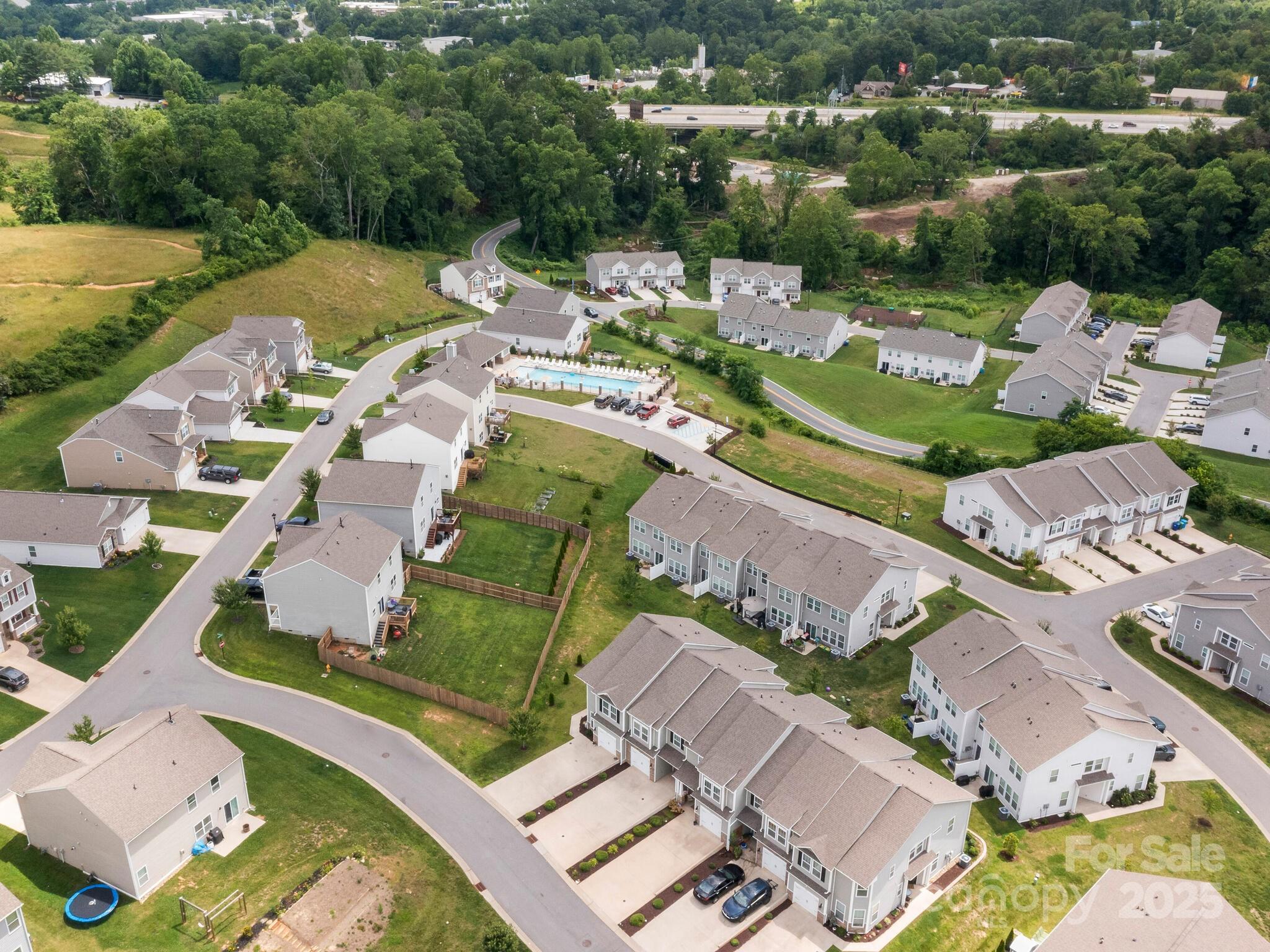 Like new modern townhome within 5 miles of downtown Asheville NC. This 3 bed 2.5 bath home was built in 2021 and offers high ceilings and an open floorplan. The kitchen is equipped with granite counter tops, stainless steel appliances, a large island and breakfast bar. The kitchen flows seamlessly into the dining and living areas which open onto the back patio. The primary suite is generously sized with walk in closet and luxurious bathroom. One car garage attached. Fountain Park is a newer neighborhood with a community pool and cabana to enjoy the warm summer days. Convenient not only to Asheville but also West Asheville, Asheville Outlets, grocery stores, restaurants and outdoor recreation.