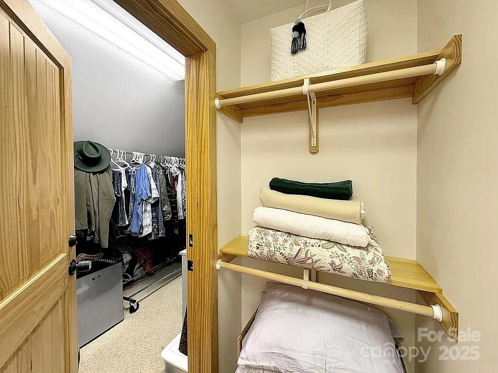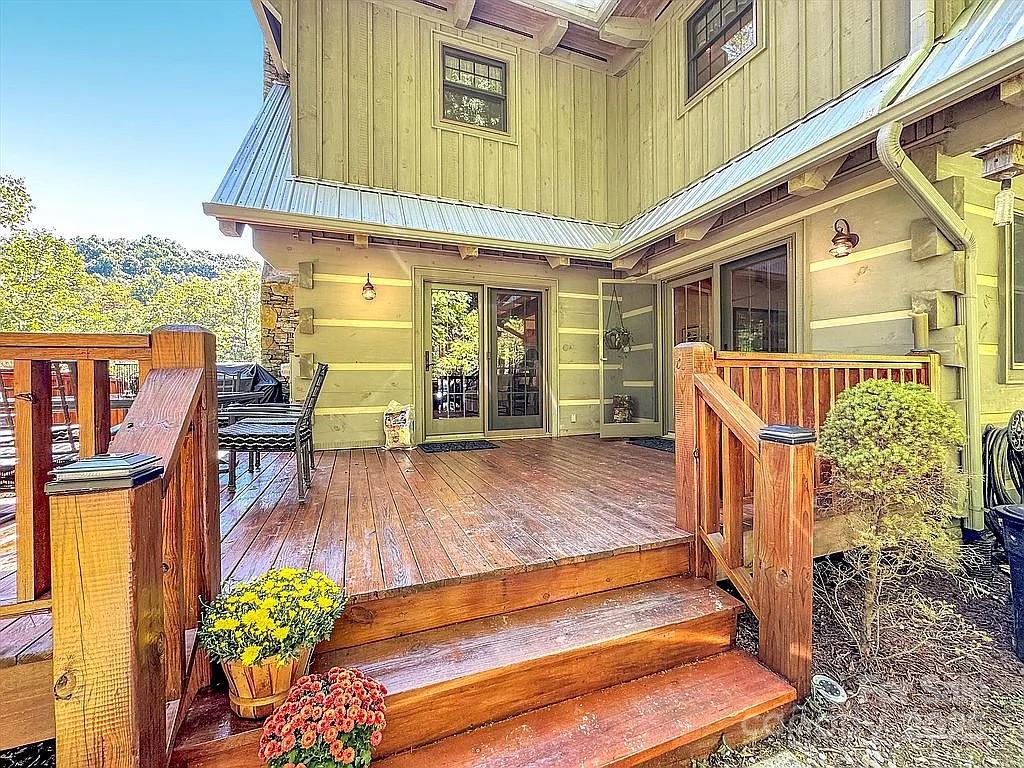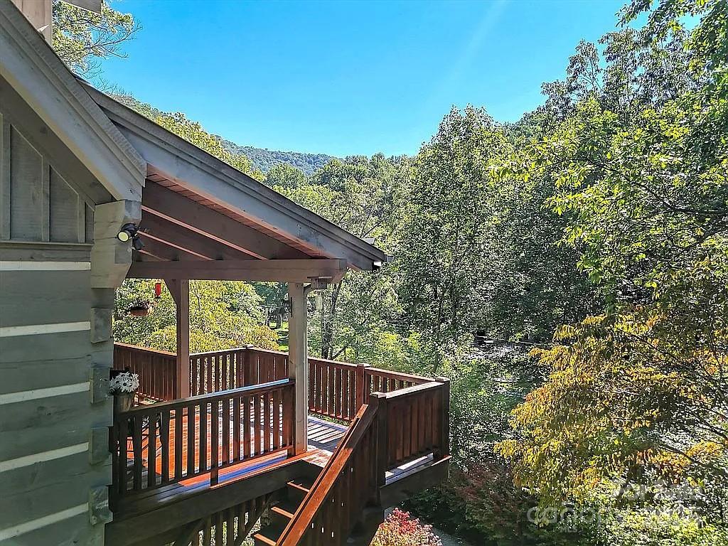 Serene Mountain Retreat Nestled on nearly four secluded acres within a quiet 16-home mountain community, this artisan-crafted log home combines timeless craftsmanship with modern comfort. Constructed with 18-inch hand-hewn dovetail logs, 3-inch chinking, and a durable metal roof, the home offers exceptional energy efficiency, rustic elegance, and enduring quality. Highlights: 2,940 sq ft with 3 bedrooms and 3.5 baths Three combined lots totaling 3.86 private acres Fire-resistant metal roof and double-paned windows for superior insulation Custom wormy wood cabinetry and architectural details throughout Striking stone fireplace and open-concept living and dining areas Walk-out back deck and covered front porch for relaxing or entertaining Outdoor fire pit for gatherings Oversized 2-car detached garage plus attached art studio or hobby space Three finished levels for versatile living Main Level: Primary suite with full bath Custom kitchen and laundry room Deck and front porch access Upper Level: Second primary suite with dormer window and shared full bath Spacious loft with queen bed, lounge area, and owner’s closet Lower Level: Renovated living room with bay window and separate entrance Large bedroom that sleeps up to five Full bath ideal for guests or flexible use Location Perks: Minutes to downtown Waynesville and Haywood Regional Hospital Easy access to the Blue Ridge Parkway and Lake Junaluska (with pickleball, walking paths, pool, and more) Private 16-home HOA community with low annual dues of only $400