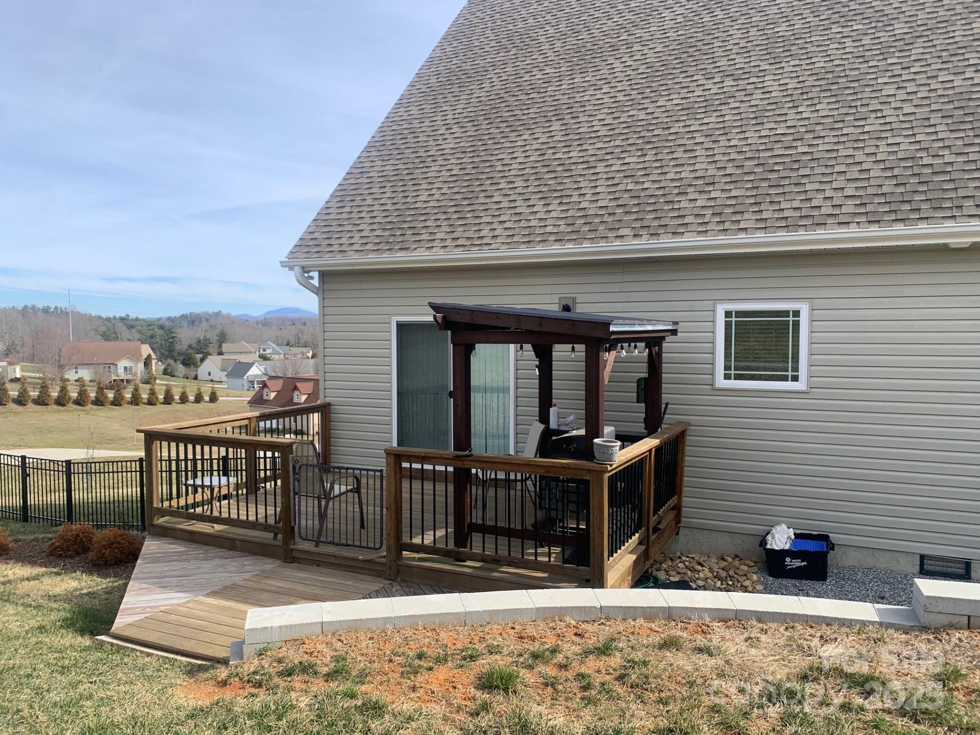 This beautifully landscaped home offers a beautiful mountain view from the extra large front porch. First level main bedroom with beautiful bathroom & large walk-in closet. Upstairs you'll find an office, full bathroom & two spacious bedrooms worth window seats & plenty of closet space. Enjoy the large fenced in back yard and deck. Take a peaceful, short walk to the neighborhood pond.