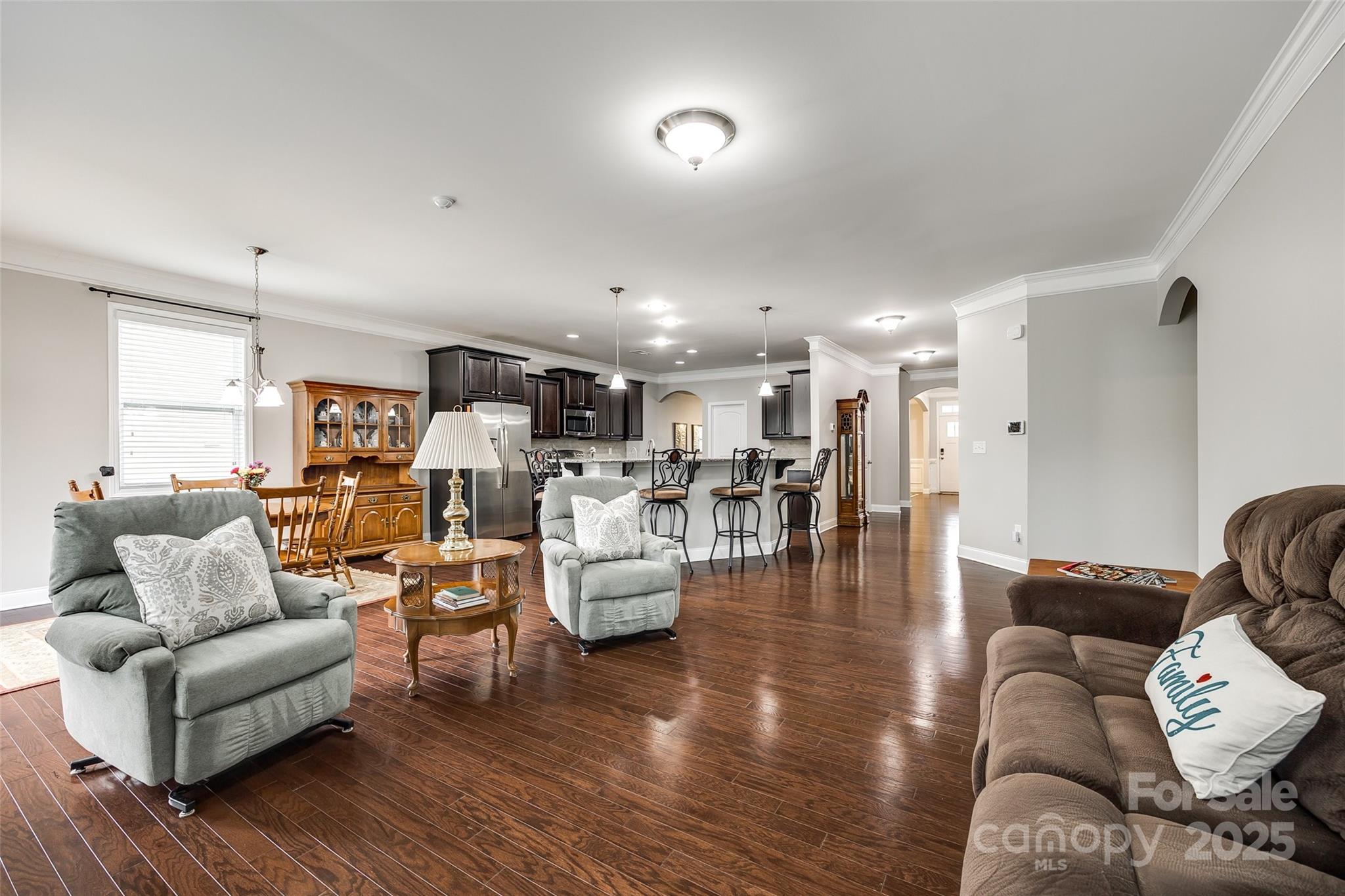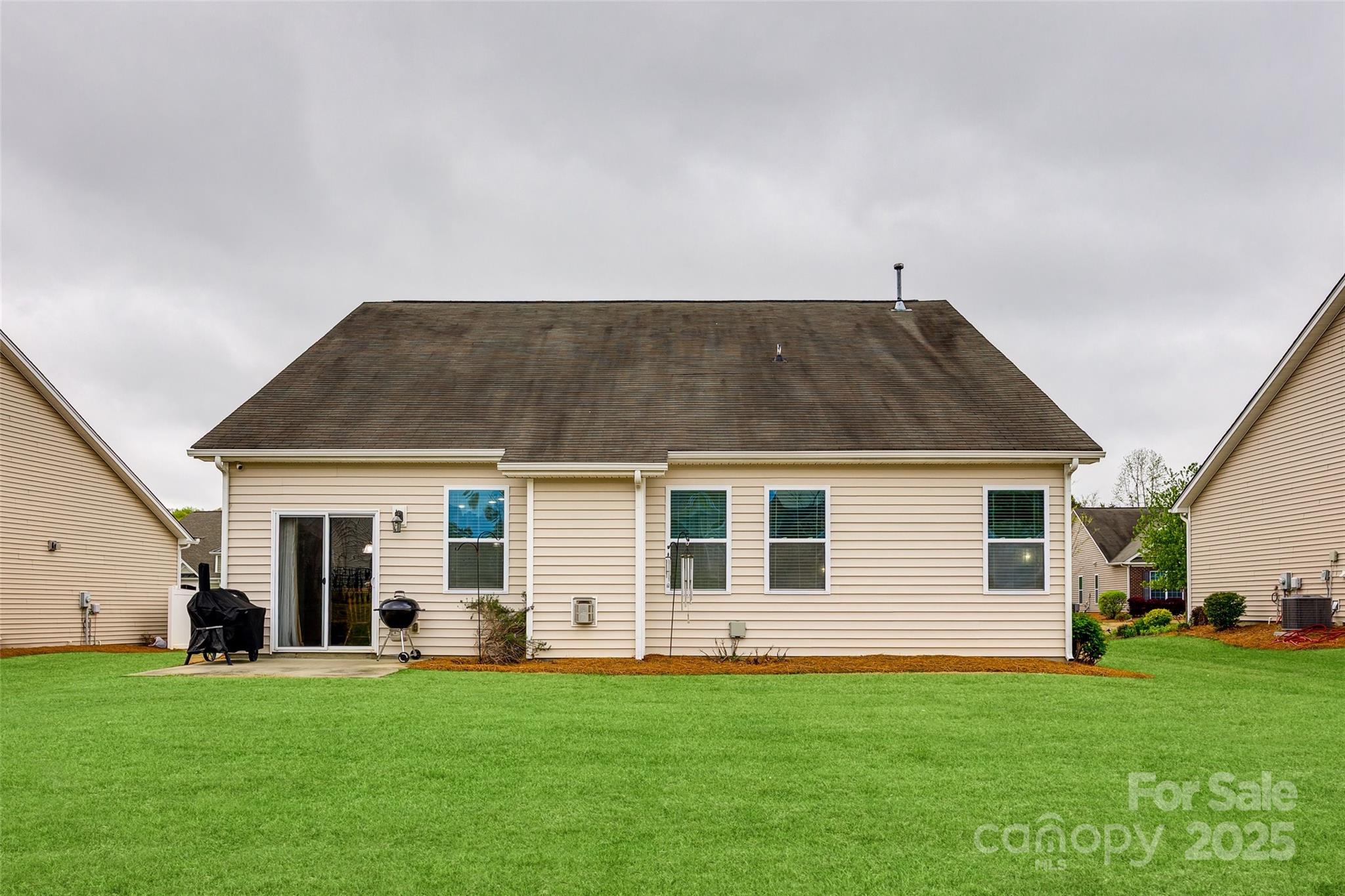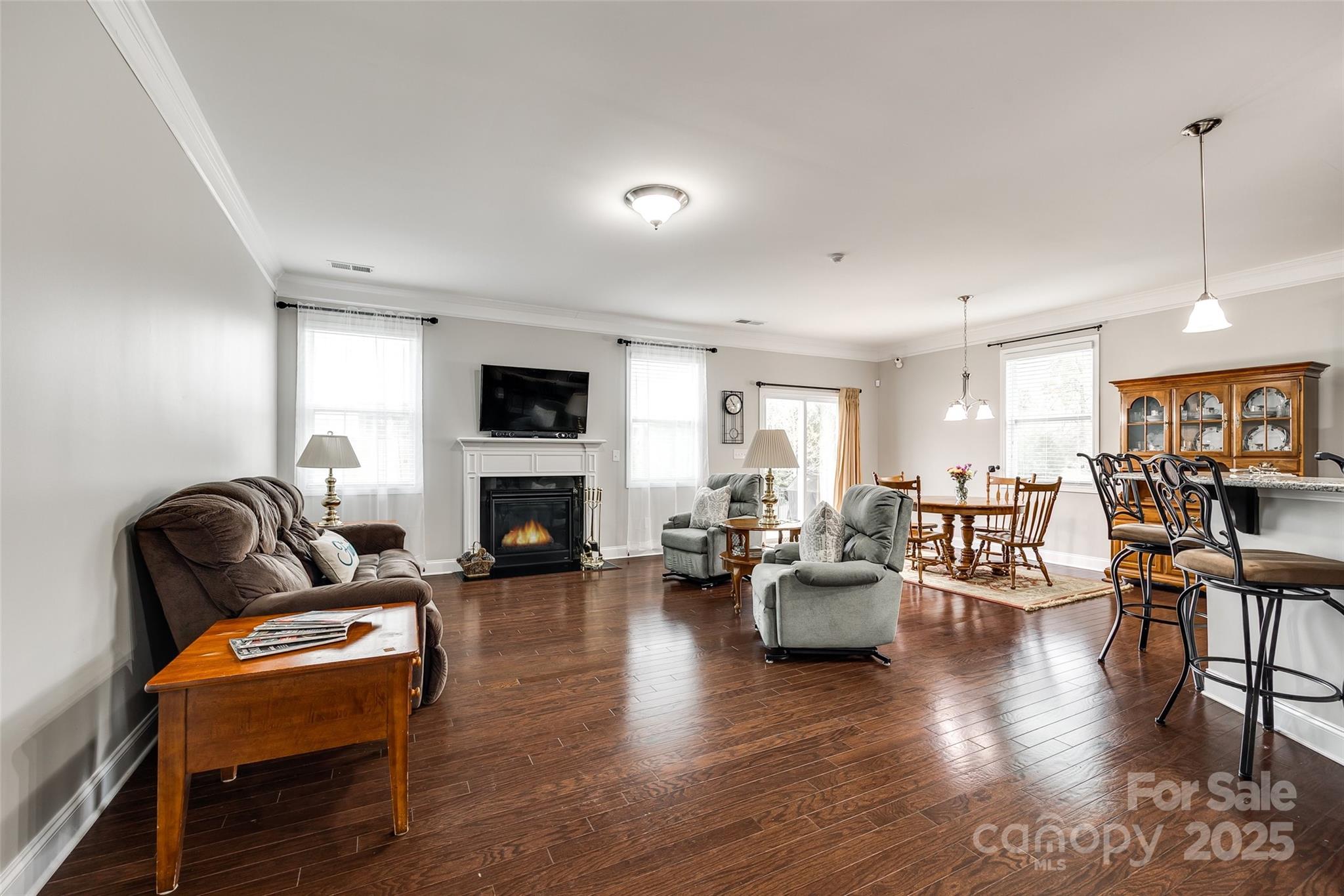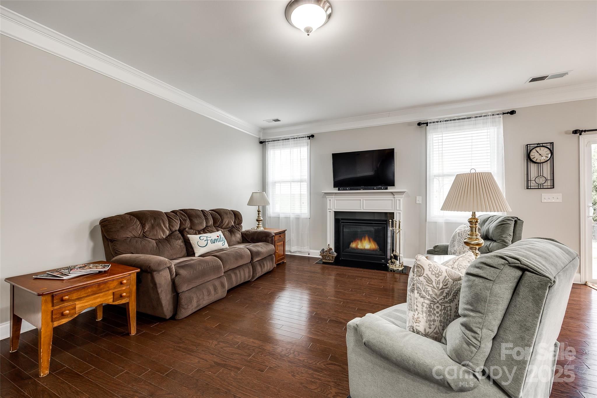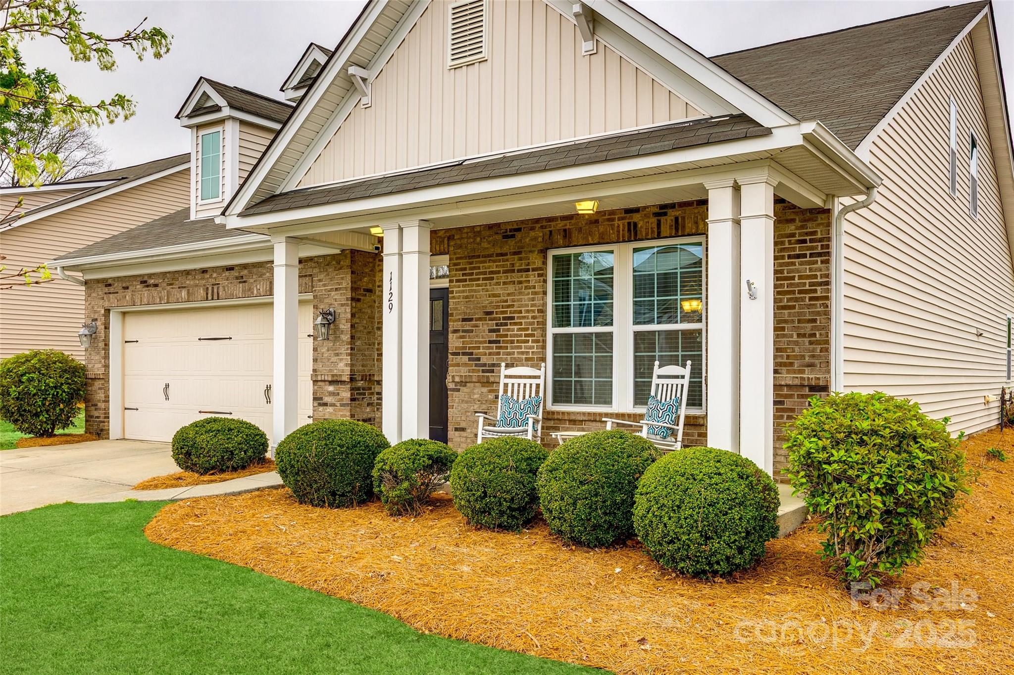 WELCOME HOME!!! Never mow your grass again... it's included in the HOA fee. You can sit on your rocking chair front porch sipping lemonade instead. Well-maintained home w/ wood floors & coffered ceiling in the dining rm. Down the foyer you are welcomed by the open floor plan which connects the kitchen, great room w/ gas fireplace & breakfast area. A half bath rounds out this area. Over-sized kitchen features granite countertops, island, breakfast bar & walk-in pantry. Glass sliders lead to level & spacious backyard. Home boasts 3 beds & 2.5 baths. Primary bedroom is on main level & features tray ceiling & huge walk-in closet. En-suite bath is highlighted w/ granite countertops, double sinks, deep garden tub and separate shower. Heading upstairs finds 2 more gigantic bedrooms w/ walk-in closets & a full bath w/ granite. The substantial backyard offers a patio, lots of green grass, level play space and privacy with the newly planted Leyland Cypresses. New HVAC in 2023. Sprinkler Sys. Water filtration system. Appliances convey. Furniture available for purchase or can be negotiated w/ offer.