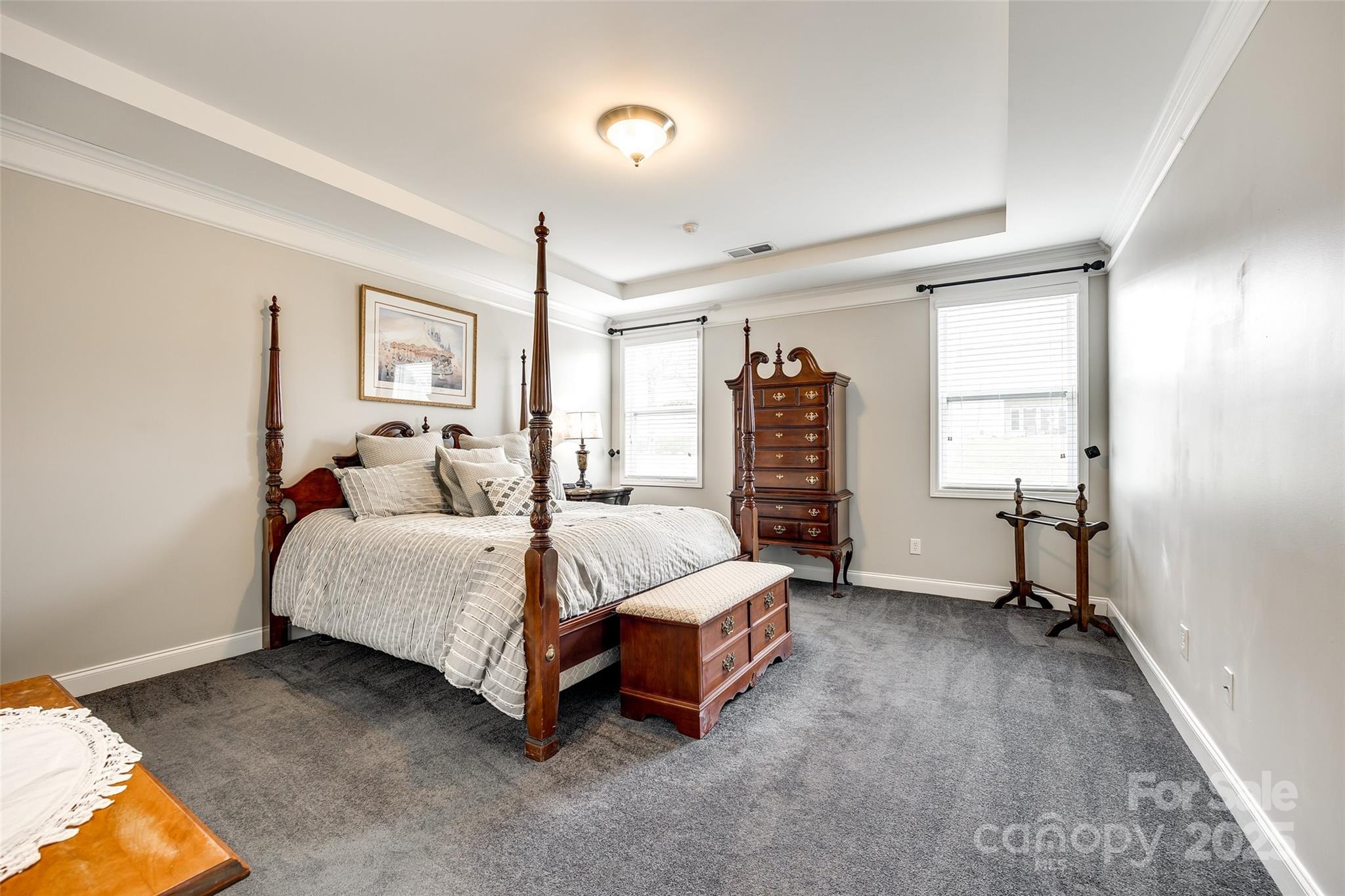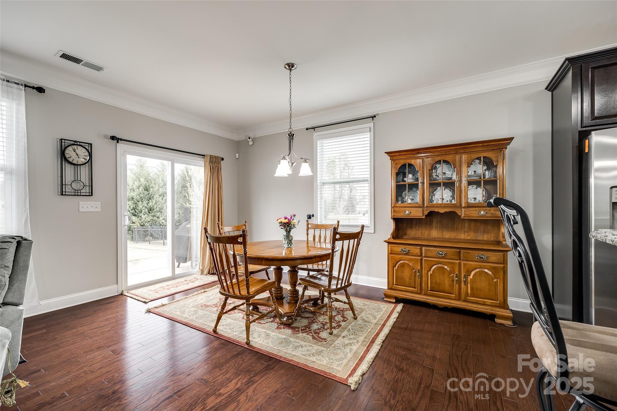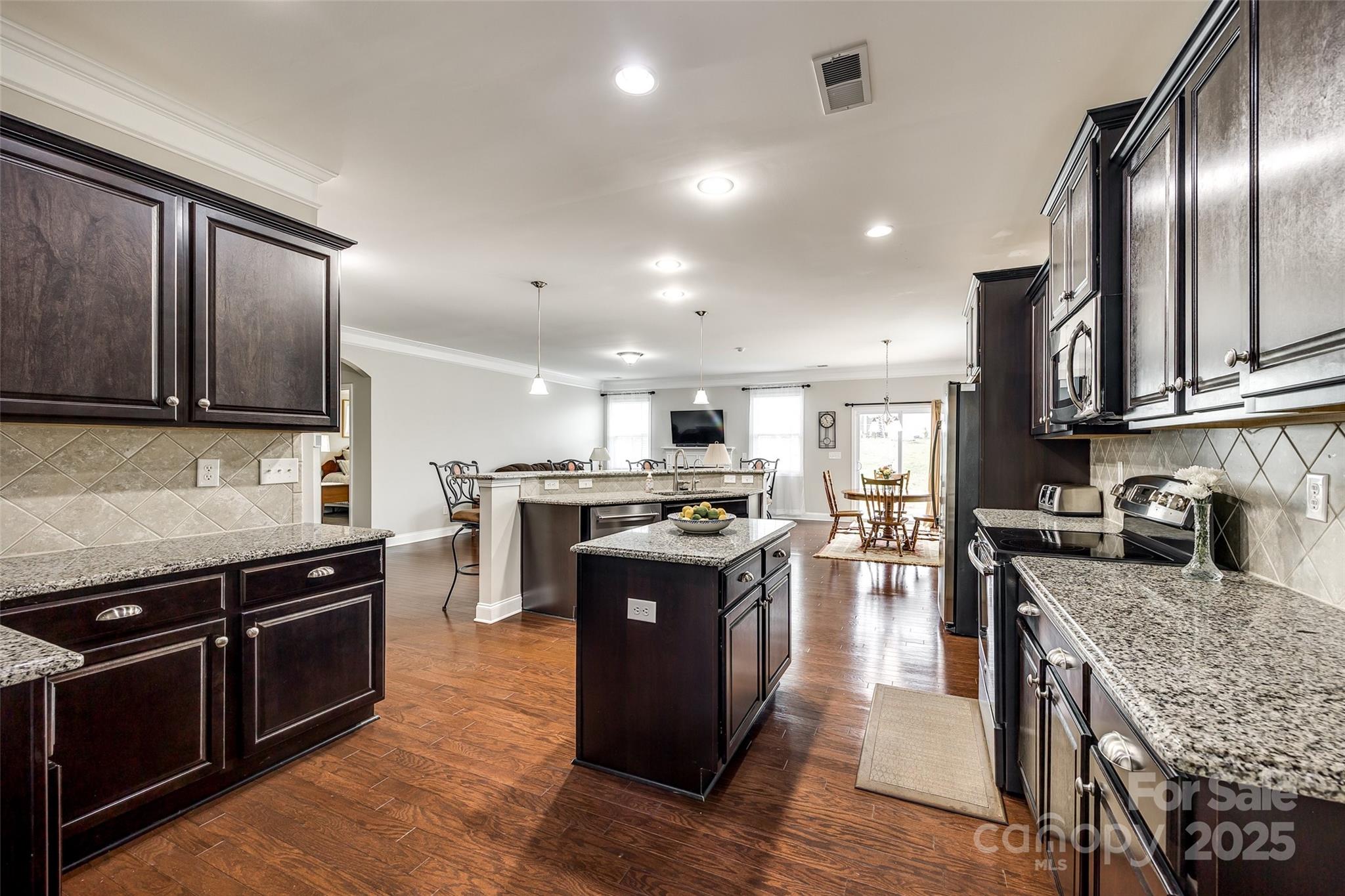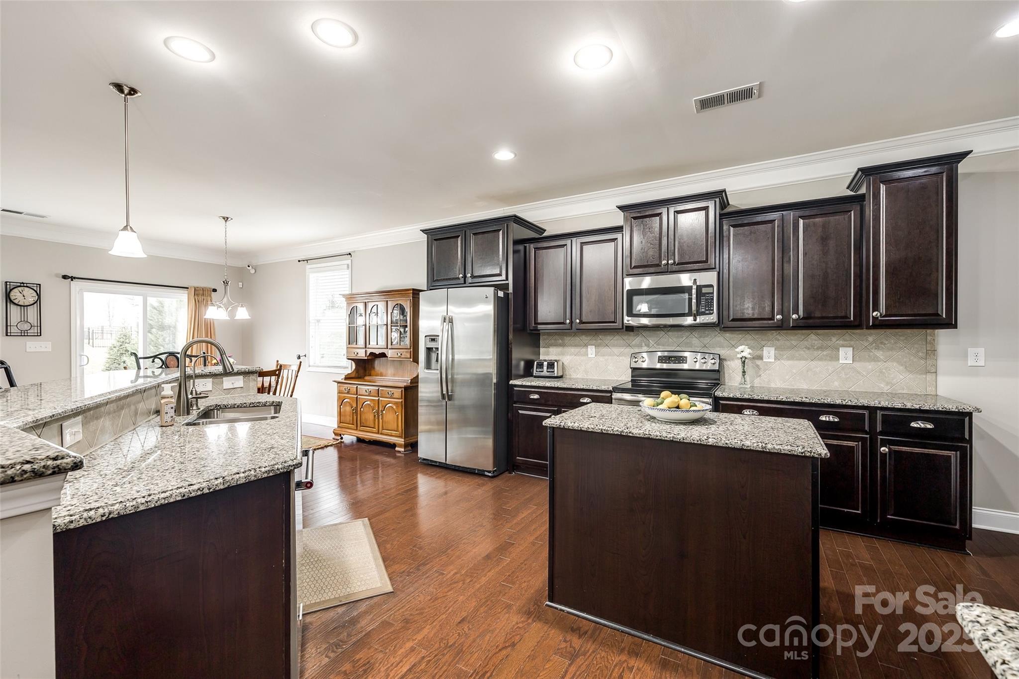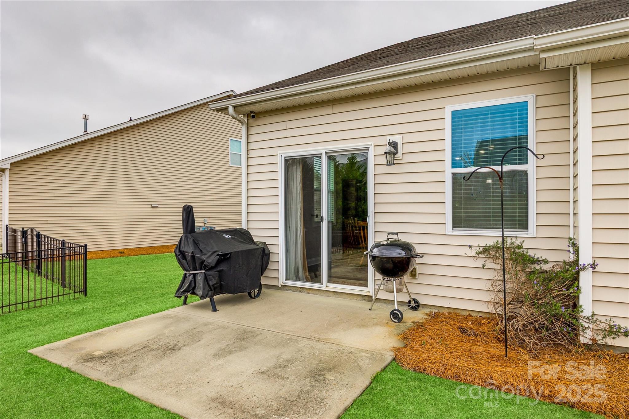 WELCOME HOME!!! Never mow your grass again... it's included in the HOA fee. You can sit on your rocking chair front porch sipping lemonade instead. Well-maintained home w/ wood floors & coffered ceiling in the dining rm. Down the foyer you are welcomed by the open floor plan which connects the kitchen, great room w/ gas fireplace & breakfast area. A half bath rounds out this area. Over-sized kitchen features granite countertops, island, breakfast bar & walk-in pantry. Glass sliders lead to level & spacious backyard. Home boasts 3 beds & 2.5 baths. Primary bedroom is on main level & features tray ceiling & huge walk-in closet. En-suite bath is highlighted w/ granite countertops, double sinks, deep garden tub and separate shower. Heading upstairs finds 2 more gigantic bedrooms w/ walk-in closets & a full bath w/ granite. The substantial backyard offers a patio, lots of green grass, level play space and privacy with the newly planted Leyland Cypresses. New HVAC in 2023. Sprinkler Sys. Water filtration system. Appliances convey. Furniture available for purchase or can be negotiated w/ offer.