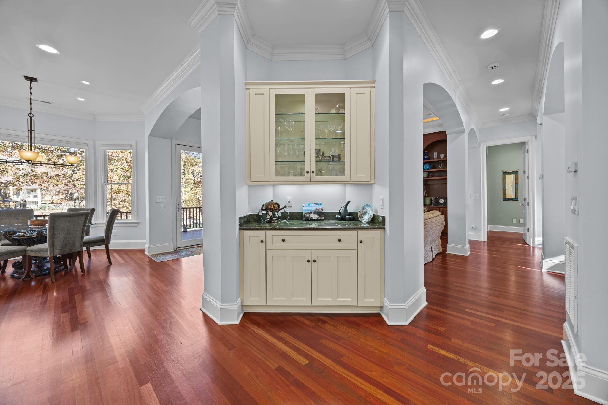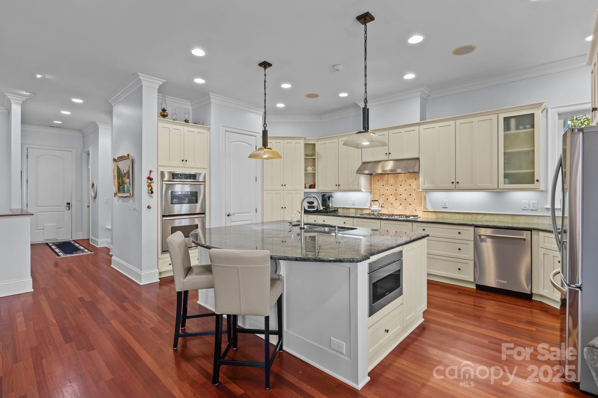 Rare find at The Point * Smaller Waterfront home on only 2 levels! * Open floor plan* 4 car oversized garage, one side heated & cooled w/workbench & built-ins* Private setting at end of cul de sac* Private Beach area & fire pit *Walk to your boat slip* Chef's & entertainer's dream kitchen w/professional grade appliances including 2 dishwashers & double wall ovens *So many Features, gleaming Brazilian Cherry Hardwood floors on main level, Heated floors in primary bathroom, conditioned wine cellar, water softener, reverse osmosis system for drinking water, central vac, 2 work spaces in office, so many built ins & so much storage* all 4 flat screen TVs convey, surround sound in Great room conveys * Spacious home yet cozy* Room to grow in unfinished area *Easy to get to nearby shopping*