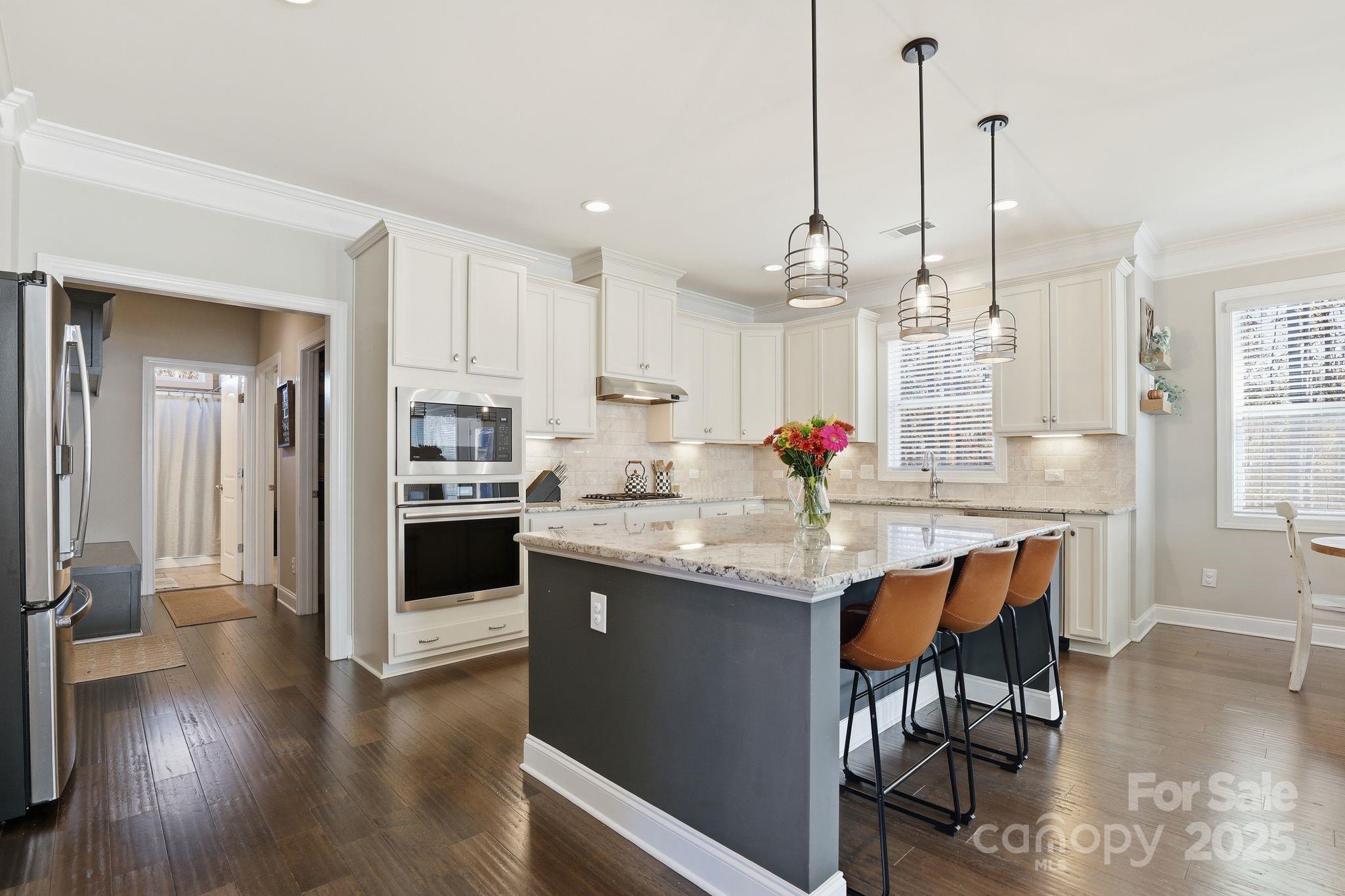 Stunning brick home in The Bluffs! Enjoy the private setting at the end of a cul-de-sac with a long driveway, manicured lawn, and level wooded lot. Relax on the inviting front porch with your morning coffee. Inside, the open floor plan features an office, dining room, great room, mudroom, full guest suite, and a chef’s kitchen with tall cabinets, granite counters, stainless steel appliances, and a large island. Gorgeous wood floors, custom trim, and upgraded lighting add warmth and style throughout the main level. Upstairs offers three spacious bedrooms, a bonus room, two full bathrooms, luxurious primary suite with two walk in closets, a beautifully appointed bath and walk in closets for all the bedrooms. The private backyard is perfect for entertaining with a large deck and lower patio. All located within award-winning schools! Schedule your showings today!