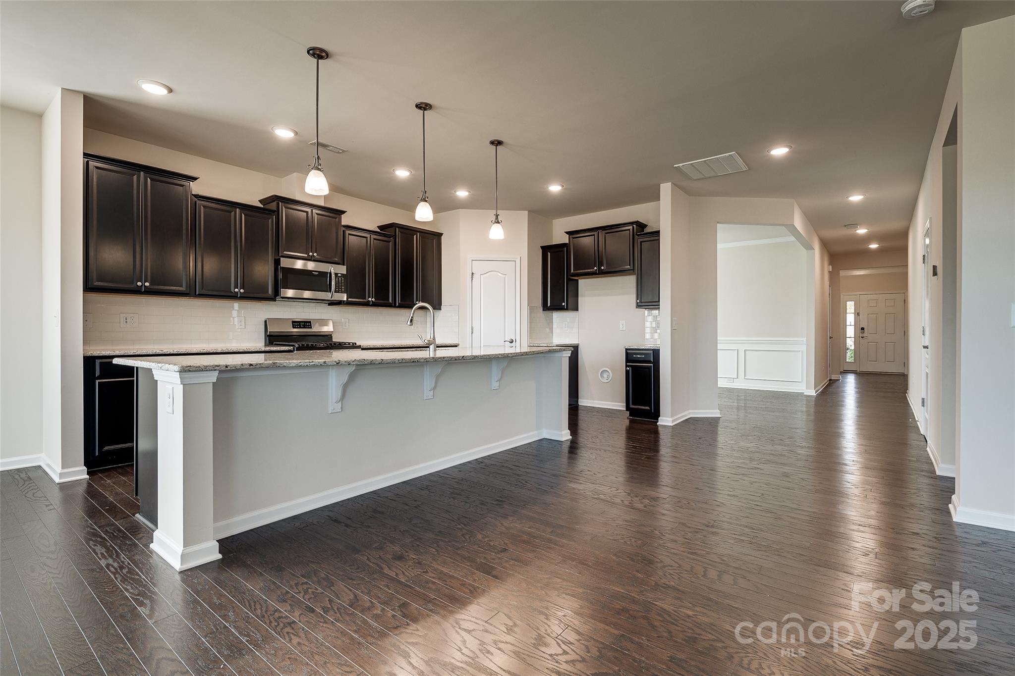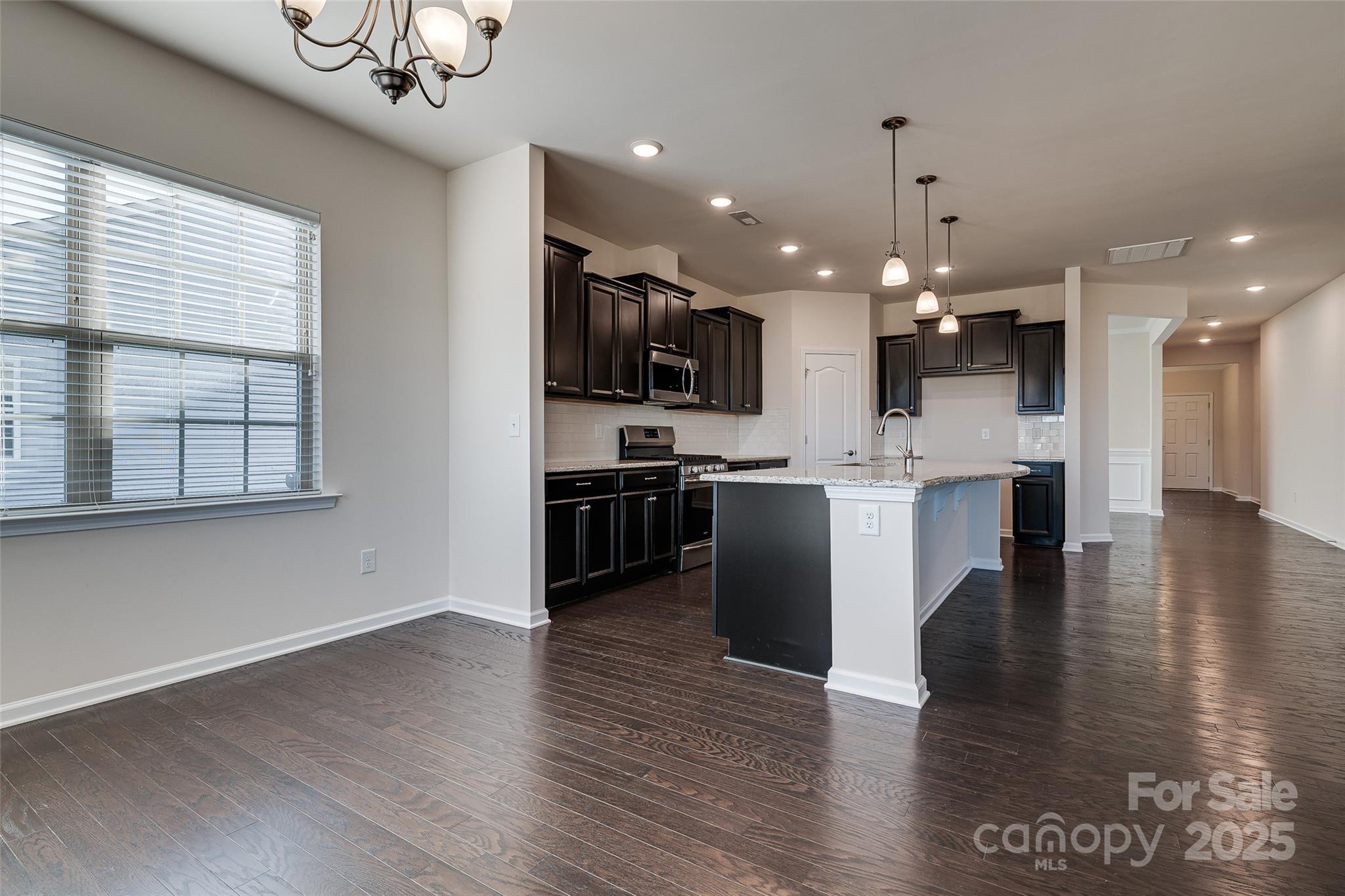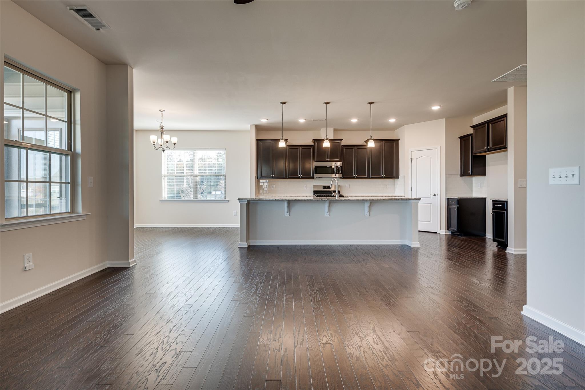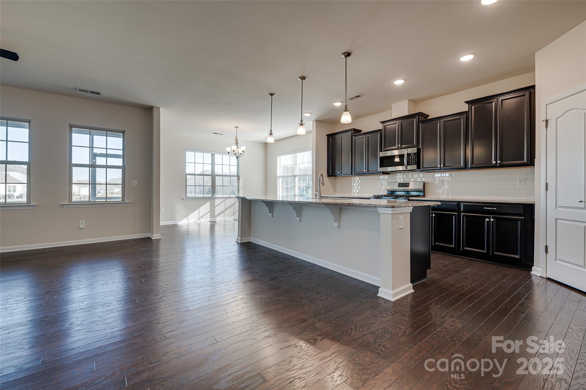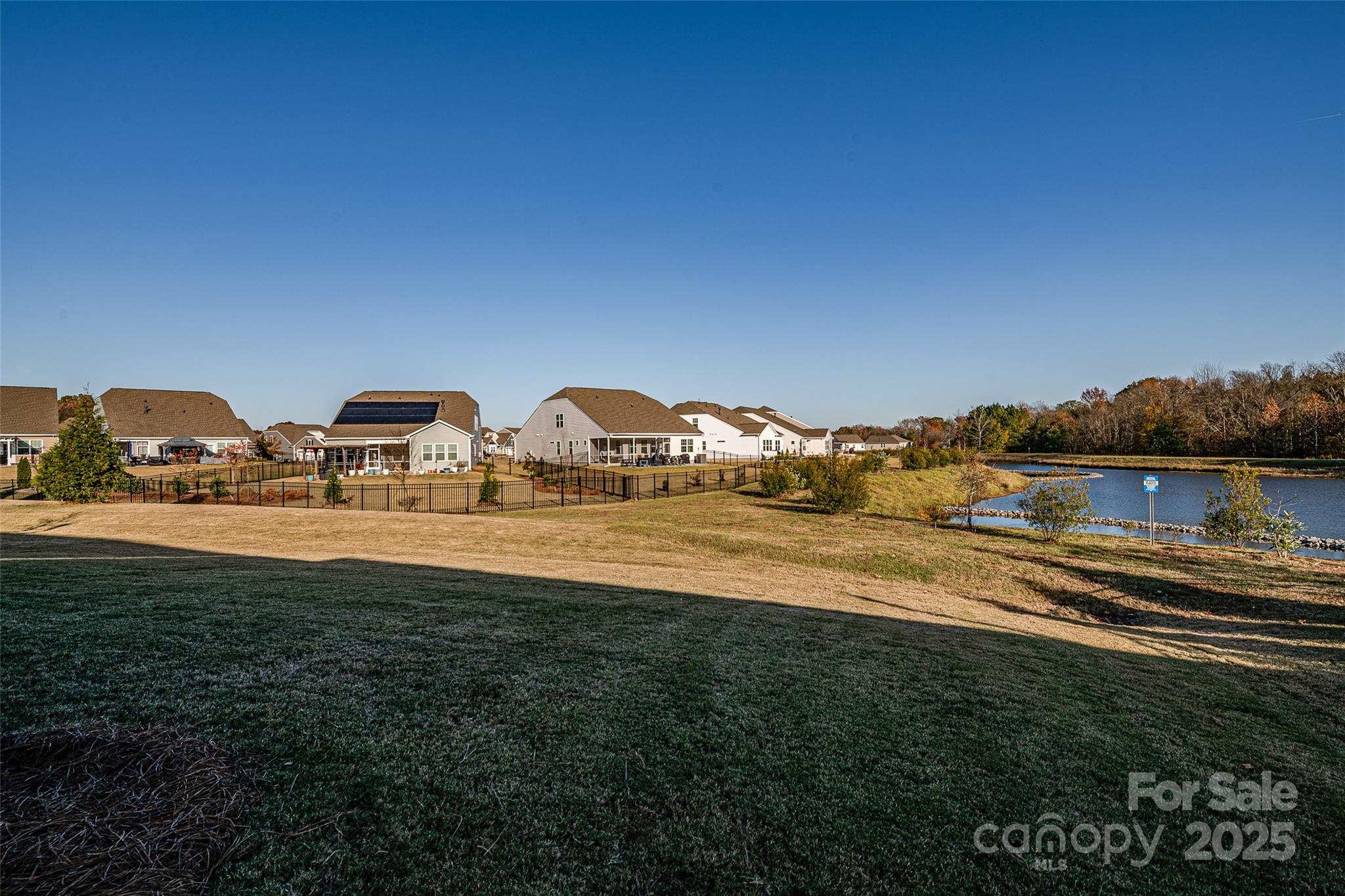 Wow! Come enjoy nature right from your screened-in porch. This home offers peaceful views of a beautifully maintained water-retention pond that backs to HOA-owned wooded area—regular visitors include deer, ducks, geese, and even a crane! This premium lot truly does not disappoint. Inside, you’ll find a bright and open 3-bed, 2.5-bath floorplan with LVP flooring throughout all main living areas and a cozy gas-log fireplace in the living room. The open-concept layout seamlessly connects the living, dining, and kitchen spaces—perfect for everyday living and entertaining. The kitchen features an impressive 11-foot island with ample seating, generous workspace, and great flow. A breakfast area overlooks the peaceful backyard, and the spacious formal dining room can easily flex into an office, playroom, or sitting room. The home includes two secondary bedrooms that share a full bath, plus a large two-car garage. Located in a beautiful community where the HOA handles all lawn care—including mowing, pine straw, and seasonal treatments—you’ll enjoy low-maintenance living at its best. Neighborhood amenities include a gorgeous clubhouse (the original farmhouse on the land), pickleball court, outdoor pool, and fitness center. All of this just minutes from schools, shopping, Carowinds, and a quick hop onto I-77. This is a special home—don’t miss it!
