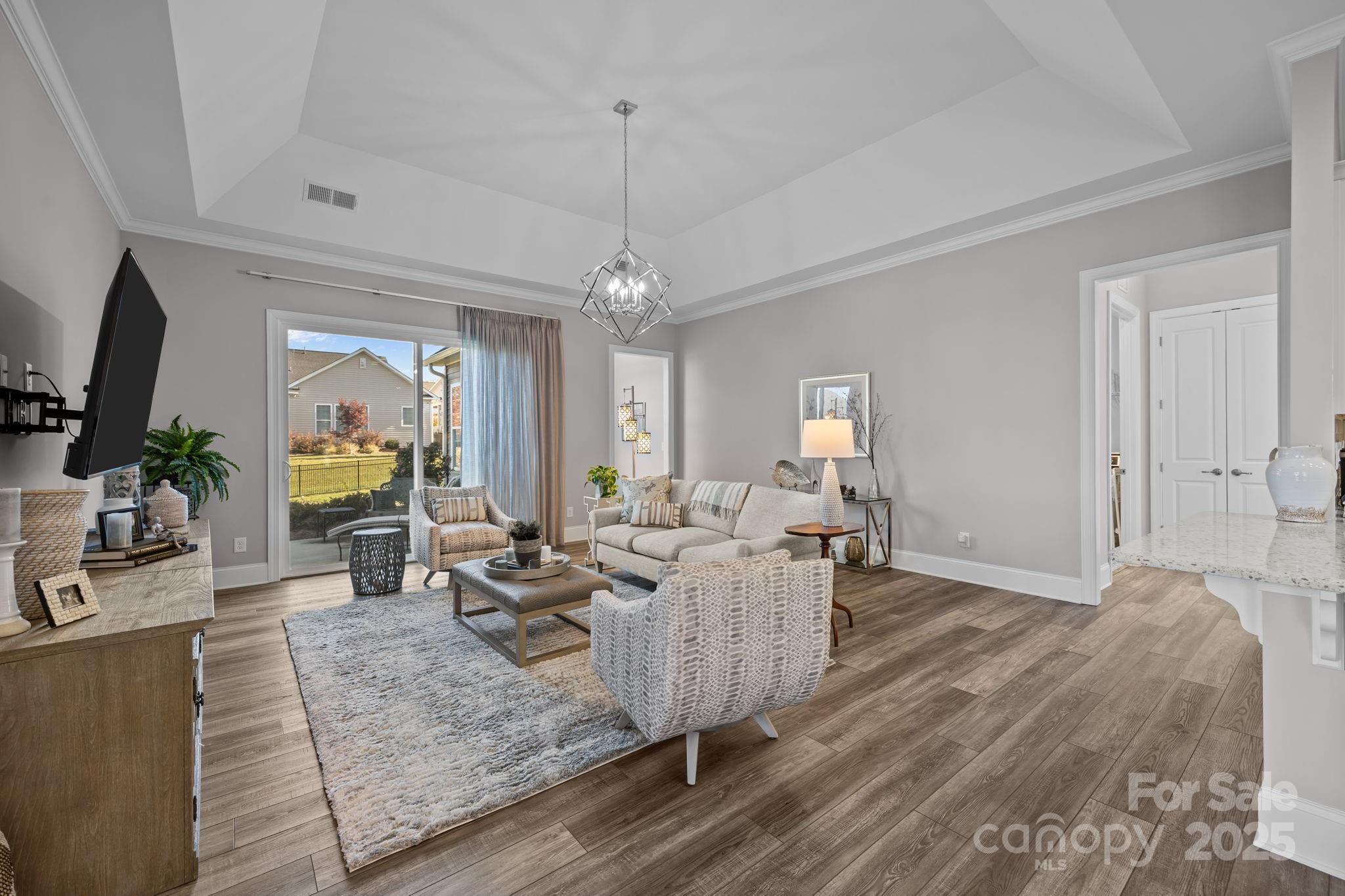 Welcome to The Forest at Bailey’s Glen, one of the area’s most desirable 55+ active adult communities, where refined living meets resort-style comfort. This beautifully designed 2,235 sq ft home offers an open and thoughtful floor plan that’s perfect for entertaining or simply enjoying everyday life. Step inside and you’ll immediately notice the abundance of natural light streaming throughout the home, creating a warm and inviting atmosphere in every room. The gourmet kitchen features a large peninsula and flows seamlessly into the spacious living and dining areas — ideal for hosting family and friends. The home includes three spacious bedrooms and three full baths, each designed with comfort and style in mind. The primary suite is a peaceful retreat featuring a spa-inspired bathroom with an easy-access, beautifully tiled walk-in shower and a generous closet for plenty of storage. Enjoy quiet mornings or relaxing afternoons in your private screened porch overlooking a low-maintenance backyard, the perfect spot to unwind or entertain. With the community green space and dog park as your neighbor, this lot offers an exceptional sense of privacy and connection to nature. Living in The Forest at Bailey’s Glen means more than just a beautiful home — it’s an active and welcoming lifestyle. The community offers an incredible array of resort-style amenities, including a stunning clubhouse, swimming pool, pickleball and tennis courts, putting green, fitness programs, woodworking, gardening, social events, and so much more. Whether you’re looking to downsize, simplify, or just enjoy every day to the fullest, this home and community deliver the perfect balance of elegance, comfort, and connection.