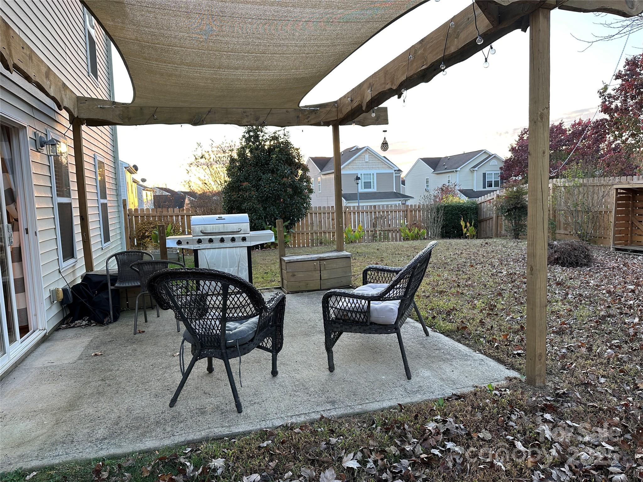 This beautifully maintained home blends modern updates with comfortable outdoor living. Recent upgrades include a new Roof in 2022, new 2 zone HVAC system 2023, new privacy Fence 2024, new fully Insulated Garage door with opener 2025. The kitchen boasts newer stainless steel appliances and granite counter tops. Open floor plan features a generous space for dining opening up to the large family room and kitchen. The garage features built in storage shelving for organizational and efficient use of space. Right outside the dining area enjoy the custom live-edge pine pergola with awning, inground fire pit, landscaping and flat patio for grilling. Lots of natural light. Conveniently close to the neighborhood amenities, Renaissance Park, Charlotte Outlet Mall and minutes from the airport and major highways. WELCOME HOME!