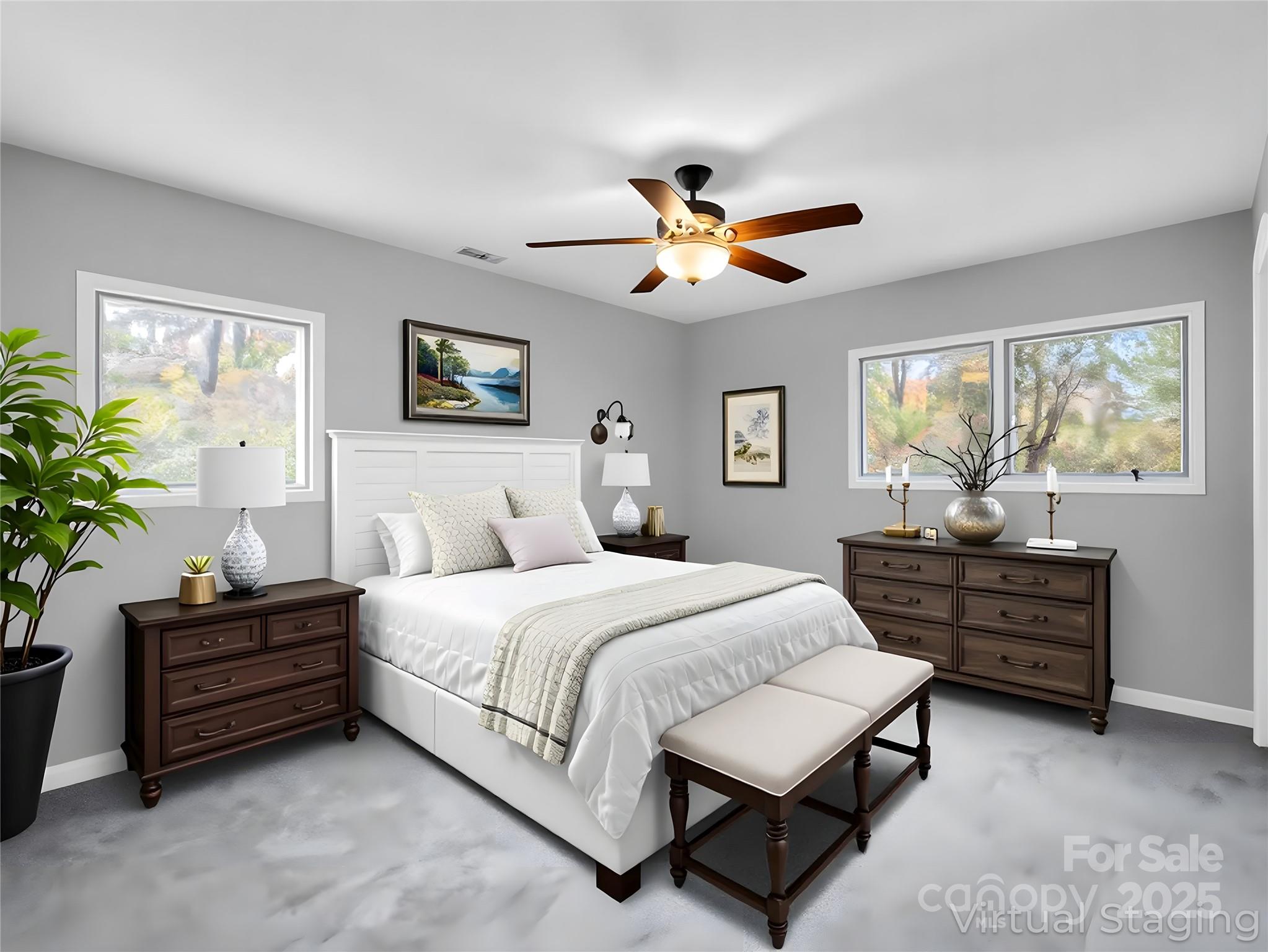 Escape to the tranquility of country living without sacrificing convenience. This refreshed split-level home, nestled in the Tiny Farms neighborhood, offers a perfect blend of peaceful seclusion and easy access to city amenities. Enjoy a mere 15-minute drive to Haywood Rd and just 20 minutes to downtown. Surrounded by a canopy of trees and lush, mature landscaping, the property provides a wonderfully private setting. Inside, the classic bi-level floor plan feels open and bright, recently updated with fresh paint, new carpet, and updated trim. The main upper floor is bathed in natural light from large windows, creating an inviting, open-concept living space. This level features a primary bedroom with an en-suite bathroom, a guest bedroom, and a versatile bonus room. From the dining area, step outside to discover a spacious back patio, ideal for outdoor entertaining. Downstairs, discover a cozy den complete with a gas log fireplace, 3rd bedroom, a laundry room, and convenient under-stair storage. Outside, the property boasts a two-level front yard and a sprawling, hilly backyard. An attached two-car garage in the basement offers ample space for parking, a workshop, and additional storage. Appointments available starting 11/14/2025 Contact today for a private showing.