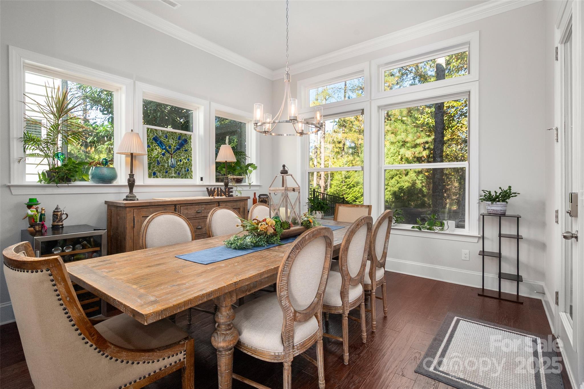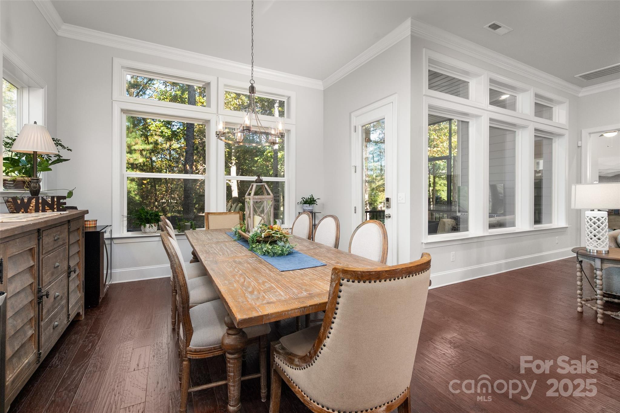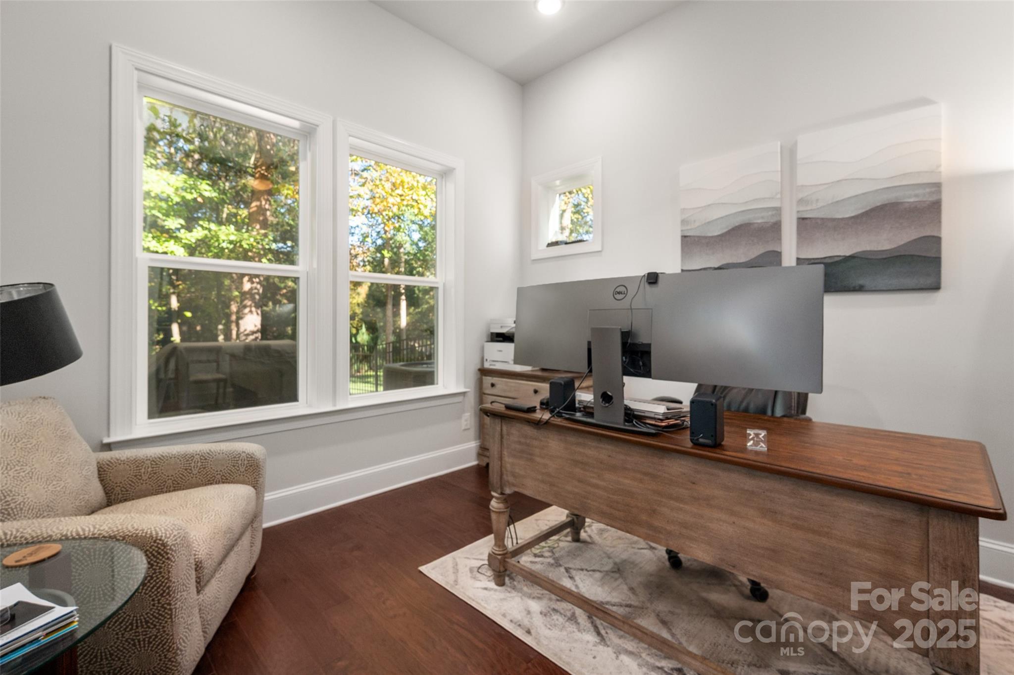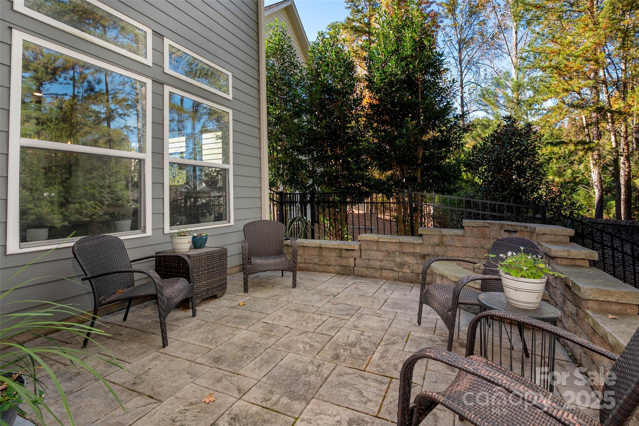 Beautifully appointed home in the highly sought-after Ballantyne area! This home features 11-foot ceilings and a stunning kitchen with leathered granite perimeter countertops, a large island ideal for entertaining, upgraded pull-out drawers, and crisp white cabinetry. The open floor plan is filled with natural light and includes surround sound wiring with speakers downstairs—perfect for gatherings. Enjoy outdoor living on the lighted paver patio with a built-in firepit, the screened porch, or the covered upstairs terrace accessible from the primary suite, bonus room, and secondary bedroom. The spacious primary suite offers a vaulted sitting area, a custom-built closet system with an upgraded fandelier, and a luxurious feel throughout. Additional highlights include a main-floor guest bedroom and designated office, hardwood floors throughout (except upstairs secondary bedrooms), a 3-car garage with secured storage and elevated shelving for extra storage, and a fenced yard. LAWN MAINTENANCE IS INCLUDED in the HOA, giving you more time to enjoy dining, shopping, and concerts in the nearby Ballantyne Bowl, plus easy access to 485 and other major conveniences. Zoned for top rated schools!