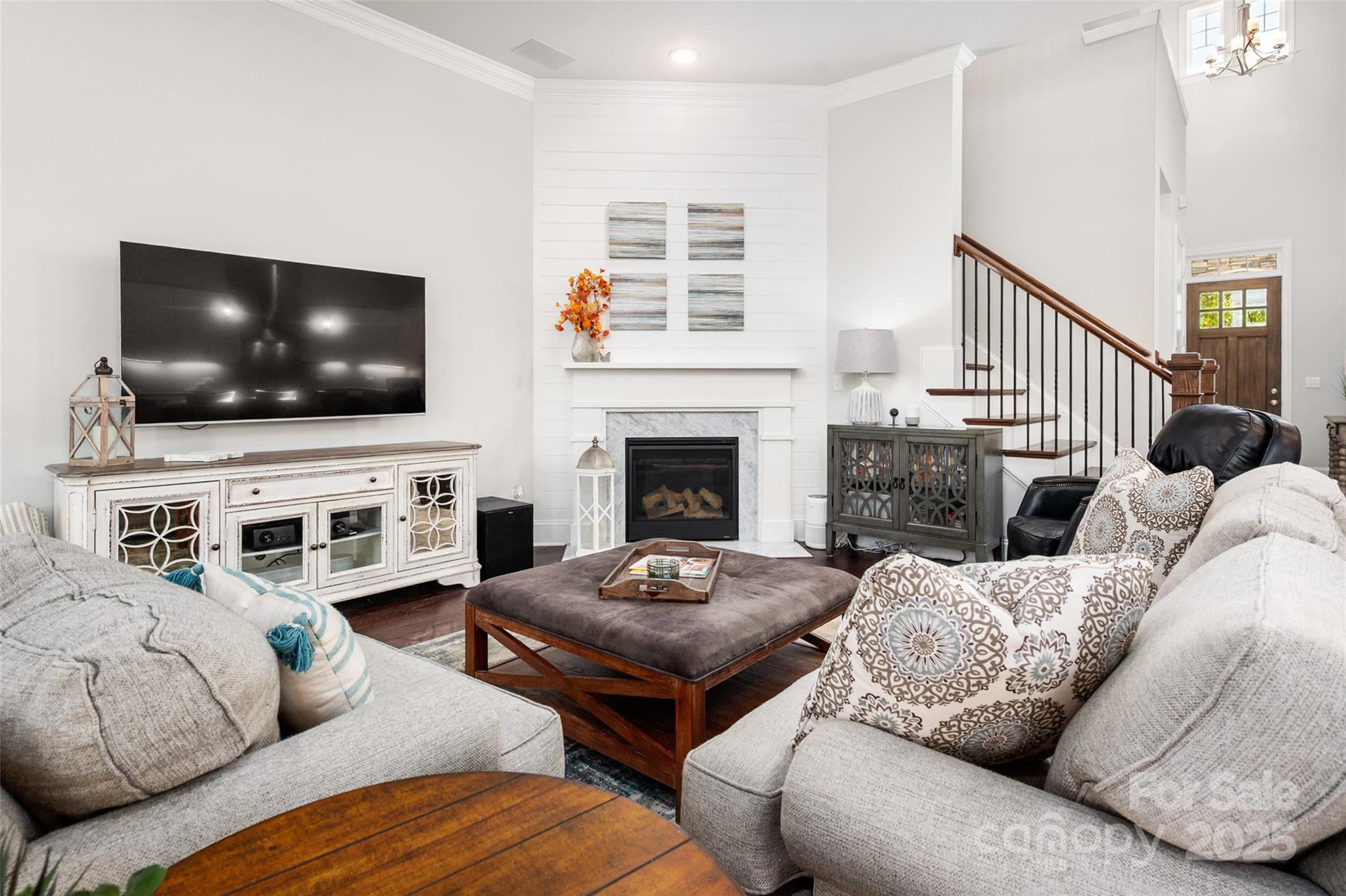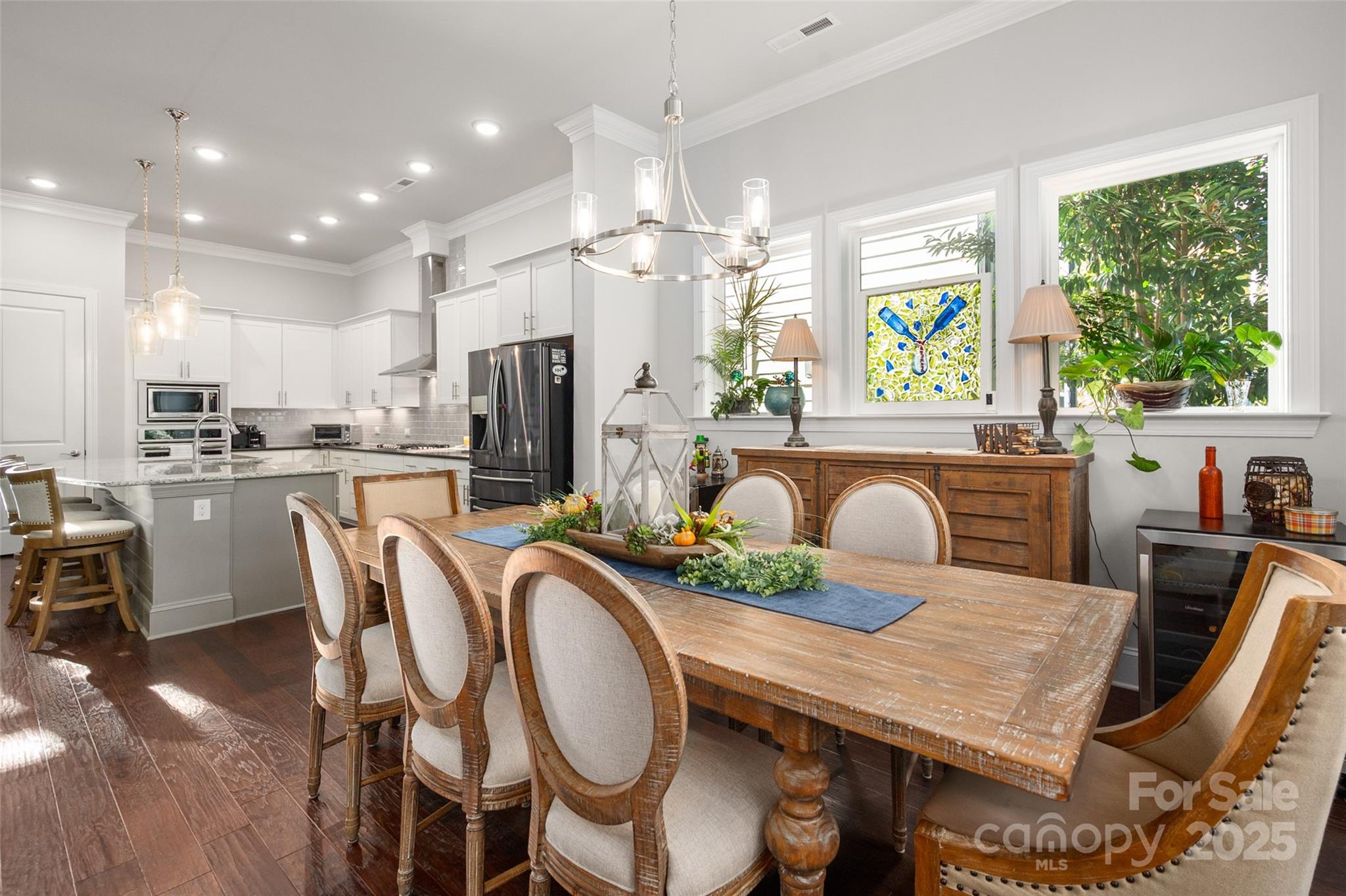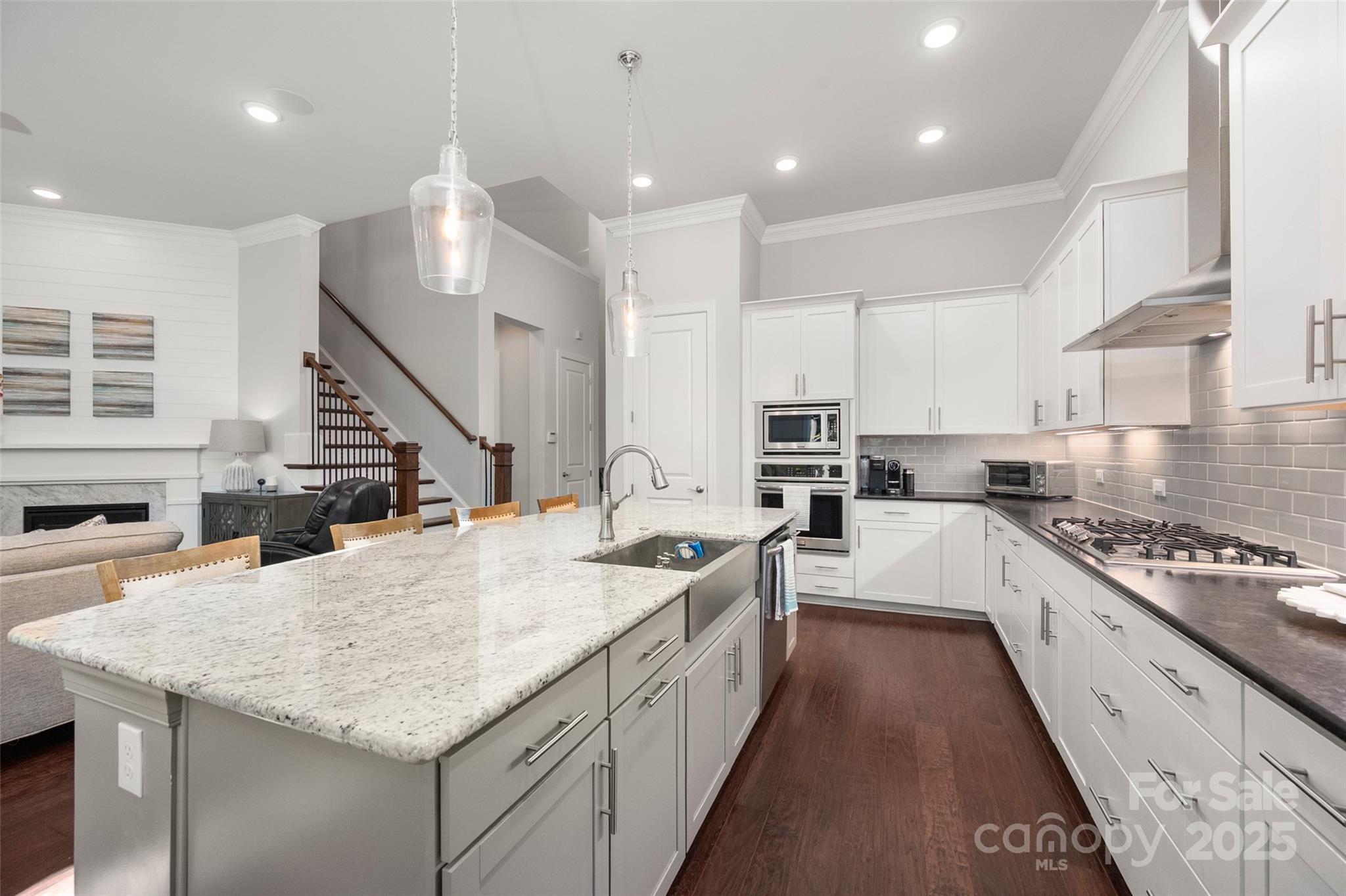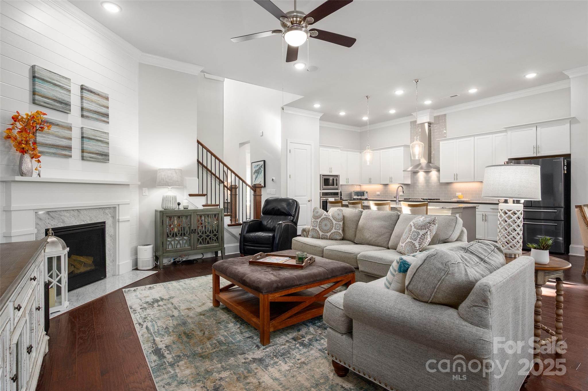 Beautifully appointed home in the highly sought-after Ballantyne area! This home features 11-foot ceilings and a stunning kitchen with leathered granite perimeter countertops, a large island ideal for entertaining, upgraded pull-out drawers, and crisp white cabinetry. The open floor plan is filled with natural light and includes surround sound wiring with speakers downstairs—perfect for gatherings. Enjoy outdoor living on the lighted paver patio with a built-in firepit, the screened porch, or the covered upstairs terrace accessible from the primary suite, bonus room, and secondary bedroom. The spacious primary suite offers a vaulted sitting area, a custom-built closet system with an upgraded fandelier, and a luxurious feel throughout. Additional highlights include a main-floor guest bedroom and designated office, hardwood floors throughout (except upstairs secondary bedrooms), a 3-car garage with secured storage and elevated shelving for extra storage, and a fenced yard. LAWN MAINTENANCE IS INCLUDED in the HOA, giving you more time to enjoy dining, shopping, and concerts in the nearby Ballantyne Bowl, plus easy access to 485 and other major conveniences. Zoned for top rated schools!