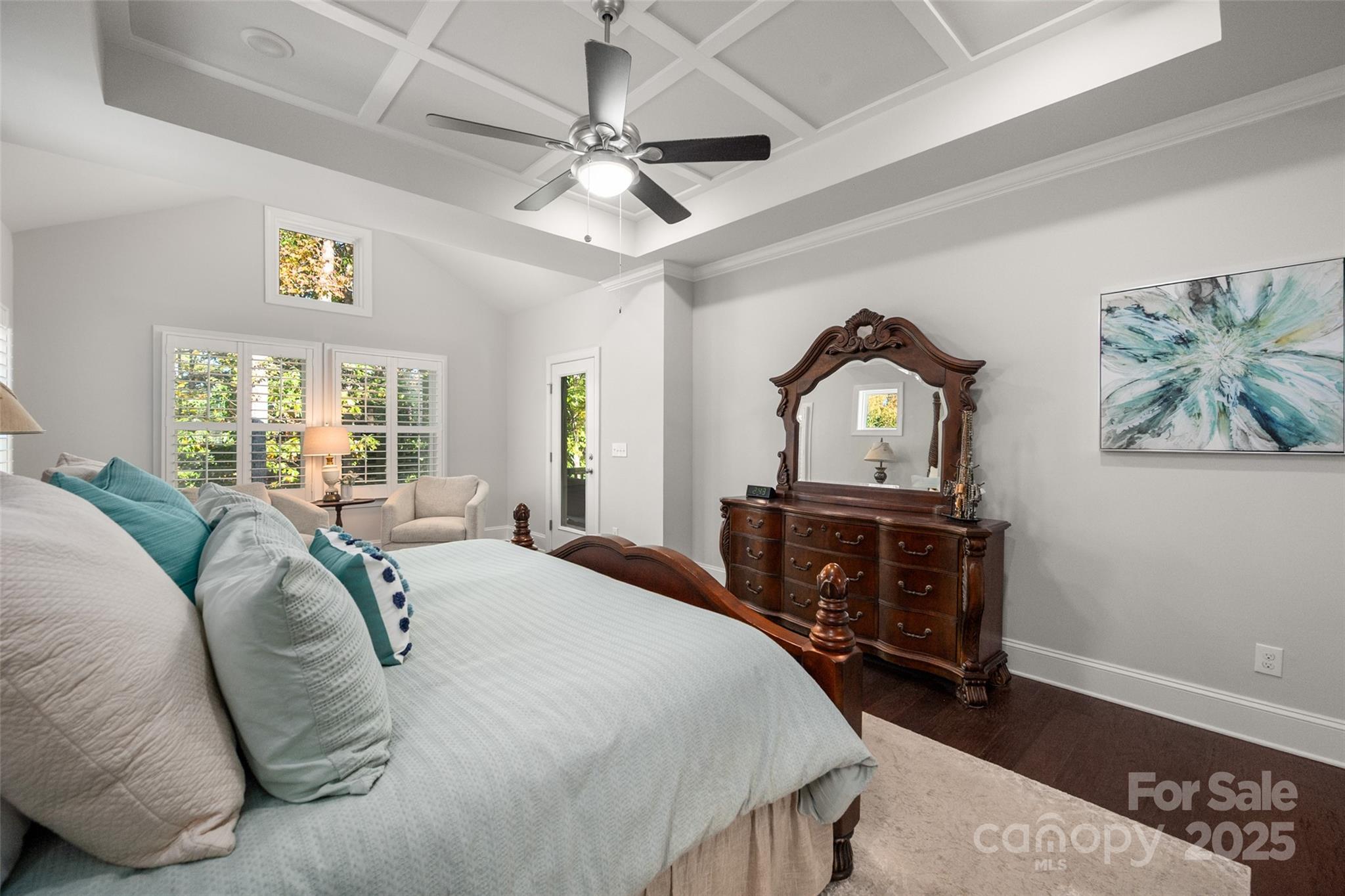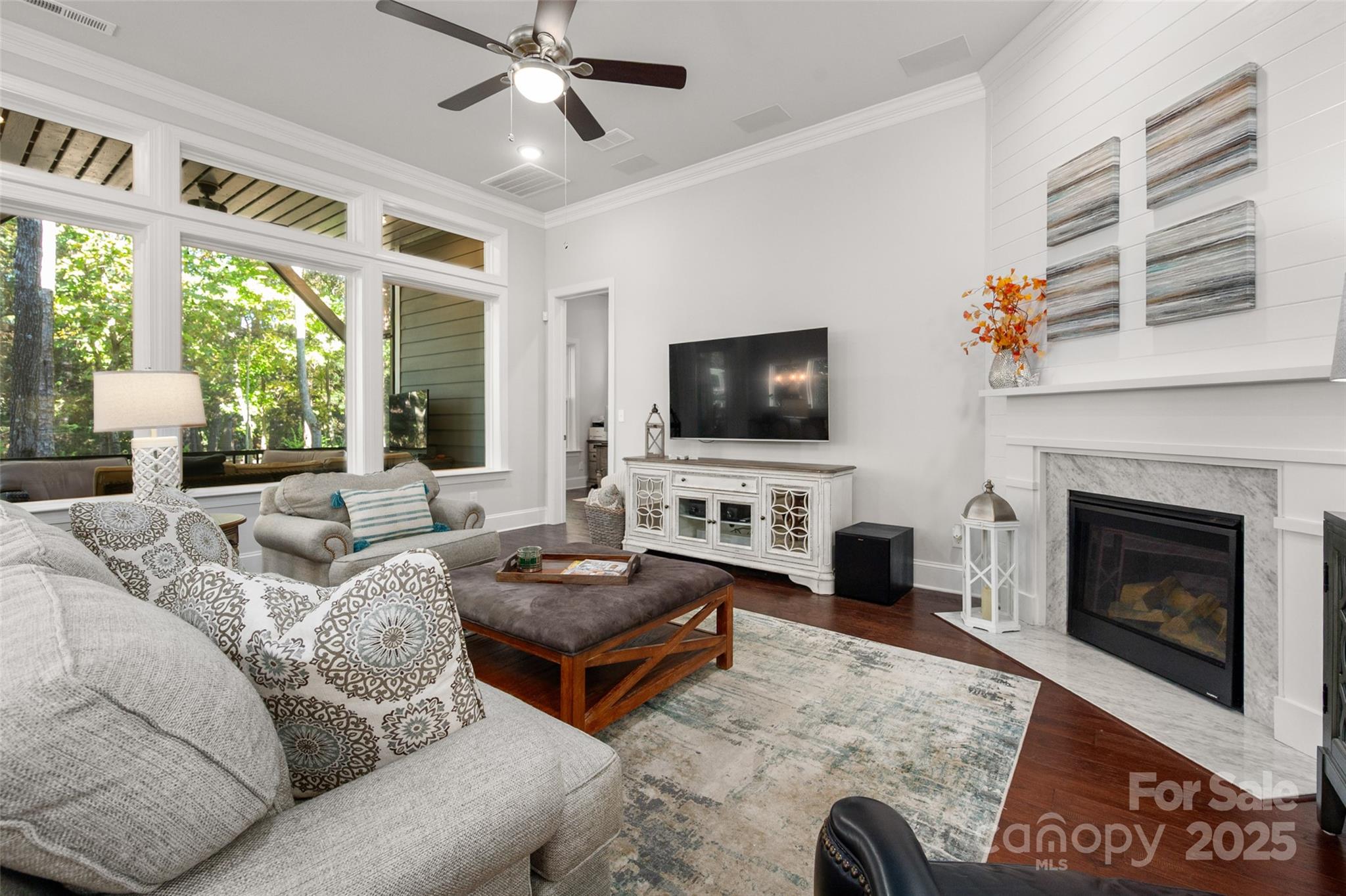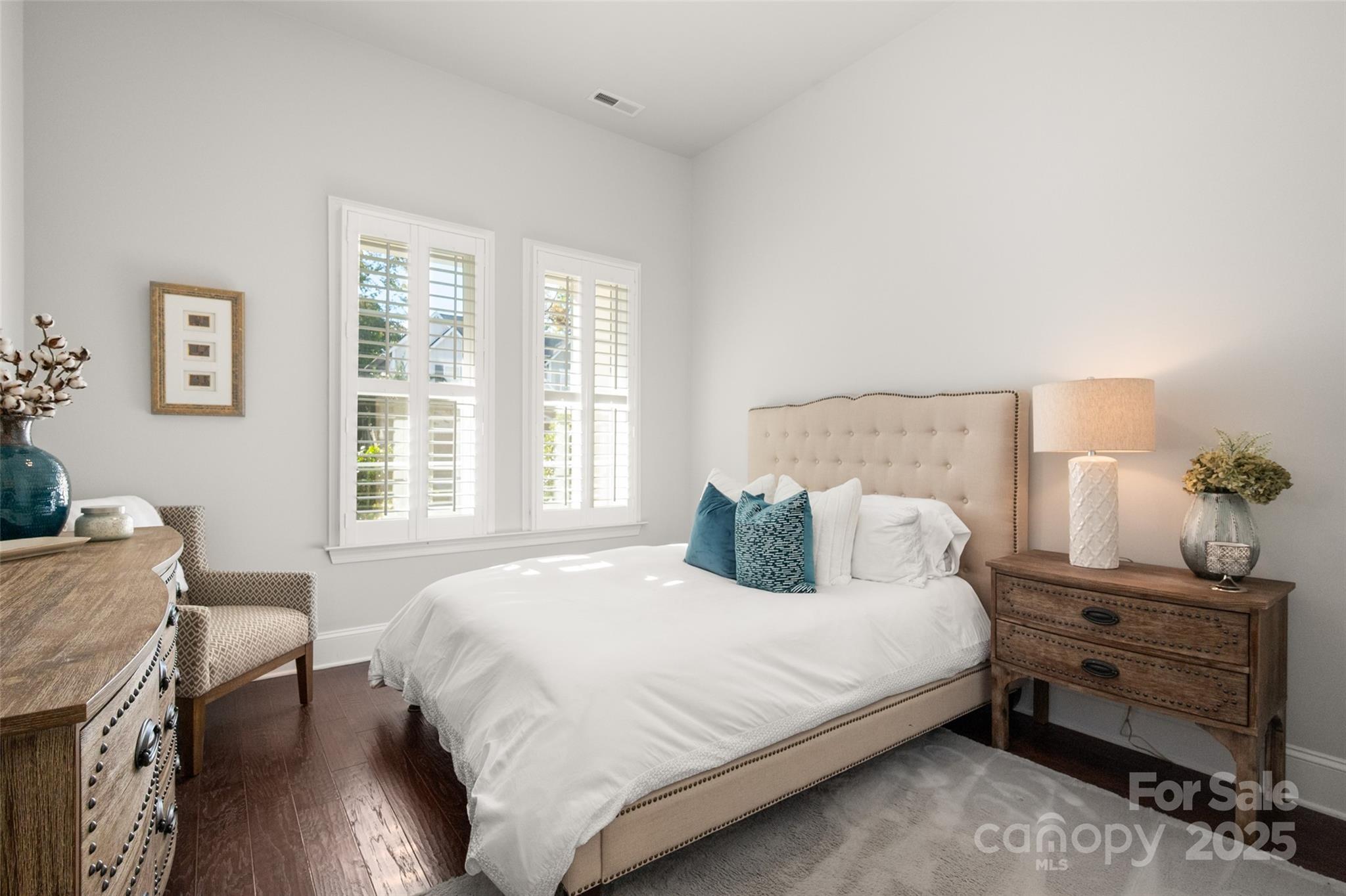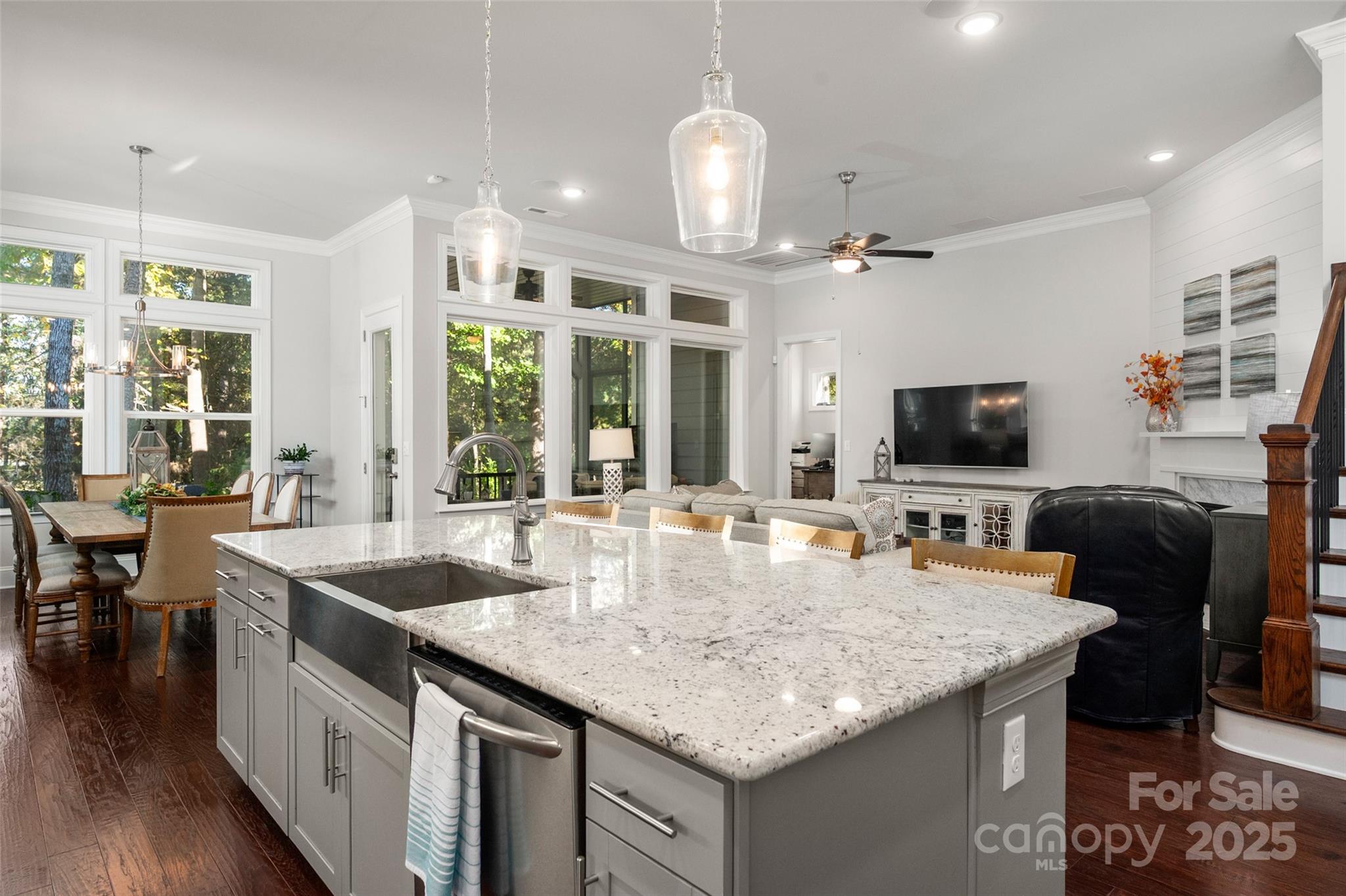 Beautifully appointed home in the highly sought-after Ballantyne area! This home features 11-foot ceilings and a stunning kitchen with leathered granite perimeter countertops, a large island ideal for entertaining, upgraded pull-out drawers, and crisp white cabinetry. The open floor plan is filled with natural light and includes surround sound wiring with speakers downstairs—perfect for gatherings. Enjoy outdoor living on the lighted paver patio with a built-in firepit, the screened porch, or the covered upstairs terrace accessible from the primary suite, bonus room, and secondary bedroom. The spacious primary suite offers a vaulted sitting area, a custom-built closet system with an upgraded fandelier, and a luxurious feel throughout. Additional highlights include a main-floor guest bedroom and designated office, hardwood floors throughout (except upstairs secondary bedrooms), a 3-car garage with secured storage and elevated shelving for extra storage, and a fenced yard. LAWN MAINTENANCE IS INCLUDED in the HOA, giving you more time to enjoy dining, shopping, and concerts in the nearby Ballantyne Bowl, plus easy access to 485 and other major conveniences. Zoned for top rated schools!