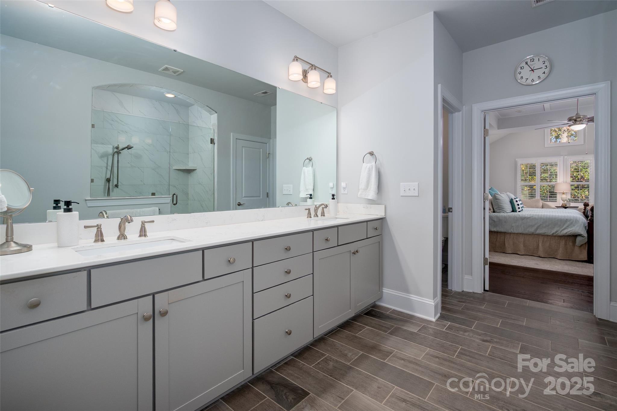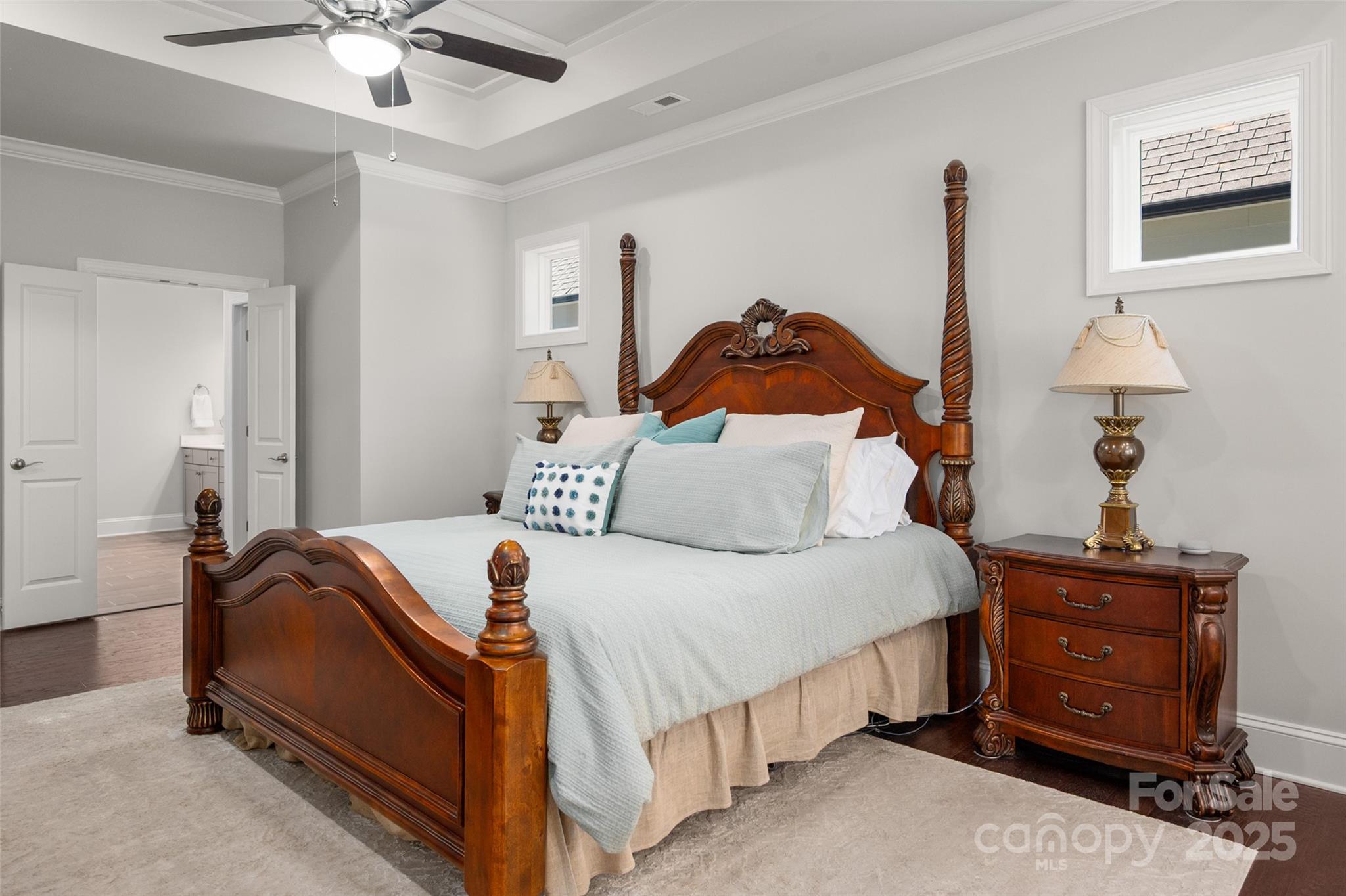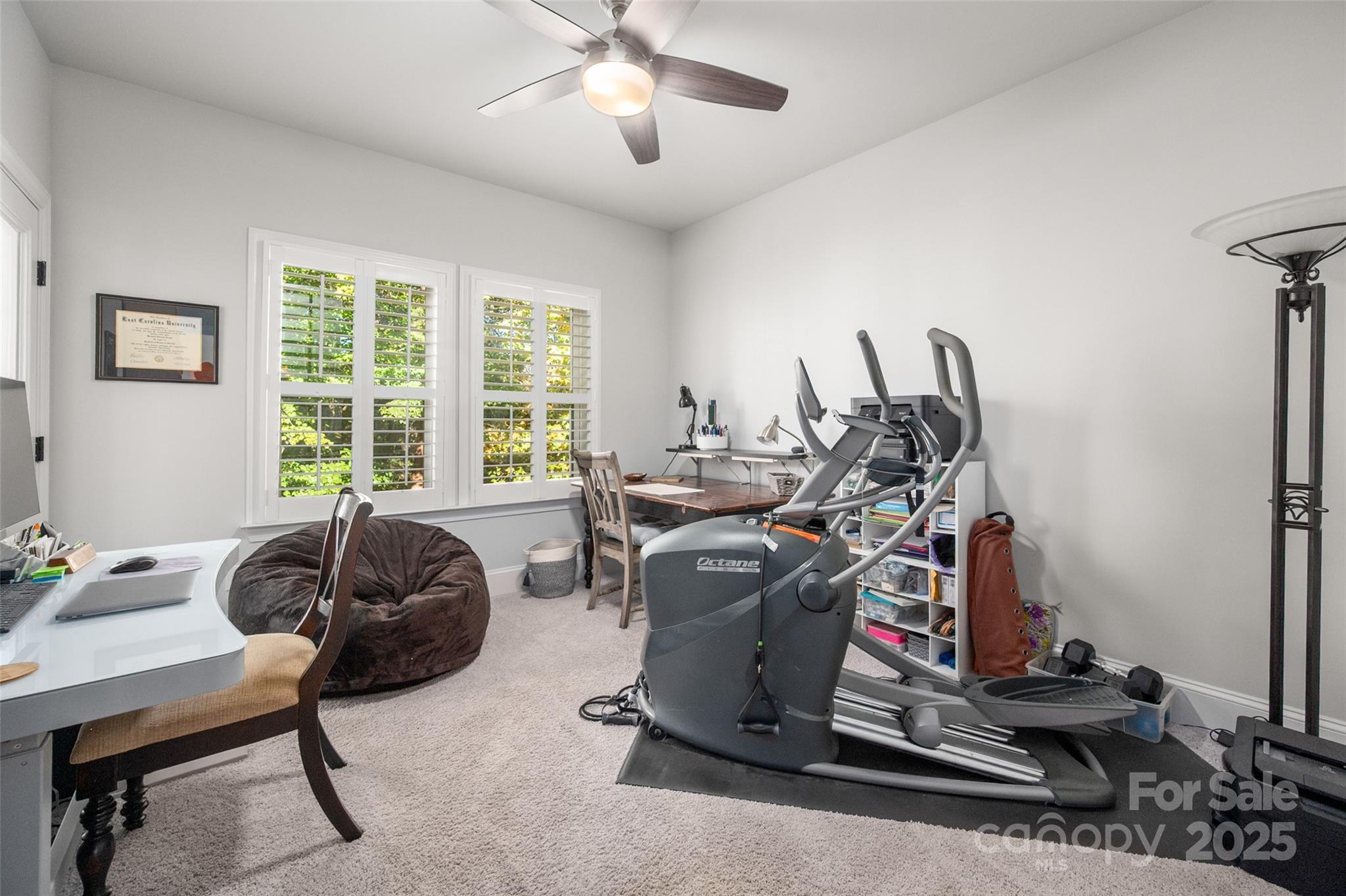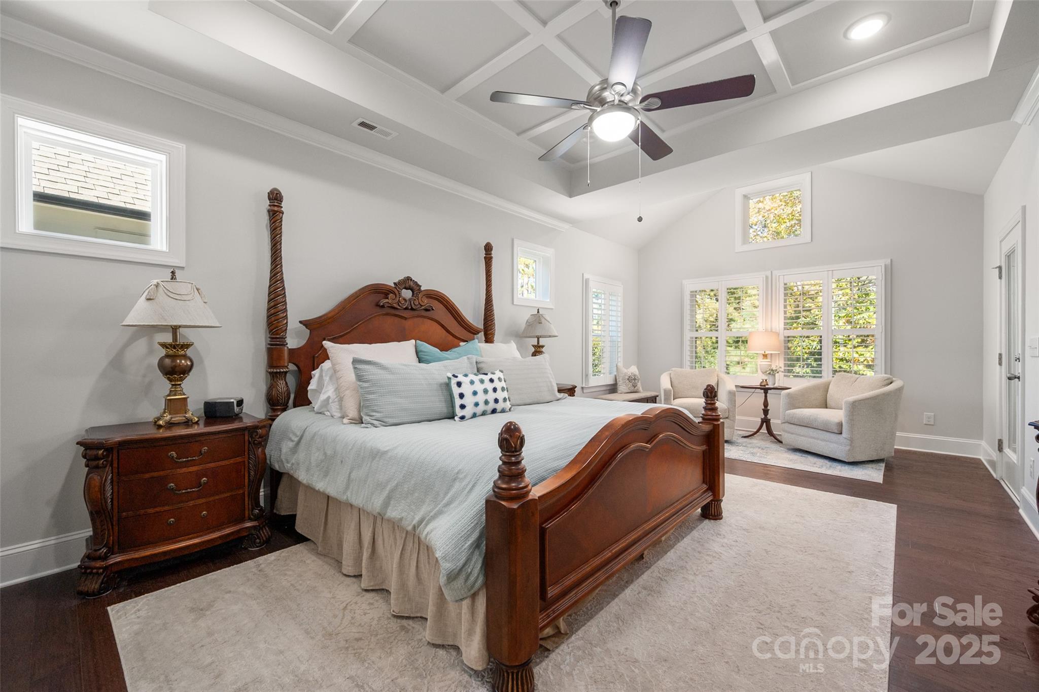 Beautifully appointed home in the highly sought-after Ballantyne area! This home features 11-foot ceilings and a stunning kitchen with leathered granite perimeter countertops, a large island ideal for entertaining, upgraded pull-out drawers, and crisp white cabinetry. The open floor plan is filled with natural light and includes surround sound wiring with speakers downstairs—perfect for gatherings. Enjoy outdoor living on the lighted paver patio with a built-in firepit, the screened porch, or the covered upstairs terrace accessible from the primary suite, bonus room, and secondary bedroom. The spacious primary suite offers a vaulted sitting area, a custom-built closet system with an upgraded fandelier, and a luxurious feel throughout. Additional highlights include a main-floor guest bedroom and designated office, hardwood floors throughout (except upstairs secondary bedrooms), a 3-car garage with secured storage and elevated shelving for extra storage, and a fenced yard. LAWN MAINTENANCE IS INCLUDED in the HOA, giving you more time to enjoy dining, shopping, and concerts in the nearby Ballantyne Bowl, plus easy access to 485 and other major conveniences. Zoned for top rated schools!