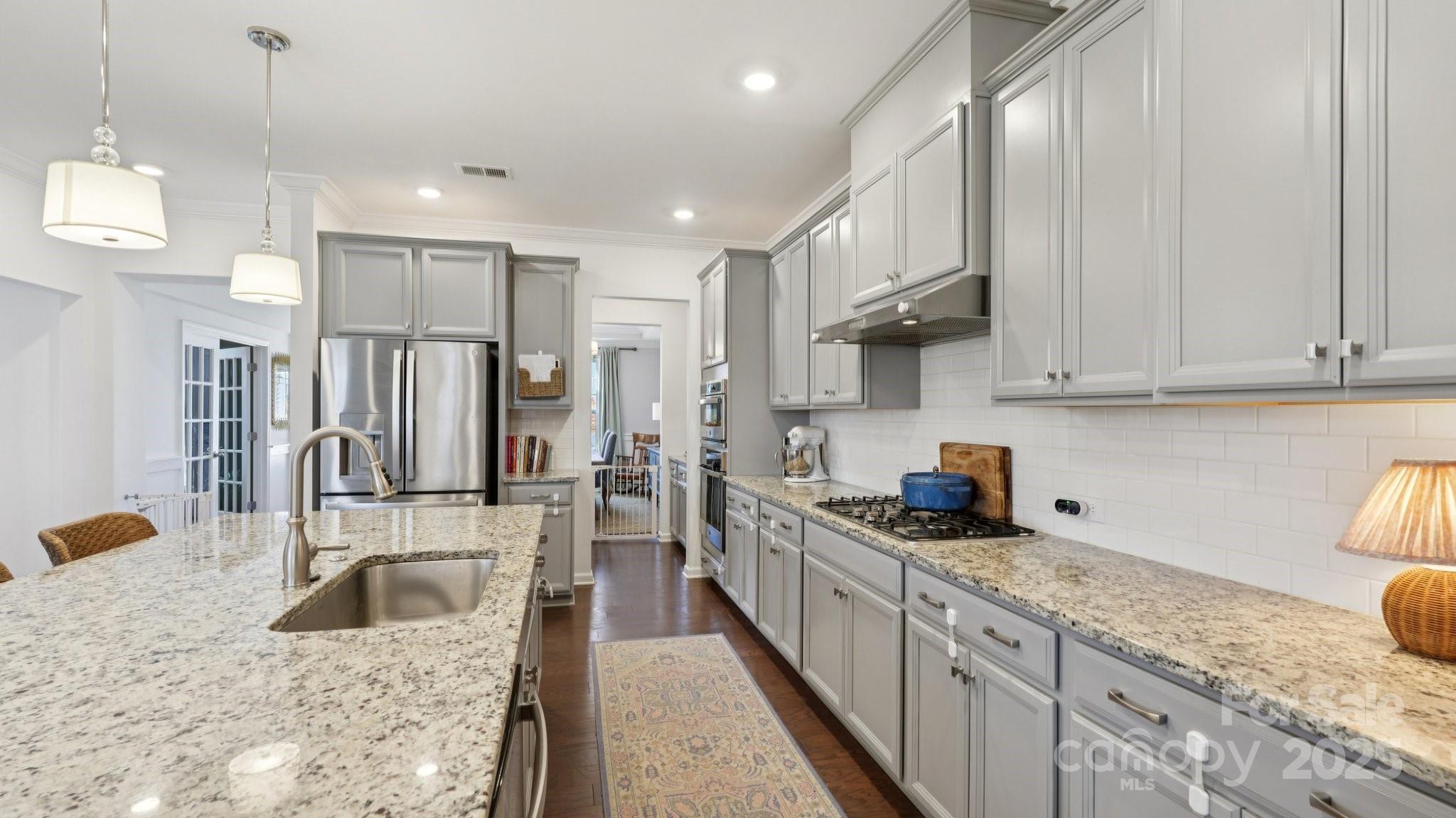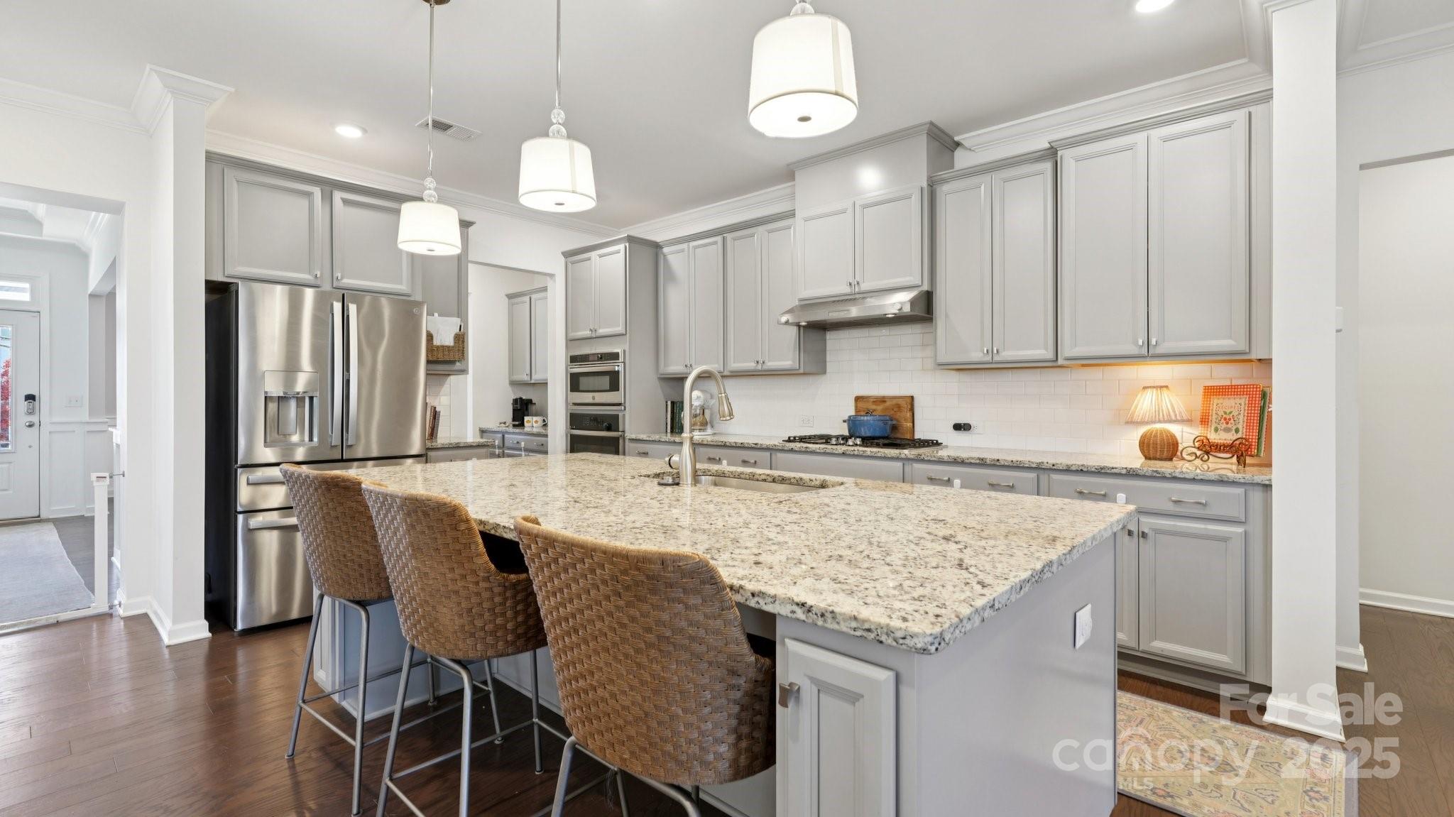 Welcome to this impeccably maintained and beautifully designed 4-bedroom home with a private office, offering refined living spaces and exceptional outdoor serenity — complete with stunning design choices and upgrades throughout. Inside, an open floor plan creates a seamless flow between the main living areas, highlighted by soaring tray ceilings, rich crown molding, wainscoting, upgraded casings, and modern hardwood floors. The cozy fireplace anchors the living room, situated beside the casual dining area and offering peaceful views of the backyard. The gourmet kitchen is a chef’s dream, featuring granite countertops, 48" soft-close cabinetry, a gas cooktop, expansive island, designer pendant lighting, butler’s pantry, and a custom walk-in pantry with specialized shelving. A stunning formal dining room completes the main level. The primary suite and an additional main-floor bedroom with a full bath provide convenience and flexibility for guests or multigenerational living. The luxurious primary retreat offers spa-like comfort with a dual-head walk-in shower with seating, dual marble-topped vanities, and premium finishes. Upstairs, you’ll find two generously sized bedrooms, a full bath, an oversized loft, and a bonus room — ideal for a second office, media room, or even a potential fifth bedroom. Outdoor living shines with a serene covered porch overlooking professionally designed landscaping and a beautiful patio. The fully fenced yard offers privacy and security, while upgraded smart-home technology brings everyday convenience to life. This home blends luxury, functionality, and comfort in a tranquil setting that feels like your own private oasis. Located in the heart of Millbridge, residents enjoy award-winning, resort-style amenities including an incredible clubhouse with a theater and staffed coffee bar, state-of-the-art fitness center, covered basketball court, tennis courts, and so much more. Conveniently located just minutes from charming downtown Waxhaw.