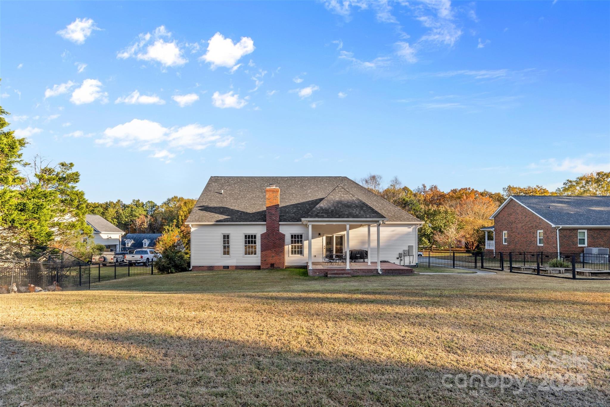 Welcome to Wesley Woods! This beautifully updated 3-bedroom, 2.5-bath home sits on more than half an acre and includes a partially finished flex space w/ vaulted ceiling & half bath above the garage—ready for your personal touch. A large, welcoming rocking chair front porch invites you to sit and stay awhile. Inside, the foyer opens to gorgeous new LVP flooring (2025), custom paint, and updated lighting. The spacious living room is ideal for gatherings and features a whitewashed brick wood-burning fireplace and stylish board and batten walls. The newly remodeled kitchen (2025) impresses with two-tone cabinetry, tile backsplash, upgraded fixtures, an undermount single-basin stainless sink, and newer appliances (2021). Enjoy meals in the breakfast area or the formal dining room. The split bedroom plan offers a generous primary suite with a walk-in closet and a refreshed bath featuring new mirrors, sink and new semi-frameless glass shower & hardware w/ subway tile. Two additional bedrooms offer newer carpet and padding (2021) and share a full bath with updated hardware and mirrors. The laundry room—conveniently located near the primary suite—includes cabinetry and provides access to both the garage and upstairs flex area. Just off the kitchen and dining area, relax on the large covered patio overlooking the flat, fenced backyard with raised garden beds. Upstairs, the partially finished room over the garage features a vaulted ceiling, dormer window, and a nearly completed half bath with new tile flooring, vanity, and toilet—plus walk-in attic storage. This versatile space is perfect for an office, bonus room, or home gym. Electrical and plumbing in place. Additional updates include an encapsulated crawlspace with dehumidifier (2021) and a new roof (2024). Wesley Woods offers a prime location between Weddington, Wesley Chapel and Sun Valley with easy access to shopping, dining, grocery stores, schools and entertainment. And did we mention...NO HOA!! Don’t miss the opportunity to make this beautifully maintained home yours in time for the holidays.