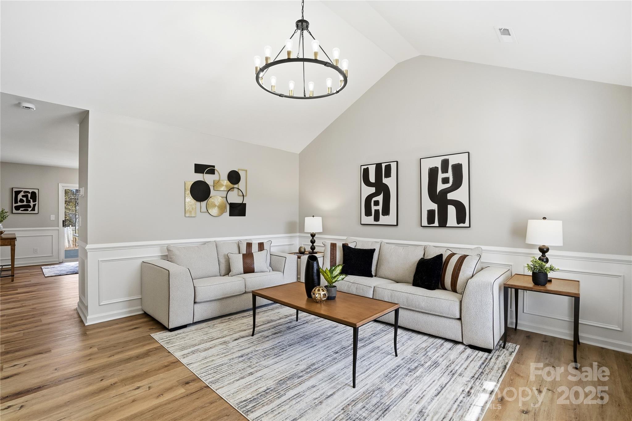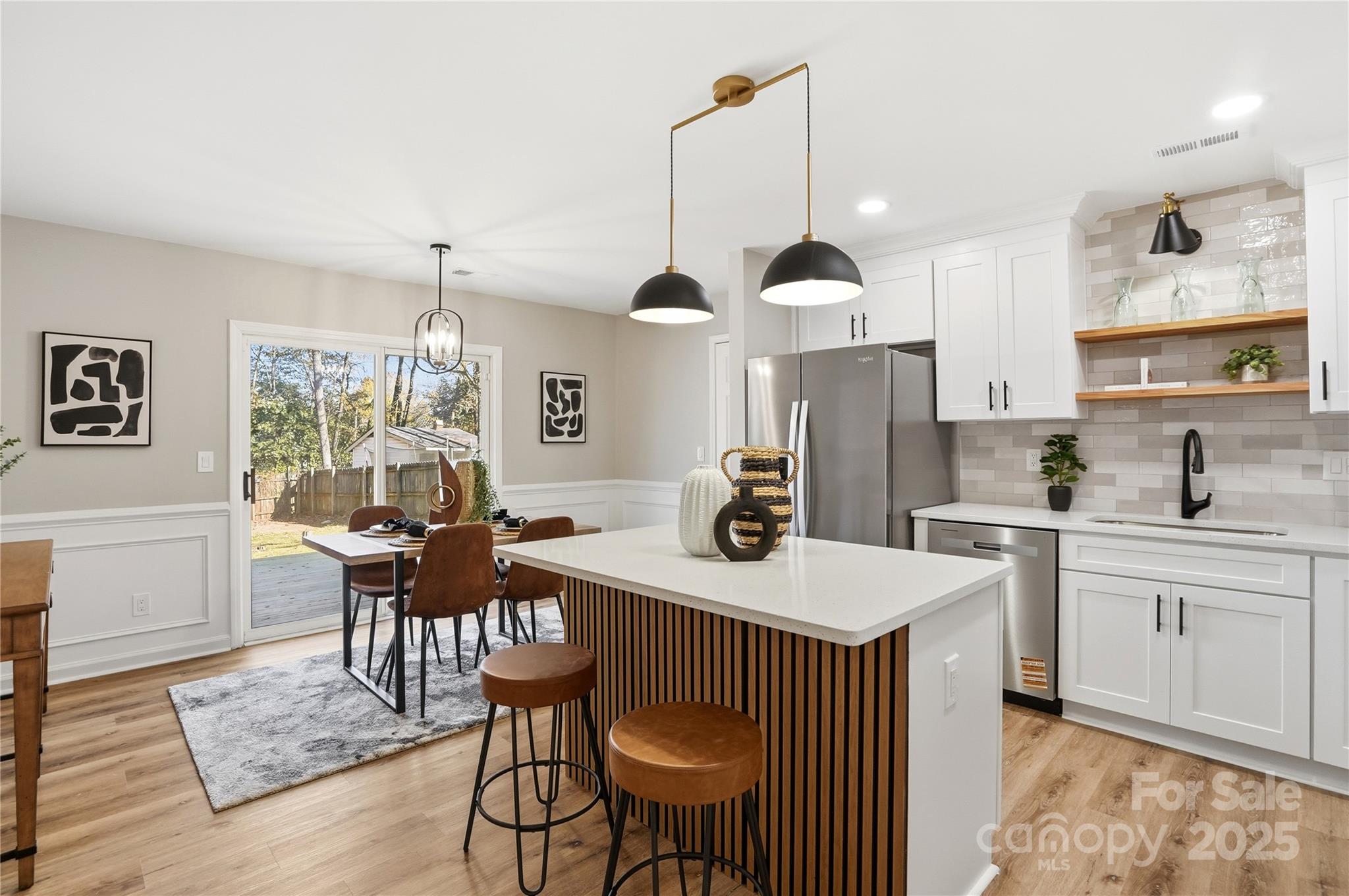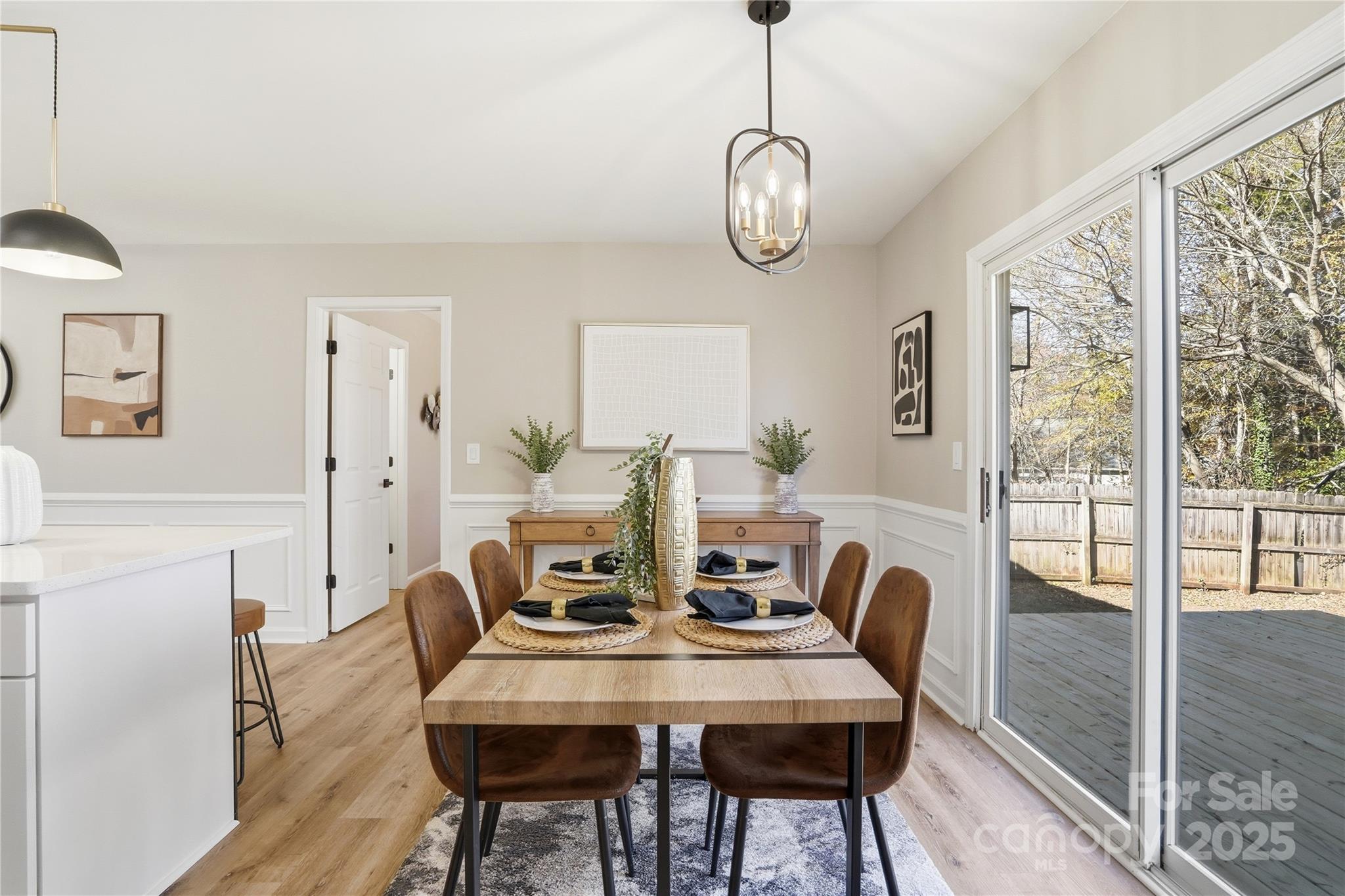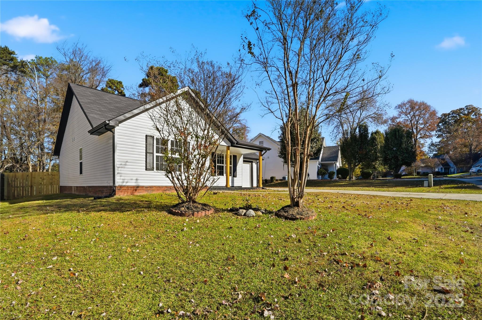 Welcome to this beautifully updated one-story ranch on a peaceful street — 801 Jordans Pond Lane. A welcoming covered front porch with rustic wooden posts and a freshly refreshed exterior set the tone for this charming home. Inside, the bright open-concept floor plan features vaulted ceilings and attractive wood-look flooring that flows throughout the main living spaces. The modern kitchen is a chef’s delight with a quartz island, crisp white cabinetry, and stainless steel appliances — perfect for casual meals or entertaining. Spacious living and dining areas flow seamlessly, creating an easy, comfortable layout. Retreat to the primary bedroom with vaulted ceilings, a walk-in closet and a private ensuite. A peaceful back porch overlooks the private, fenced backyard — a serene spot for morning coffee or evening relaxation. Thoughtful updates paired with classic curb appeal make this a true must-see for buyers seeking a move-in ready ranch home.