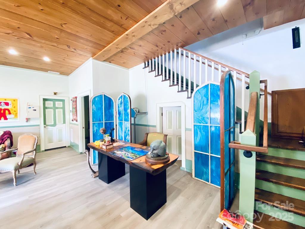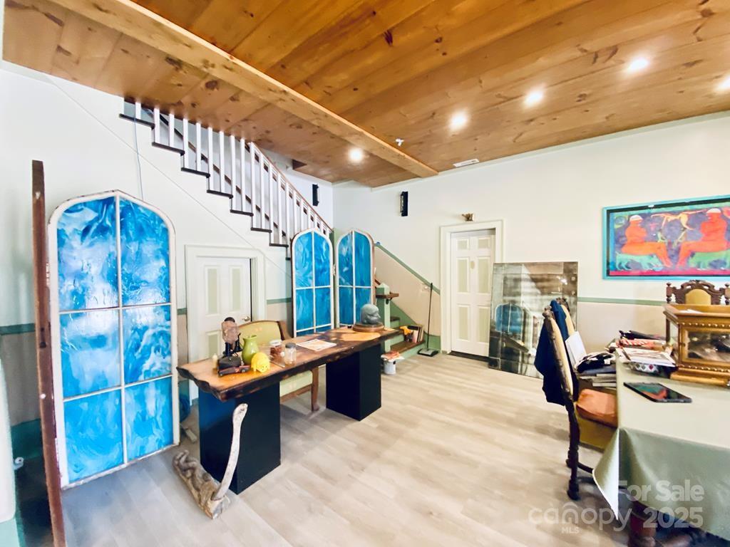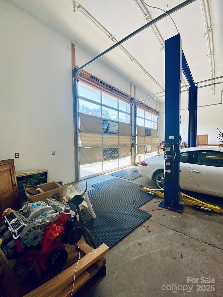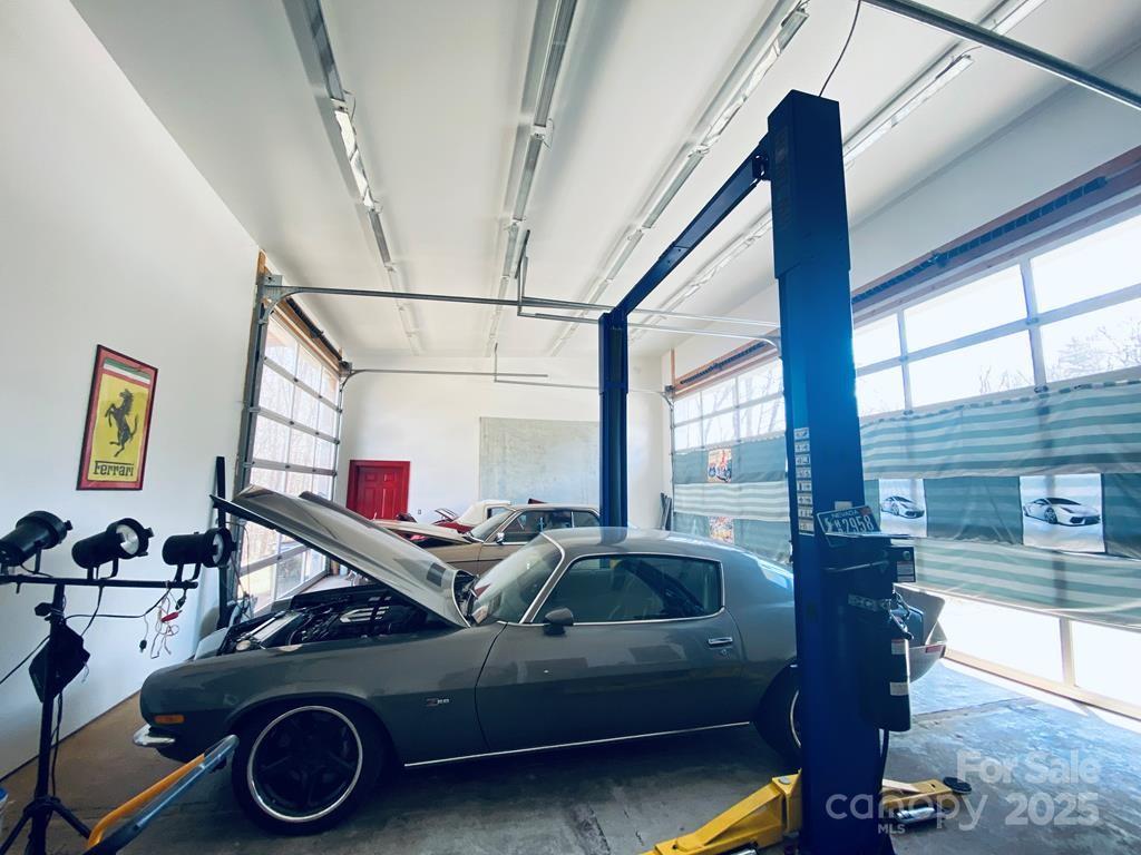 Prime Commercial property in a high traffic area ideal for car enthusiasts, auto repair owners, antique shops, or for storage purposes. MOTIVATED SELLER! The property features two large heated bays, each equipped with two bay doors, includes one pass-through door. The upstairs and downstairs areas are beautifully finished, highlighted by a striking stairway. Central Heat/Air. Includes a full bath with an attractive large tiled shower, as well as a 1/2 bath with a stainless steel sink. Upstairs, you’ll find additional showroom space, storage or a sleeping area, complete with large covered balconies at the back and front. There is a good sized backyard that includes a large storage building with a bay door. MOTIVATED SELLER!