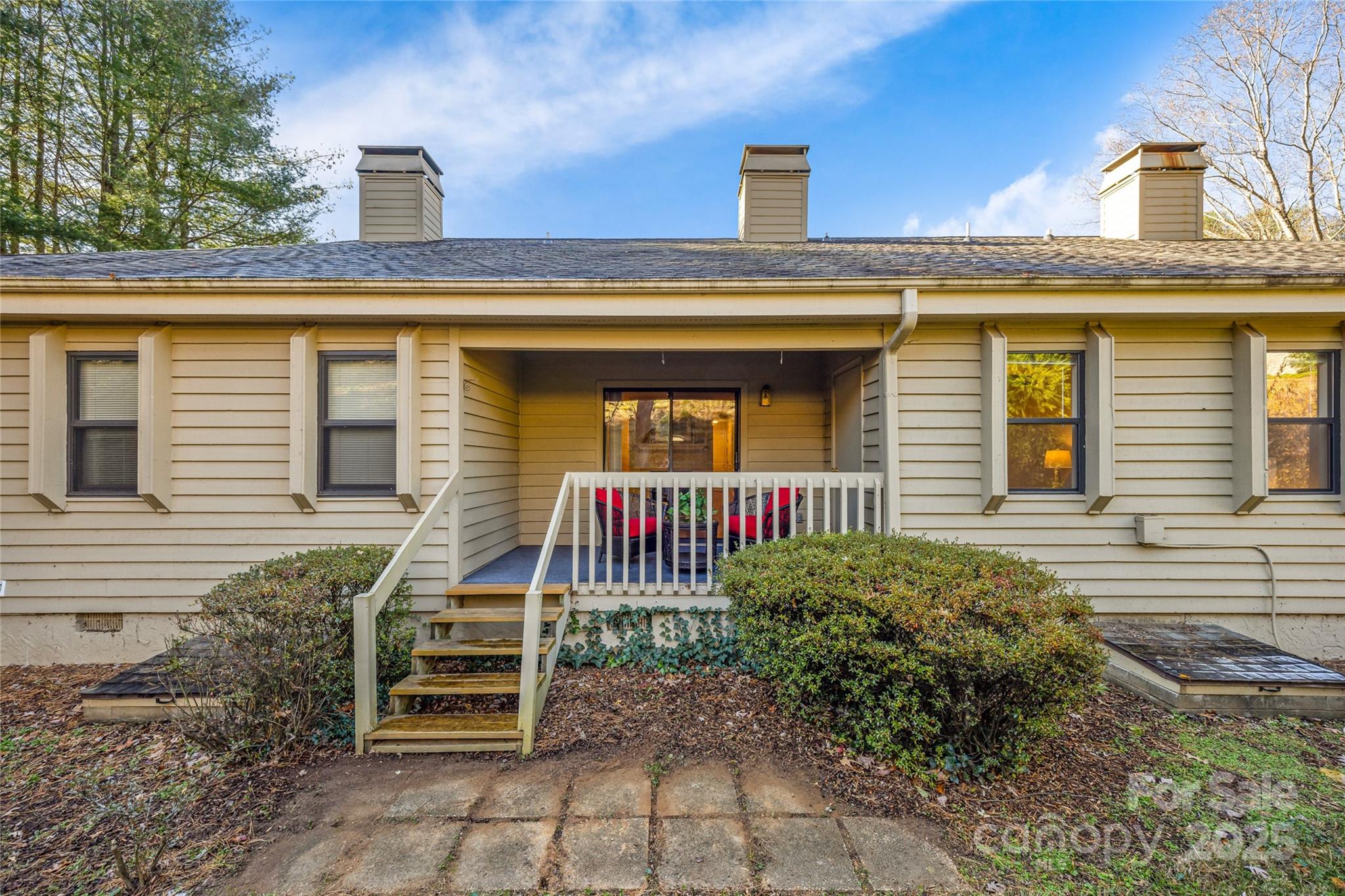 Pristine, one level living with updated kitchen and bathrooms so all that is left to do is move in and Enjoy! Middle unit with 2-car carport with storage closet. Gleaming hardwood floors, gas fireplace, city utilities....it's all here, only minutes to Tunnel Road shops, dining and downtown Asheville. The large kitchen with updated cabinets and granite countertops has plenty of room for a small bistro table or desk, while a larger, more formal dining room is just around the corner. The spacious primary bedroom has a full ensuite bathroom and the secondary bedroom has direct access to a full bath that can also be accessed from the common living areas. Relax and enjoy your favorite beverage on the private, covered back deck. The freedom from exterior maintenance and landscaping will have you spoiled in no time, so come see it today and experience the comfort, freedom and ease of single level, low maintenance living.