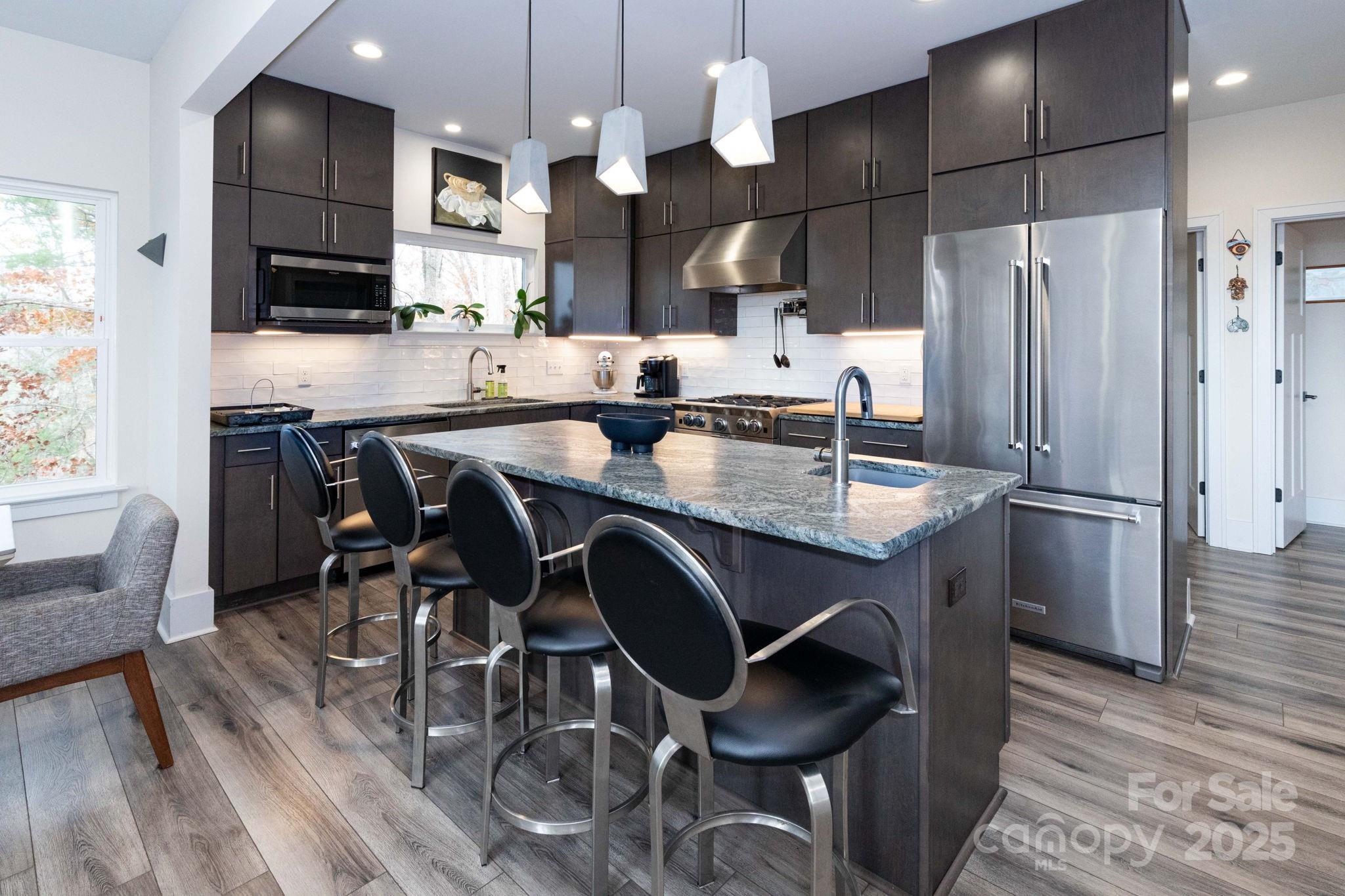 Experience mountain living at its finest in this beautifully crafted 2019-built home on 3.95 private acres in north Weaverville. Tucked at the top of a quiet mountain but just minutes from I-26 and downtown Weaverville, this property offers the perfect blend of convenience, serenity, and elevated style. With a successful short-term rental history, it’s an ideal full-time residence, second home, or investment opportunity. Step inside to soaring lofted ceilings and a wall of multi-level windows that fill the living room with natural light and frame sweeping views of the front yard and distant ridgelines. The gourmet kitchen is a chef’s dream, featuring high-end appliances—including a Bluestar range, oven, and hood—plus a spacious island with a breakfast bar for casual dining. Two comfortable bedrooms, a full bathroom, and a laundry room make up the main level. Retreat upstairs to the versatile primary suite, which can be fully closed for privacy or opened as a loft to take in the panoramic mountain views. Enjoy a spa-like ensuite with a steam shower and a generous walk-in closet. Outdoor living is equally impressive with a wrap-around screened porch, covered side porch, stone patio with firepit, storage shed, and a level, sunny front yard visited often by local wildlife. Don’t miss this peaceful mountain getaway with unbeatable access and income potential. Schedule your showing today or reach out to learn more!