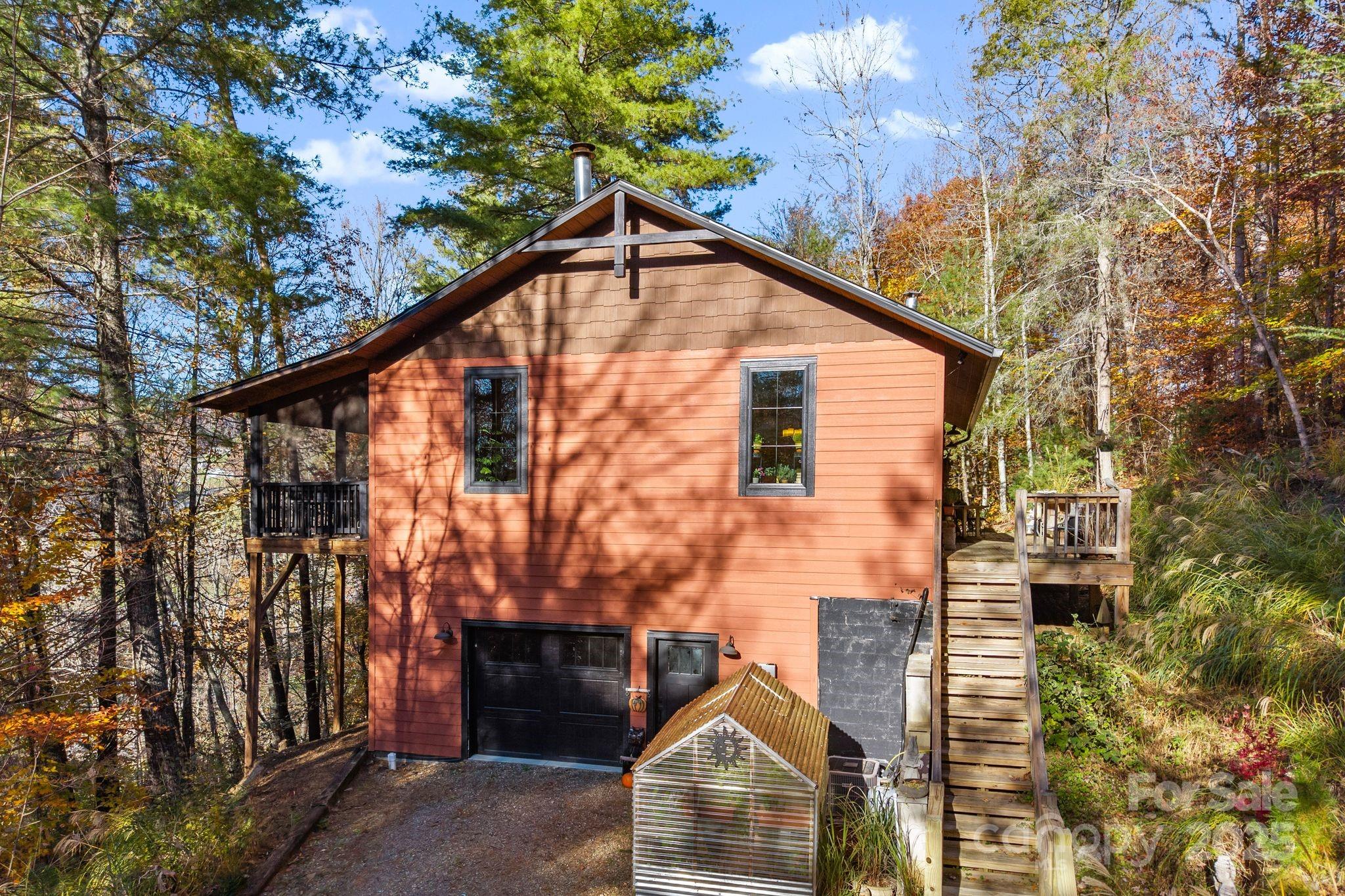 Are you ready for your own private luxury getaway tucked into the trees? Then come see this elegant, light-filled cabin in the woods! This contemporary build features soaring ceilings, walls of windows, gleaming counters and appliances and everything you need for a modern lifestyle without the modern stress! Relax in the hot tub, rock the day away on the hammock on the huge screened deck listening to the breeze and the birds, celebrate with family and friends in the welcoming gathering spaces around the fire! Thoughtful floor plan takes every need into account offering open spaces, peaceful bedrooms, lovely bathrooms, downstairs guest quarters, and a large garage; wide screened deck accommodates all of your social and relaxing activities! All of this peace and beauty is yours while still being only 25 minutes to Downtown Asheville and all of the pretty towns in-between!
