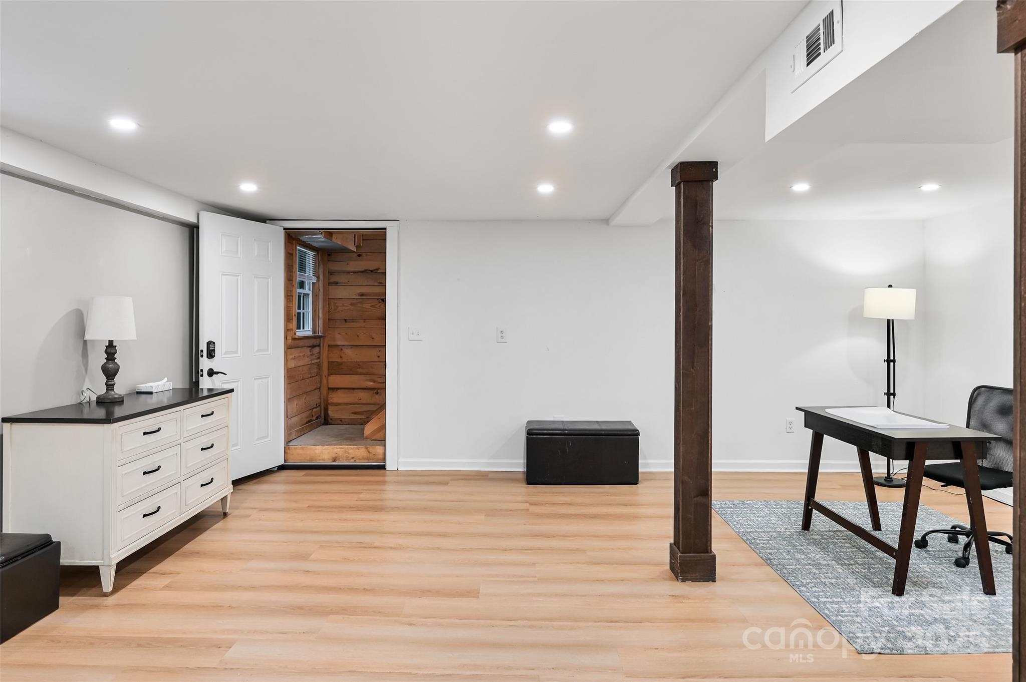 Welcome to this updated ranch-style home offering comfort, functionality, and room to grow. Move-in ready, it includes an impressive 800 sq ft powered metal workshop—perfect for hobbies, storage, car enthusiasts, or art and woodworking projects. Inside, the open kitchen, dining, and living area flows seamlessly and is centered around a cozy wood-burning fireplace. The main level features three bedrooms and a beautifully remodeled bathroom with a walk-in shower and relaxing garden tub. The fully finished basement adds valuable versatility with a kitchenette, bonus room with a second fireplace, full bath, and generous storage—ideal for guests, multi-generational living, or a private home office. Outside, enjoy a fenced backyard great for pets and outdoor living. Conveniently located just 10–15 minutes from downtown Asheville and close to the Buncombe County Soccer Complex, Dog Park, schools, and shopping, this flexible property is perfect for anyone seeking a primary residence with extra space or a fantastic workshop setup.