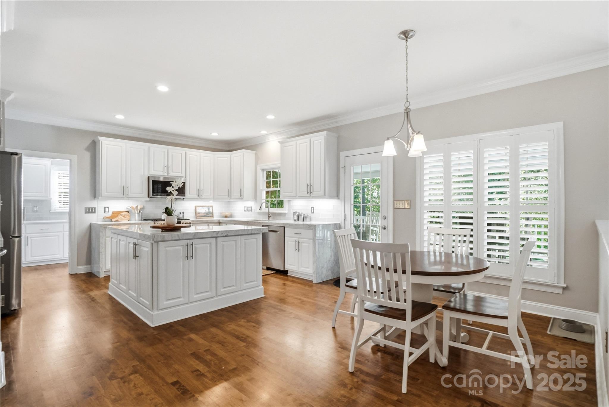 Welcome Home to Refined Elegance in Highland Creek Impeccably updated and meticulously maintained, this full-brick residence offers an exceptional blend of timeless craftsmanship and modern sophistication. From the moment you enter the grand two-story foyer, you’re greeted by gleaming hardwood floors and an immediate sense of scale and elegance. The gourmet kitchen is a true showpiece, showcasing Carrera marble countertops, a striking quartz backsplash, custom cabinetry, under-cabinet lighting, and all-new stainless steel appliances. Thoughtfully designed for both function and style, it opens seamlessly to the two-story family room, where a gas fireplace anchors the space with warmth and character. The main level also features a private office, a spacious guest suite with an ensuite bath, and a beautifully appointed laundry room with designer touches. Retreat upstairs to the luxurious primary suite, complete with dual walk-in closets, a serene sitting area, and a spa-inspired bath featuring a frameless glass shower, soaking tub, and expansive dual vanity. Three additional guest bedrooms and a generous bonus/flex room provide ample space for relaxation or recreation. Step outside to your private backyard sanctuary, where an oversized covered porch and expansive paver patio create the perfect setting for alfresco entertaining. Lush landscaping, mature trees, and vibrant hydrangeas offer beauty and privacy, while the fully fenced yard provides direct access to the community’s walking trail. Nestled within the prestigious Highland Creek community, residents enjoy resort-style amenities including four sparkling pools, a fitness center, tennis and pickleball courts, walking trails, and a public golf course. With a vibrant calendar of neighborhood events and proximity to premier shopping, dining, and major highways; this home embodies luxury living at its finest.