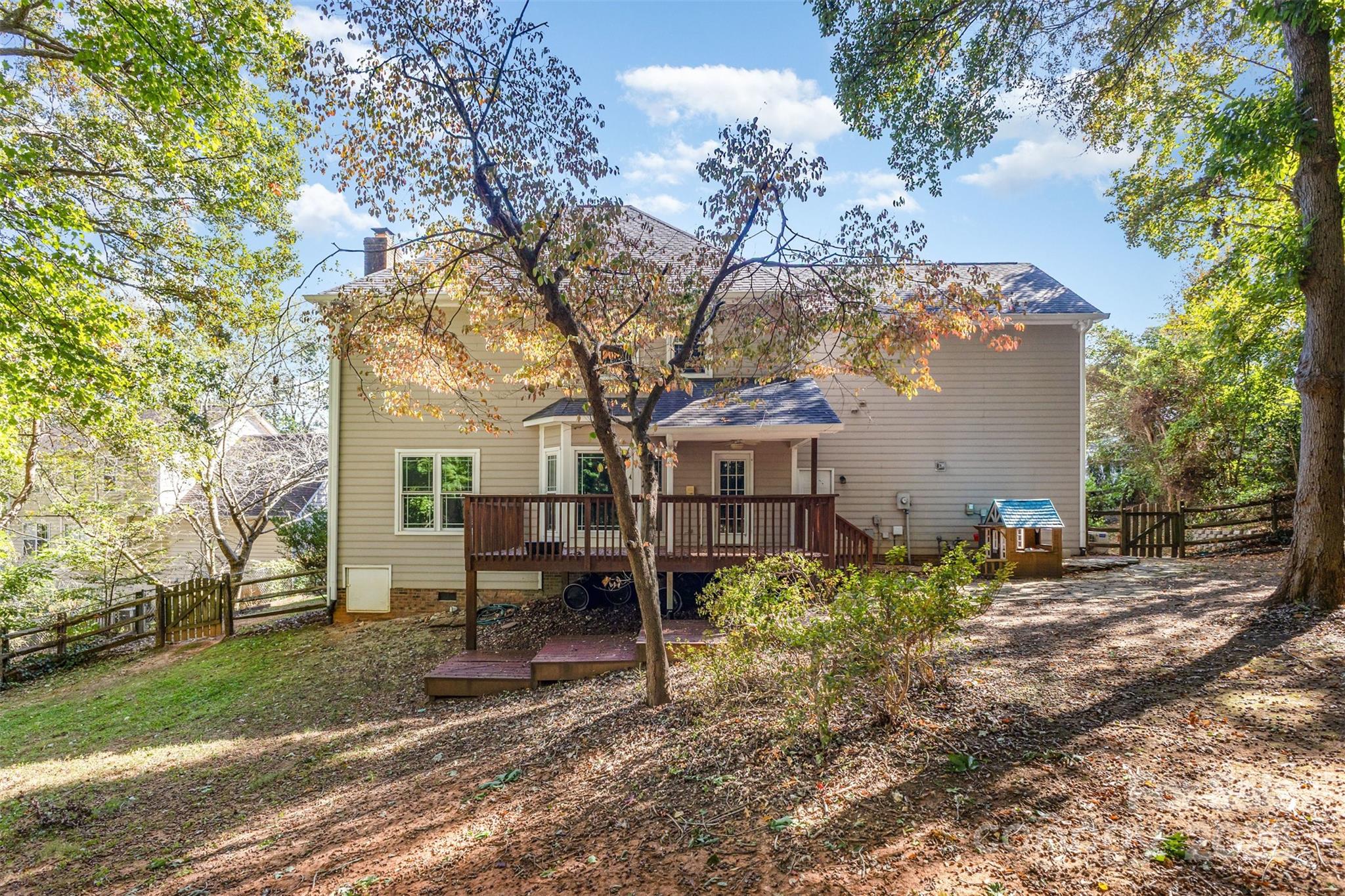 Perfectly situated in The Heathers, this beautifully updated home sits on a spacious cul-de-sac lot and offers a private, fenced backyard that feels like your own natural retreat...with no HOA. Enjoy outdoor living year-round with a stone patio, a covered deck where you can enjoy nature, even when it's raining, and mature trees providing shade for those hot summer months and privacy year round. Inside, fresh paint and new flooring create a bright, inviting atmosphere. The two-story foyer adds a sense of openness, while French doors lead to a dedicated office. The formal dining room features wainscoting, and the brand-new LVP throughout the main level combines style and durability. The kitchen includes granite countertops, stainless steel appliances, pantry, and a convenient built-in desk area. The breakfast nook and family room overlook the scenic backyard through large windows, allowing natural light to fill the space as you enjoy the comfort of the gas fireplace. Upstairs offers three well-sized secondary bedrooms and a generous owner’s suite with tray ceilings, a soaking tub, and a walk-in closet. The bonus room/bedroom provides the perfect flex space ideal as a playroom, media room, workout room or any other type of usage you can think of!