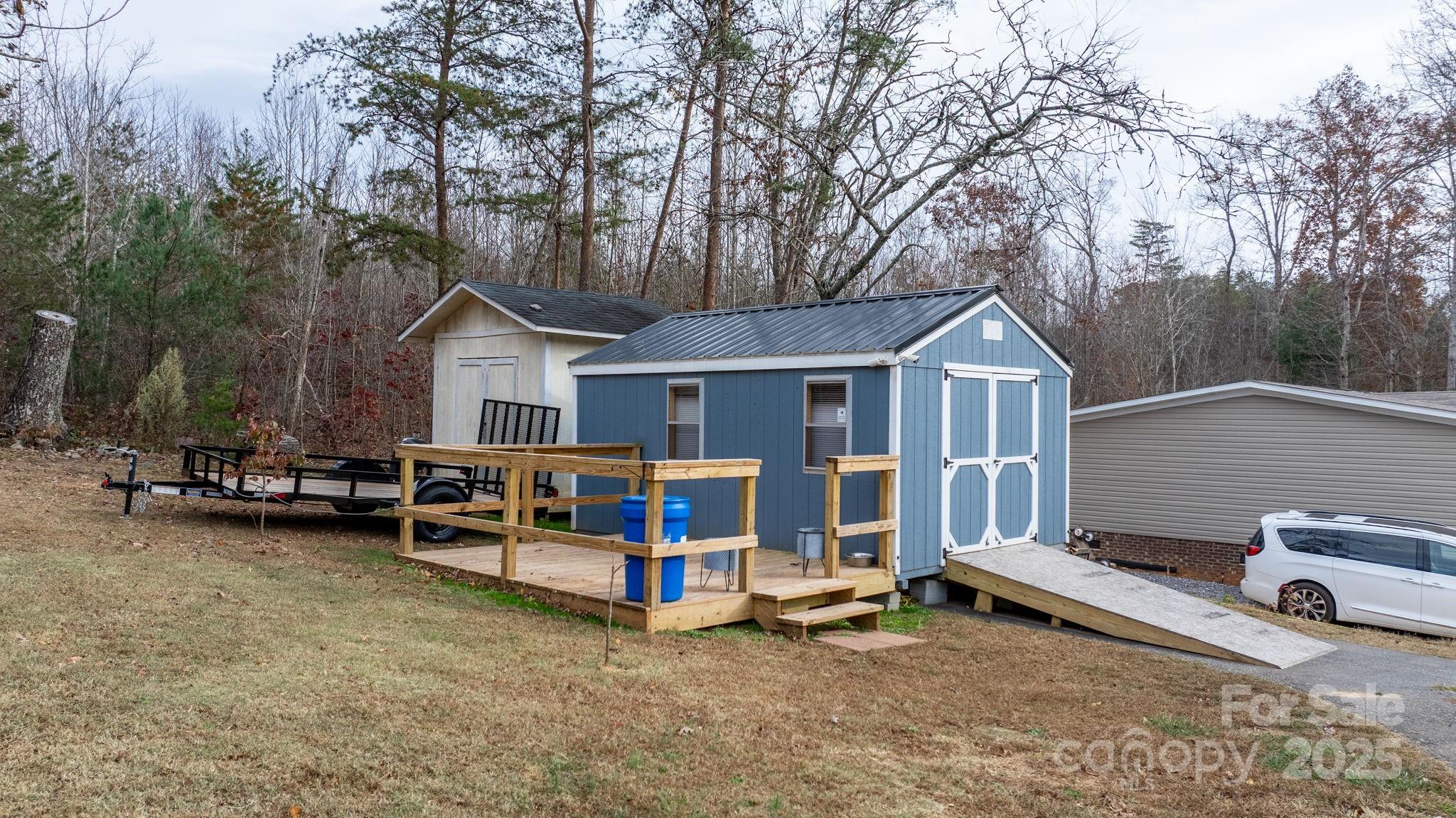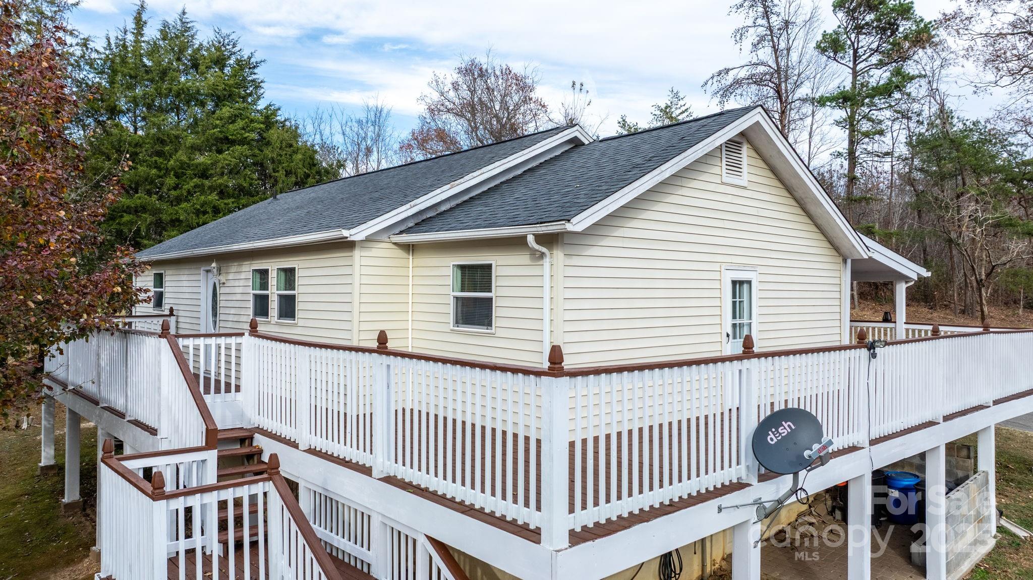 Nice 3-bedroom, 2-bath home situated on a spacious 0.49 acre lot. This property offers a large living room ideal for accommodating plenty of furniture and gathering with friends and family. The well-appointed kitchen provides ample cabinet space, and all appliances remain. A dedicated dining room opens onto the beautiful covered wrap around deck, perfect for relaxing or entertaining. The home features three comfortable bedrooms, including a primary suite (currently unfurnished) with its own private bath. The two additional bedrooms are generously sized and share a full hall bath. A separate laundry room located just off the kitchen provides excellent storage options and added convenience. Outside, enjoy the freshly painted wrap around deck offering abundant outdoor living space—great for hosting, grilling, or simply enjoying the peaceful surroundings. Two storage buildings convey with the property, providing even more space for tools, hobbies, or seasonal items. Conveniently located near I-40, this home offers an easy commute: approximately 45 minutes to Asheville, just over an hour to Charlotte, and 15–20 minutes to beautiful Lake James. PRICED at $239,900