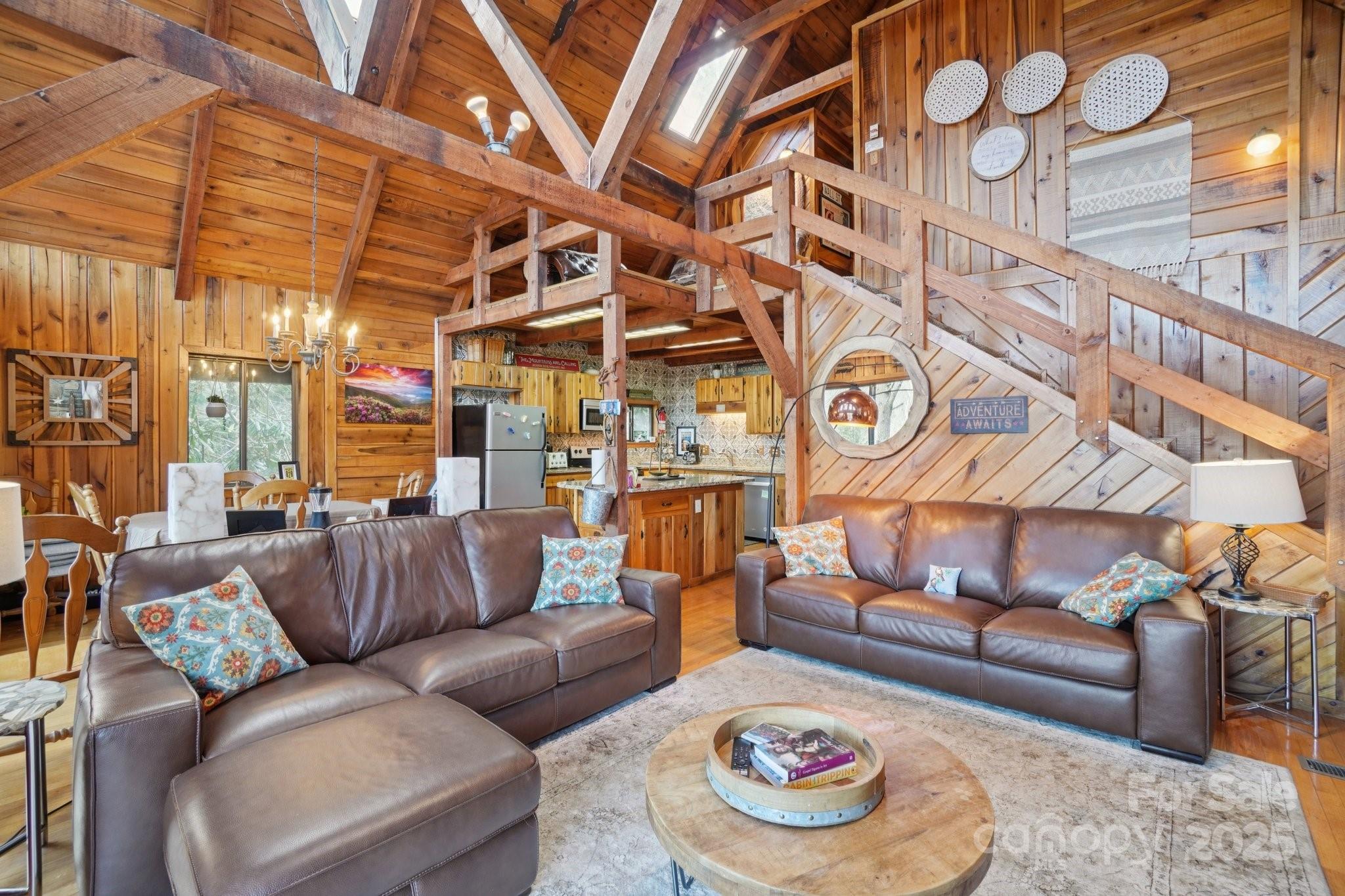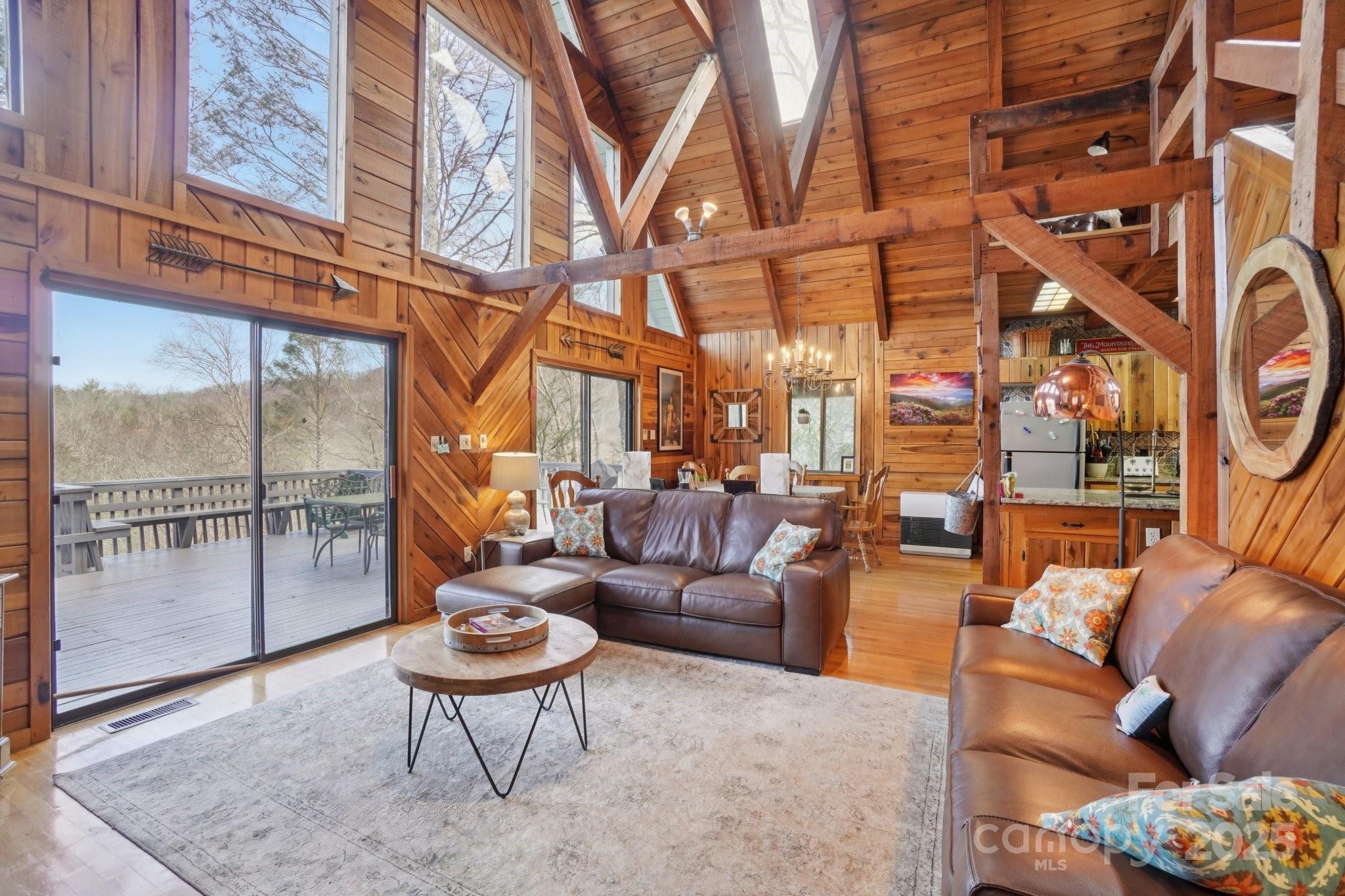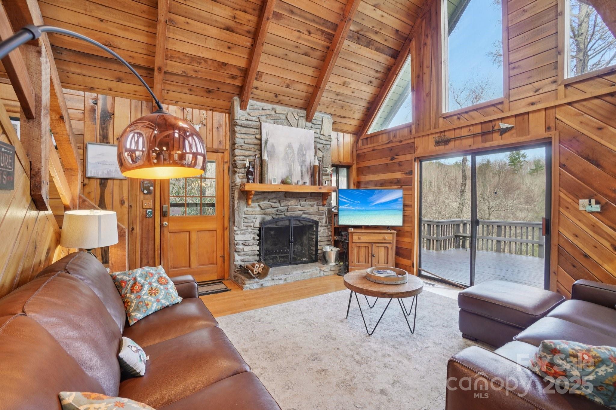 Discover your perfect mountain retreat in this stunning home that seamlessly blends comfort with natural beauty. Come inside to an open floor plan anchored by a magnificent stone wood-burning fireplace that creates the ideal gathering spot for family and friends. The updated kitchen flows effortlessly through the living spaces, while the primary bathroom on the main level offers convenience and luxury. Home was previously a successful vacation rental. Comes furnished and ready to rent or come enjoy yourself! Mountain views greet you from multiple vantage points, and the large deck provides the perfect stage for morning coffee or evening relaxation while soaking in the breathtaking scenery. The daylight basement presents exciting possibilities – game room or additional living space to maximize your square footage potential. Practical amenities include a two-car detached garage and paved driveway for easy access year-round. The location strikes an ideal balance between tranquil mountain living and outdoor adventure. You're minutes away from the Roaring Fork Falls Trailhead for hiking enthusiasts, while the Blue Ridge Parkway entrance sits less than three miles away, opening up endless exploration opportunities. This property offers the rare combination of mountain serenity and accessibility, making it perfect for full-time residents seeking a peaceful lifestyle or those wanting a weekend escape from city life. The thoughtful layout and natural setting create a welcoming atmosphere where every day feels like a vacation. Whether you're entertaining guests on the spacious deck or cozying up by the fireplace, this home provides the mountain living experience you've been dreaming about. Priced to move quickly! Call to view today!