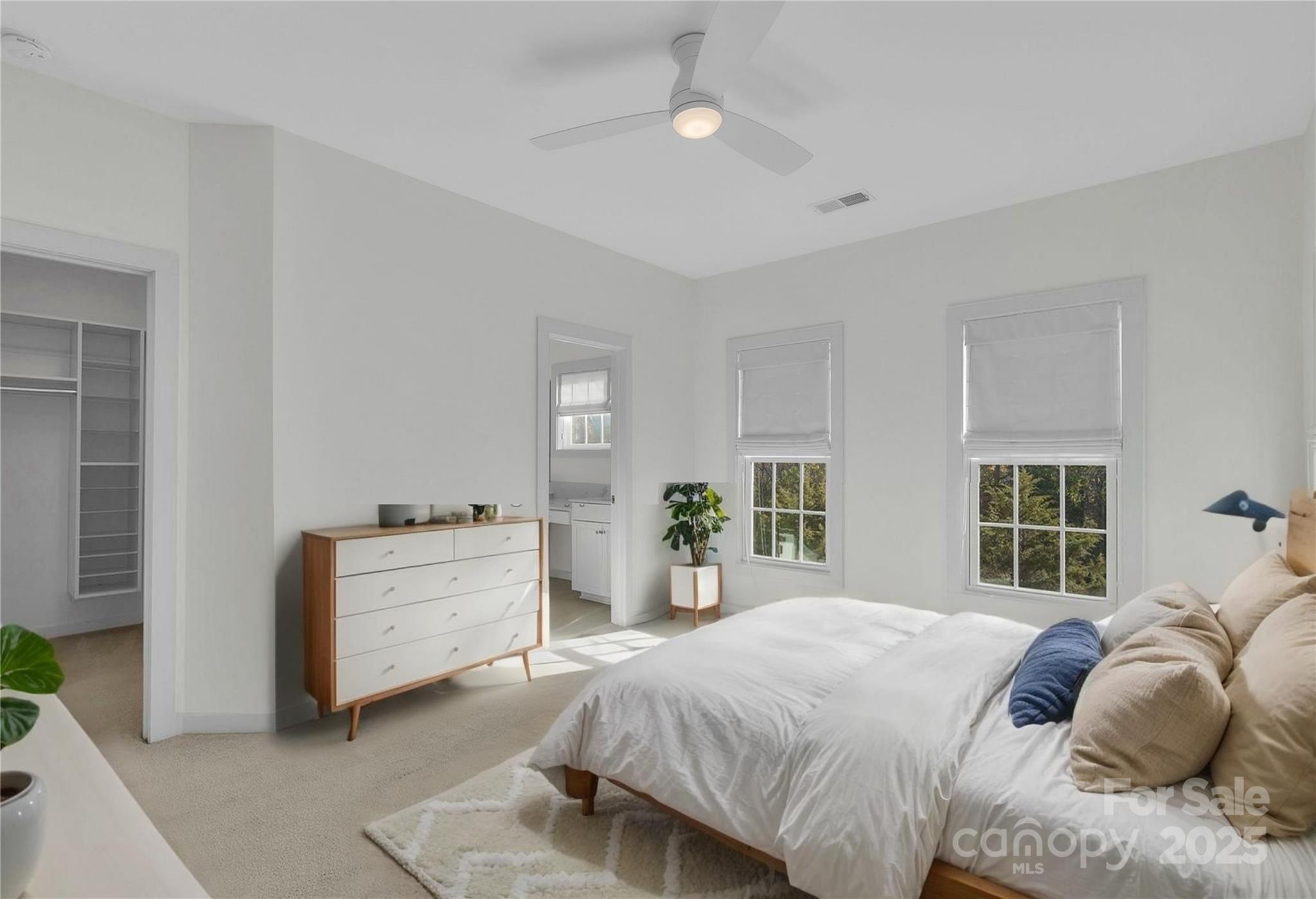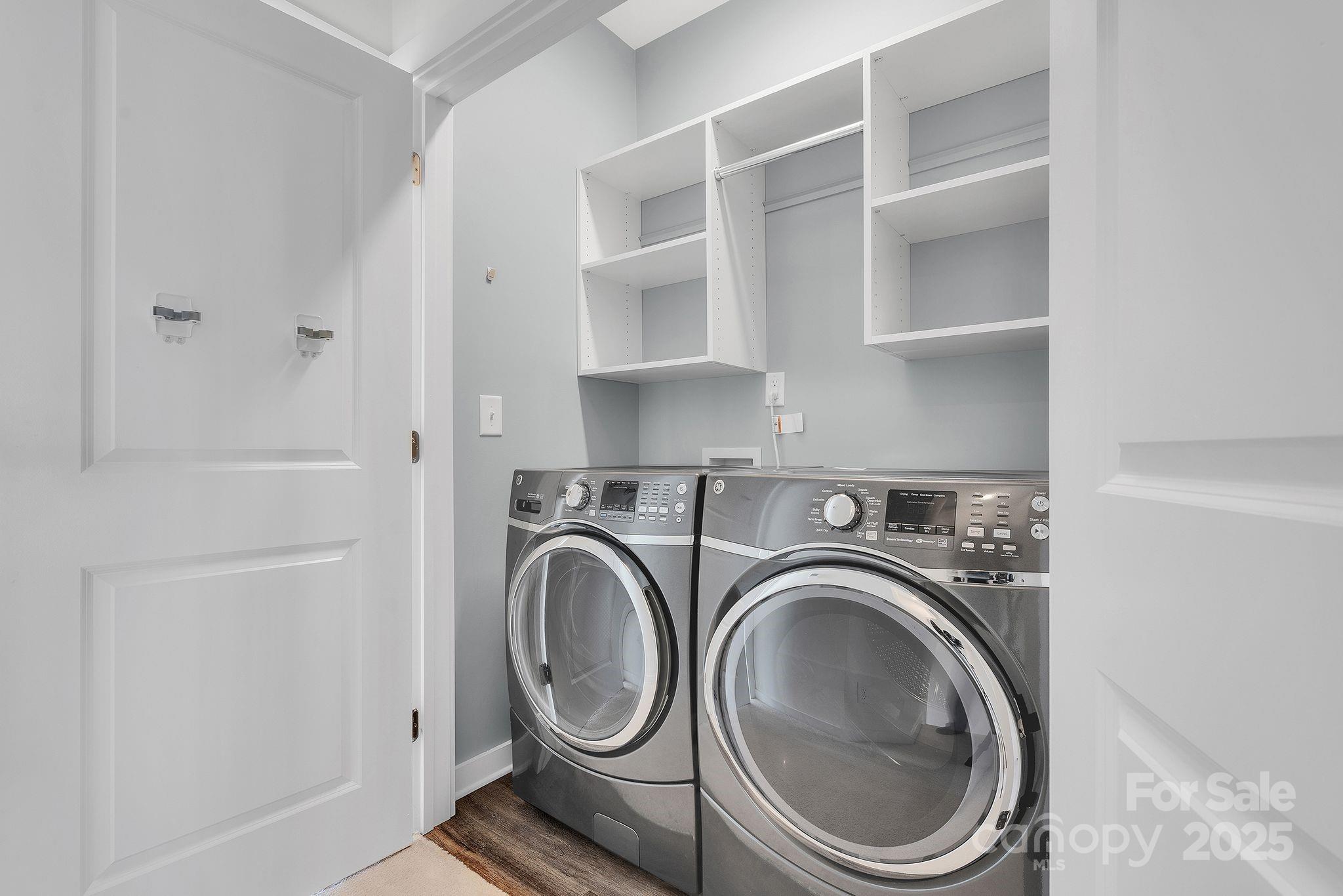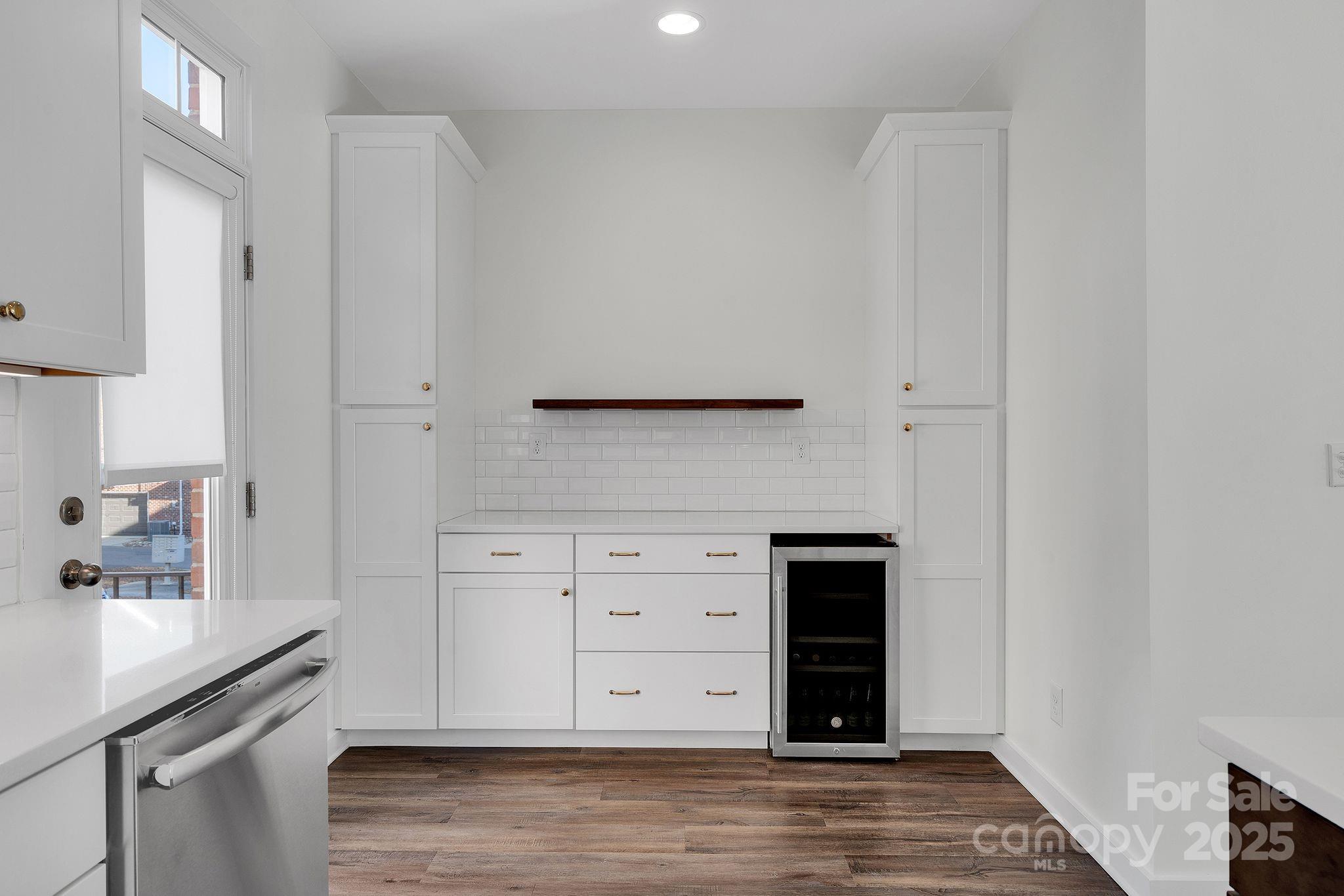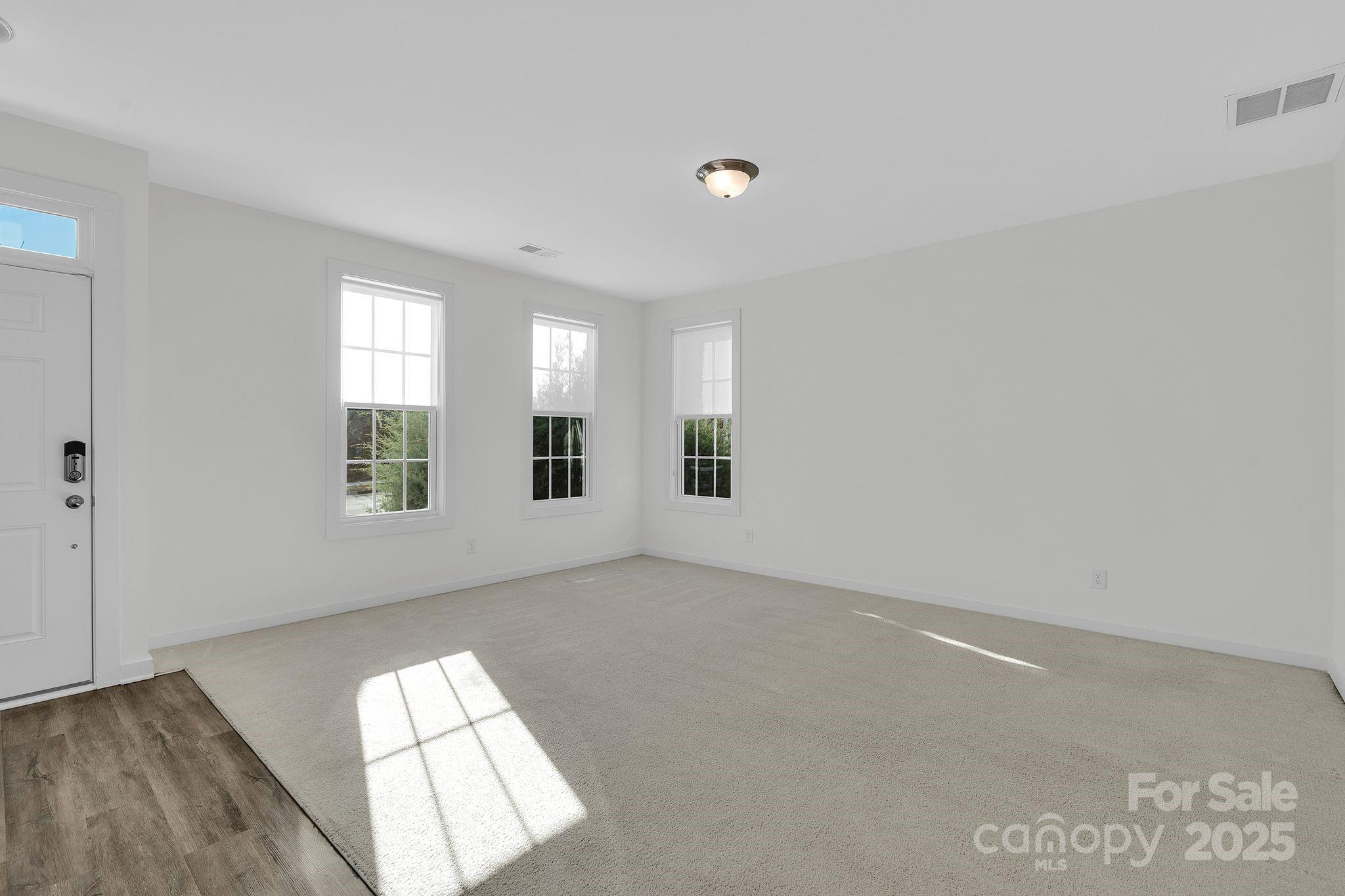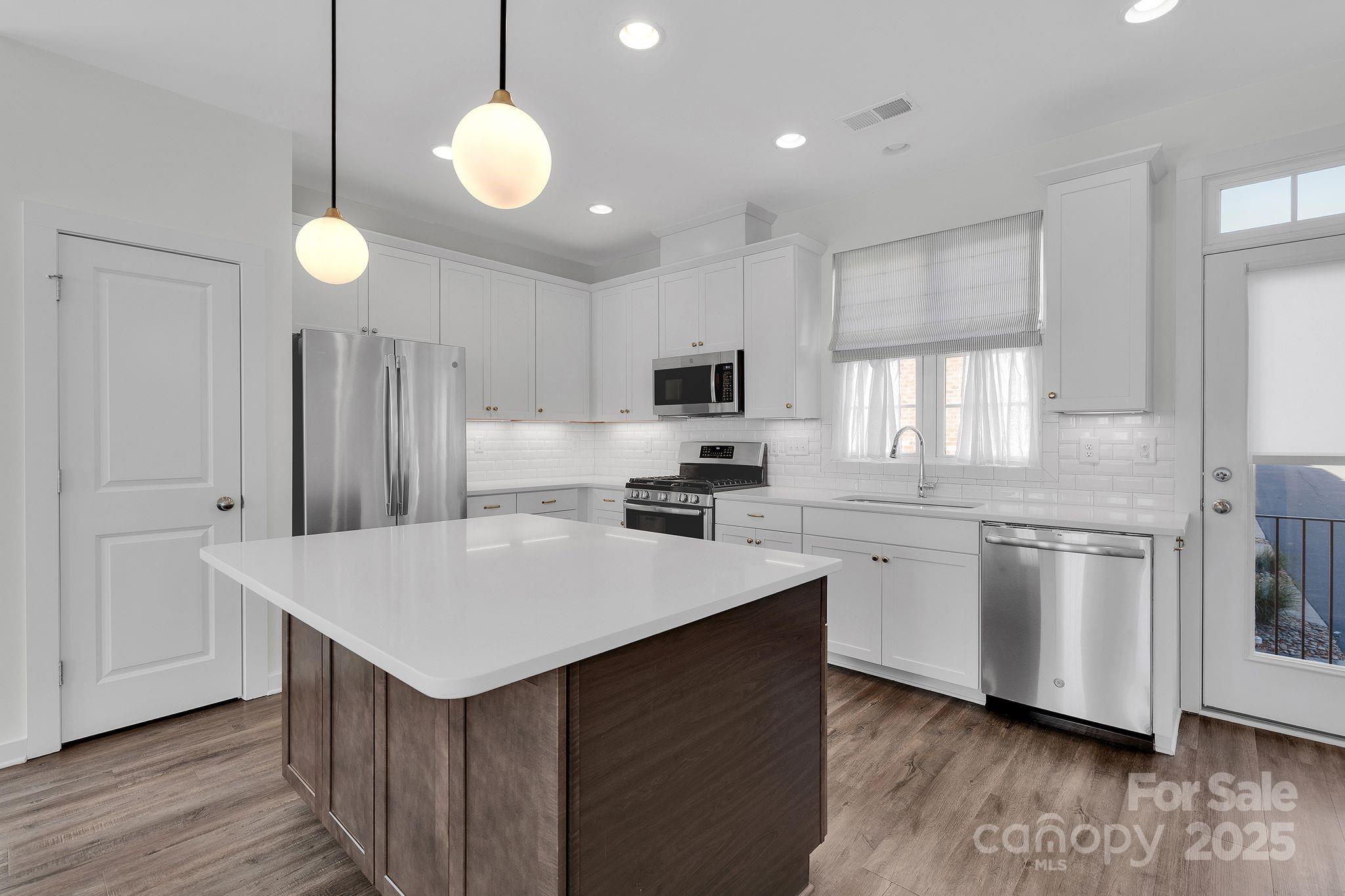 This designer-updated end-unit townhome in the heart of Ayrsley stands out with upgraded lighting throughout, modern multi-toned kitchen cabinetry, refined hardware, fresh paint, and beautiful floors on the main living level. The bright, open layout features a stylish kitchen with a built-in beverage fridge and updated fixtures that flow seamlessly into the living and dining areas. A powder room with designer wallpaper adds a custom touch. Upstairs, both bedrooms include custom built-in closet systems, and the bathrooms are freshly painted, with the primary offering a tiled shower. Custom fabric roller shades give a clean, modern finish to every room. The lower-level flex space works well as an office, gym, or guest area. Enjoy added natural light and privacy only an end unit provides, plus peaceful tree and water views. The attached garage includes an EV charging station. This turnkey home is just steps from Ayrsley Town Center dining, shopping, and entertainment with quick access to major highways.