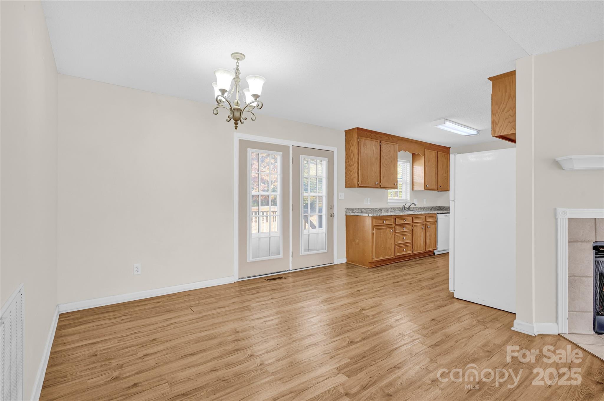 This 3BR, 2BA split-bedroom style ranch is located in a quiet neighborhood with NO HOA and its 0.29 acre lot backs up to a nice tree line; Relax on the large back deck in the mornings enjoying your coffee; From the newer laminate wood flooring to the gas logs fireplace in the living room to the formal laundry room, you will enjoy living here; The kitchen has wood cabinets, all appliances included and a double stainless steel sink that looks on to the deck and back yard; The dining area has a French door leading to the deck; Check out the high tray ceiling in the Primary Bedroom as well as the large walk-in closet and tubshower in the Primary Bathroom; BR2 and BR3 both have a ceiling lightfan and closet; Updated main bath with a tubshower; Architectural shingled roof; HVAC new April 2025; Dishwasher new in May 2025; Water heater new in May 2025; Refrigerator new in January 2025; The garage has painted sheetrock on the inside as well as a new garage door in 2019; This home is close to Highways 16, 10, 40 and 321 and is 20 minutes to Hickory and 45 minutes to Charlotte Douglas Airport;