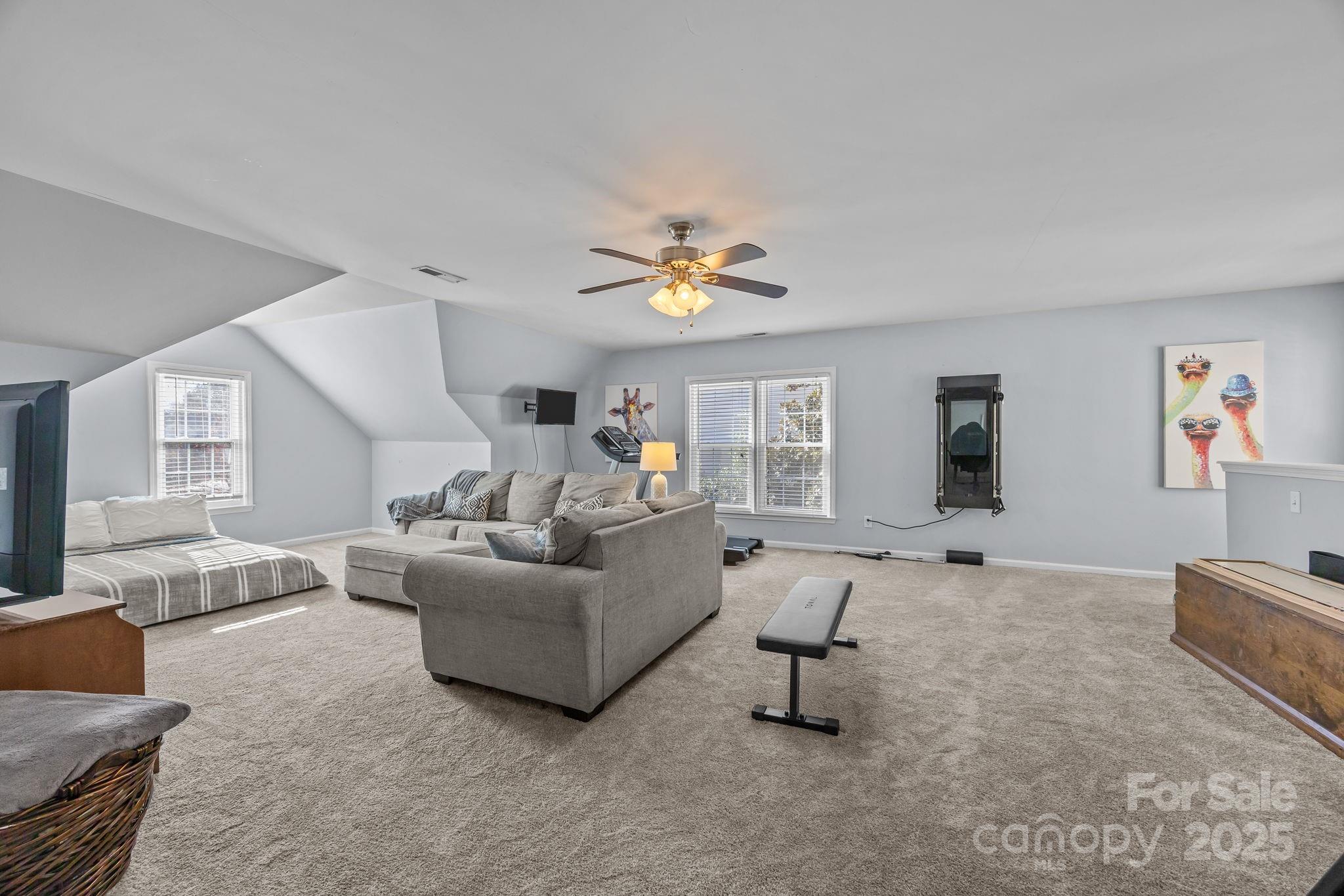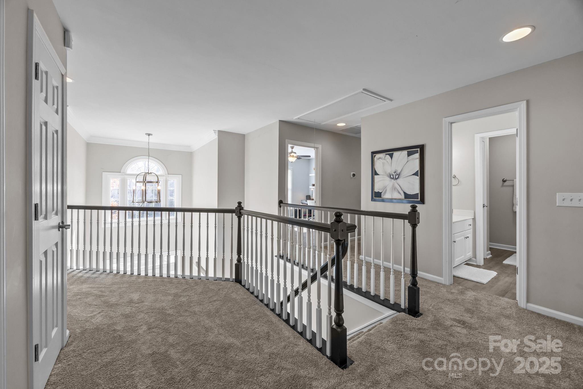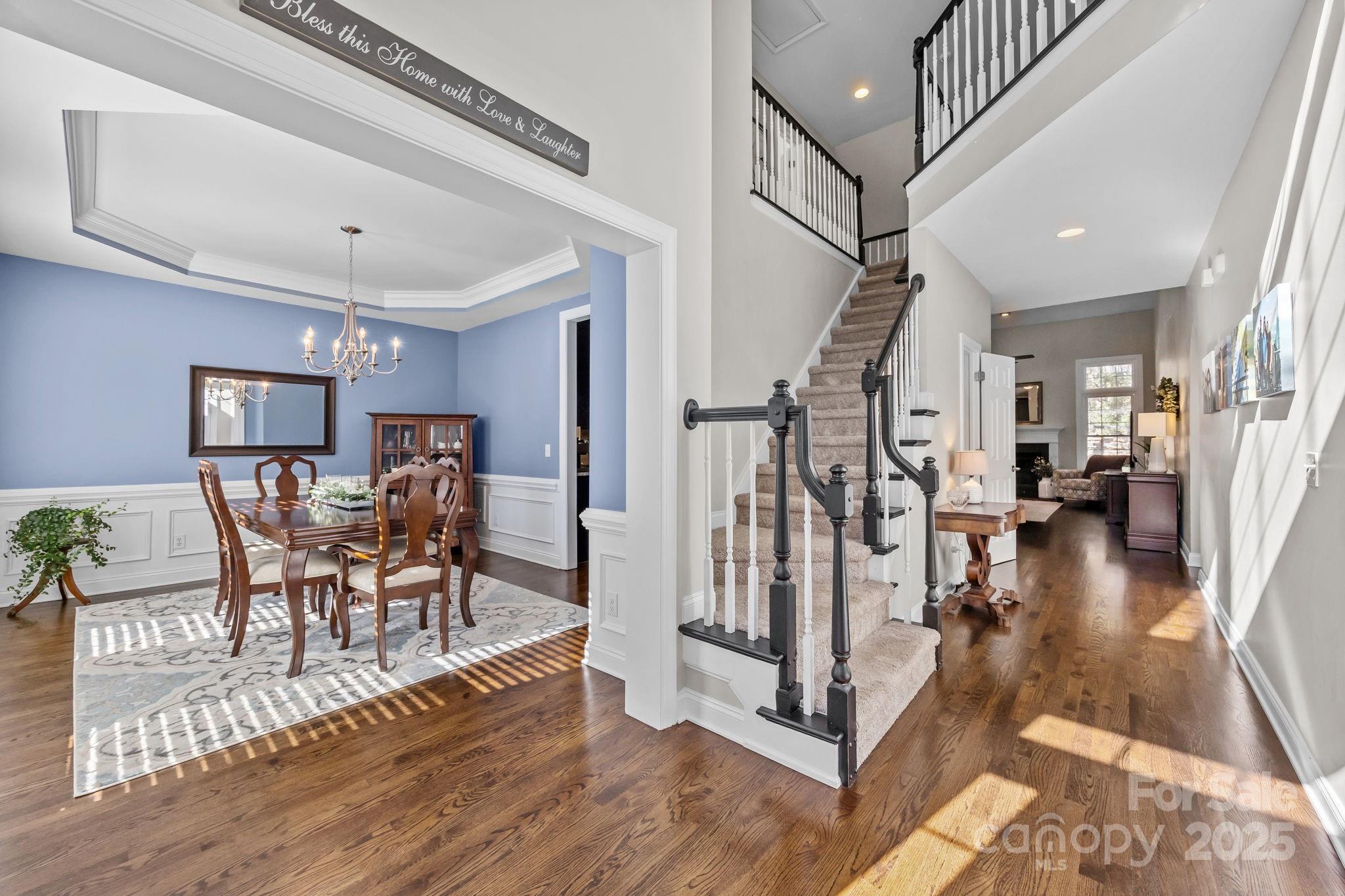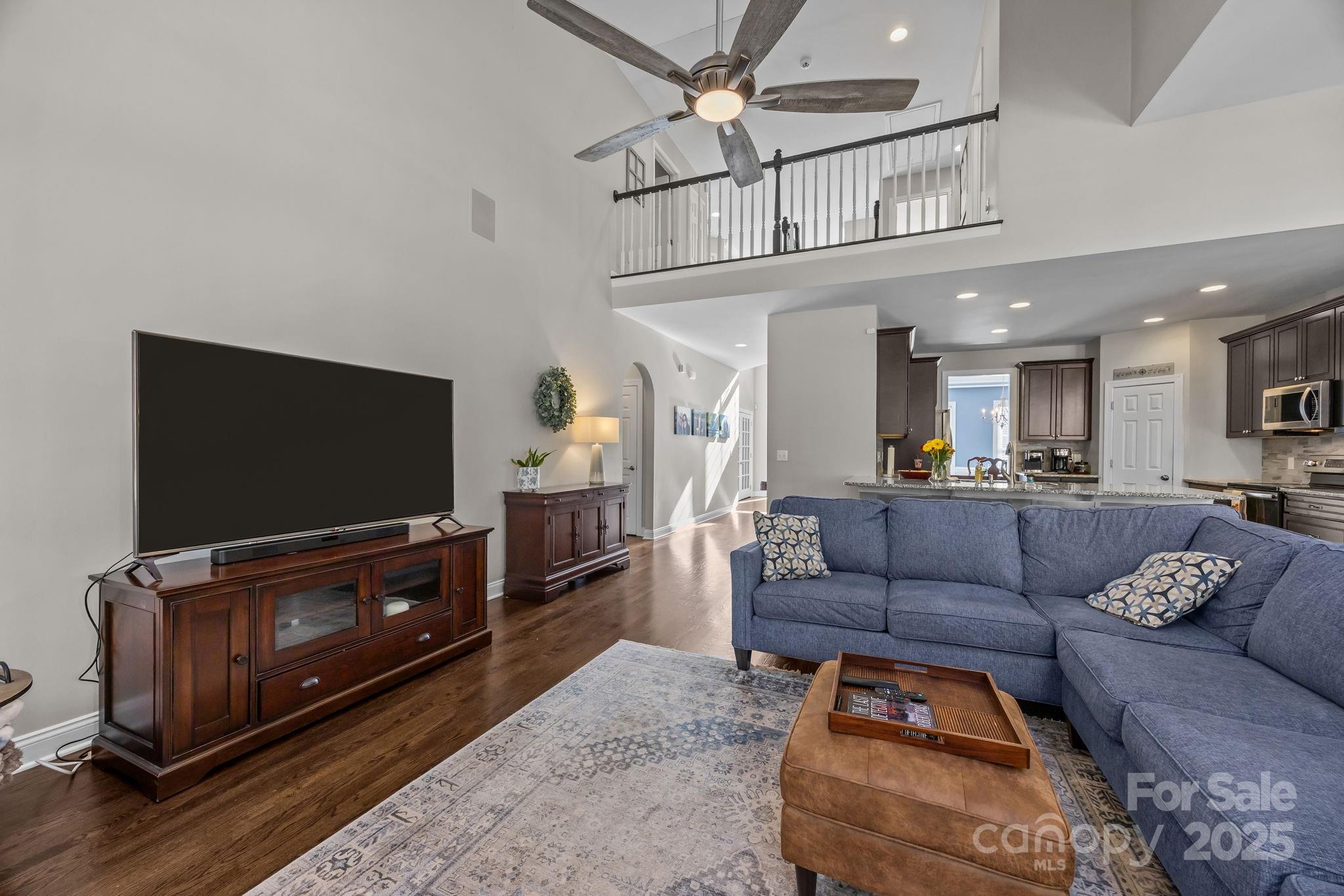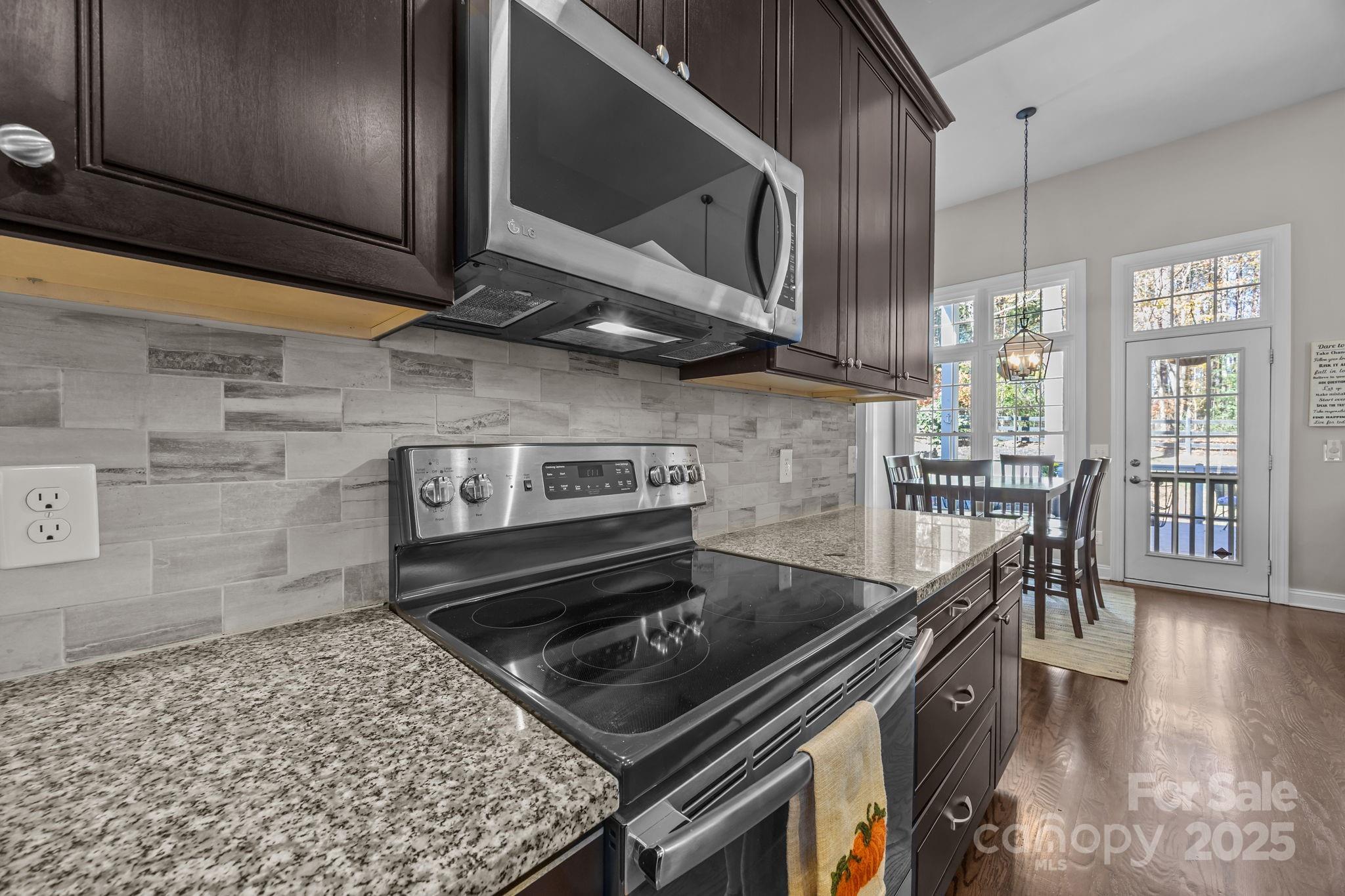 Stunning all-brick, five-bedroom home located on an oversized cul-de-sac lot in the highly desirable Ballantyne area. This prime location offers convenient access to shops, restaurants, and I-485. This spacious home features an open floor plan with elegant hardwood floors throughout the main living areas, including a dramatic two-story great room with abundant natural light from its skylights. The main-level primary ensuite offers a luxurious retreat with a jetted tub. A versatile fifth bedroom, which can also serve as a bonus room, boasts a large closet, flexible usage options, and a private staircase leading up from the main level. Outdoor living and entertaining are made easy with a beautiful pebble-tec in-ground pool and hot tub, complete with a soothing waterfall feature, alongside a spacious deck. The mature landscaping provides exceptional privacy and charm, enhancing this outdoor oasis. Additional highlights include a covered porch, an oversized garage with built-in shelving, a dedicated storage outbuilding, and a gas line ready for stove conversion. With a low HOA and exceptional curb appeal, the meticulously maintained yard and inviting exterior truly make this home a standout.