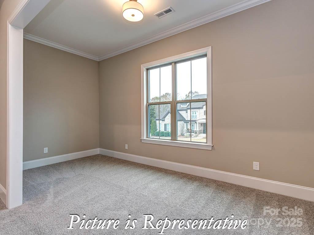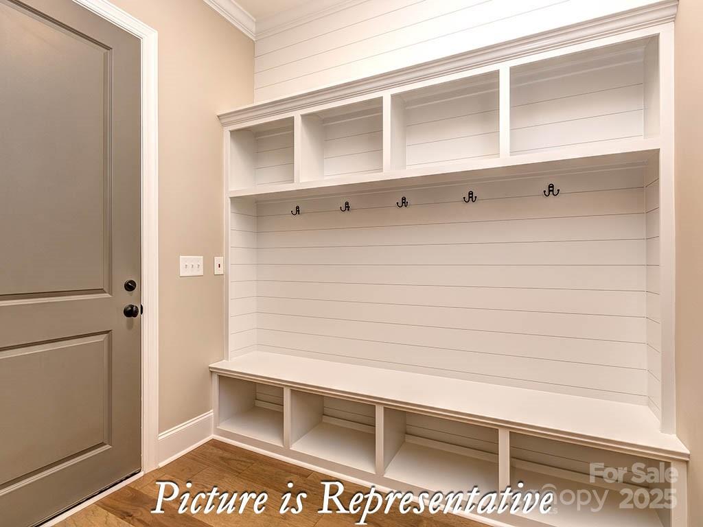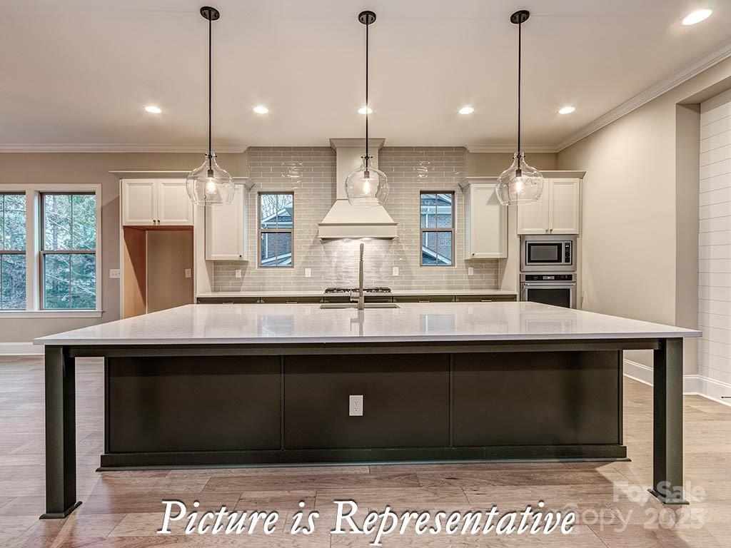 This gorgeous new home is situated on 0.6 acres at the end of a Lake Wylie cove perfect for launching a kayak. The home features 5 bedrooms, 4.5 baths, a spectacular open kitchen, upgraded cabinets and counter tops, large pantry with bar area, heavy trim, a large playroom with media room connected through barn doors, mud room with drop zone, and a covered deck to take in views of beautiful hardwoods and a creek behind the home. Handsmill on Lake Wylie is one of Lake Wylie's premier gated communities, featuring a quiet atmosphere, a community pool, clubhouse, fitness & recreation areas, walking trails, boat storage & slips for lease. Also, just minutes from top rated Clover schools, restaurants, and shopping. The home will be complete in March of 2026.