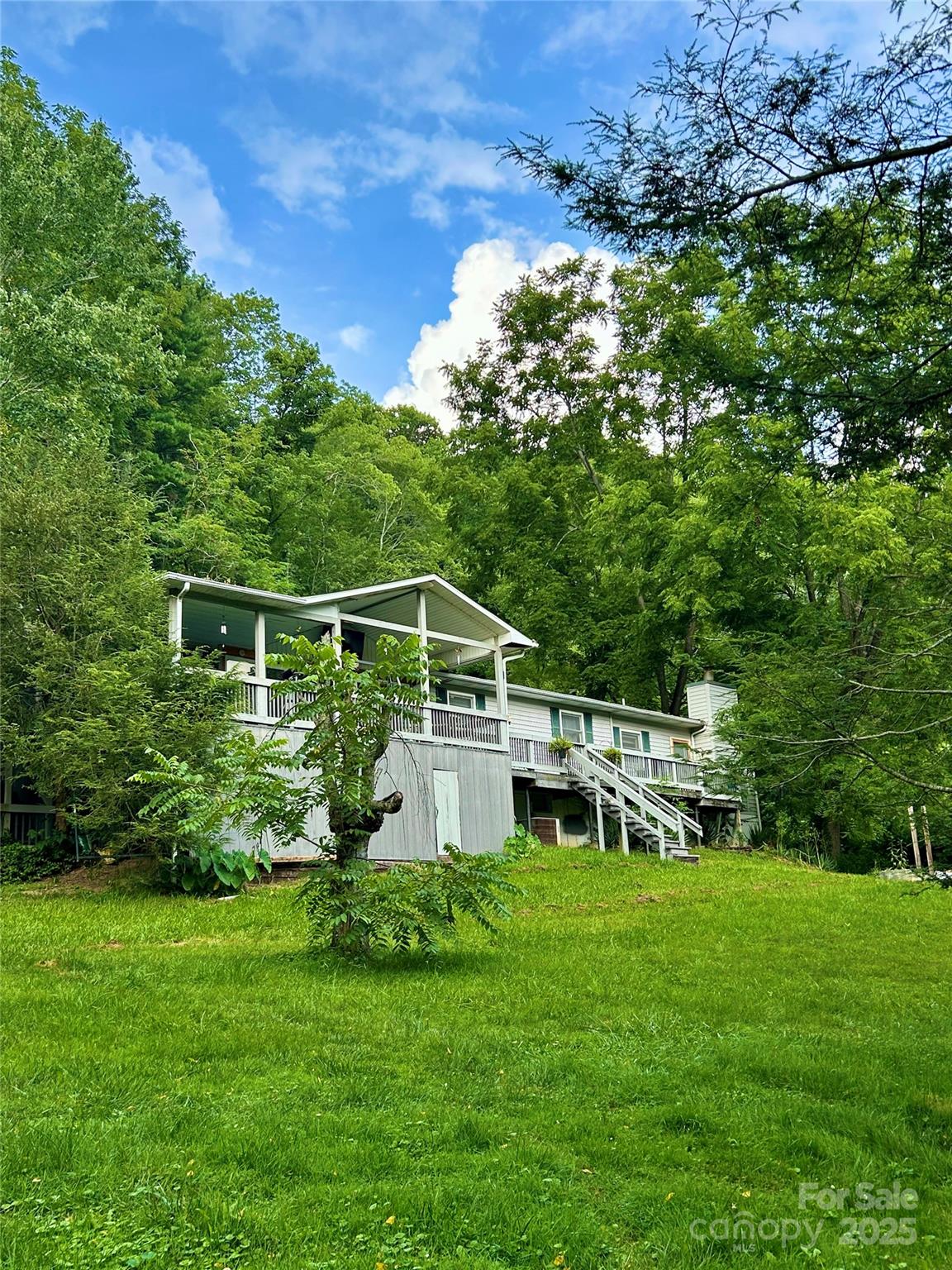 Great Investment Opportunity in the Heart of Maggie Valley! This handyman's special offers over 1,600 sq ft of living space, 3 bedrooms, and 3 baths with a spacious open floor plan. Central heat and air provide year-round comfort. Two fireplaces, one in the living area and the other in the primary bedroom. Large primary bedroom w/ ensuite. Enjoy the beautiful mountain setting from the wraparound covered deck, or hangout in the large backyard w/ fire pit. Additional highlights include a large attached carport, semi-circular drive, and unbeatable location—just a short walk or golf cart ride to the Maggie Valley Country Club and golf course. Close to shops, dining, and all the outdoor attractions the Smoky Mountains have to offer. This home needs some TLC and is being sold "As Is", making it a prime opportunity to renovate and add value. Whether you're looking for a weekend getaway or a rental opportunity, this property has endless possibilities. The foreclosure process has been initiated, contact listing agent for details.