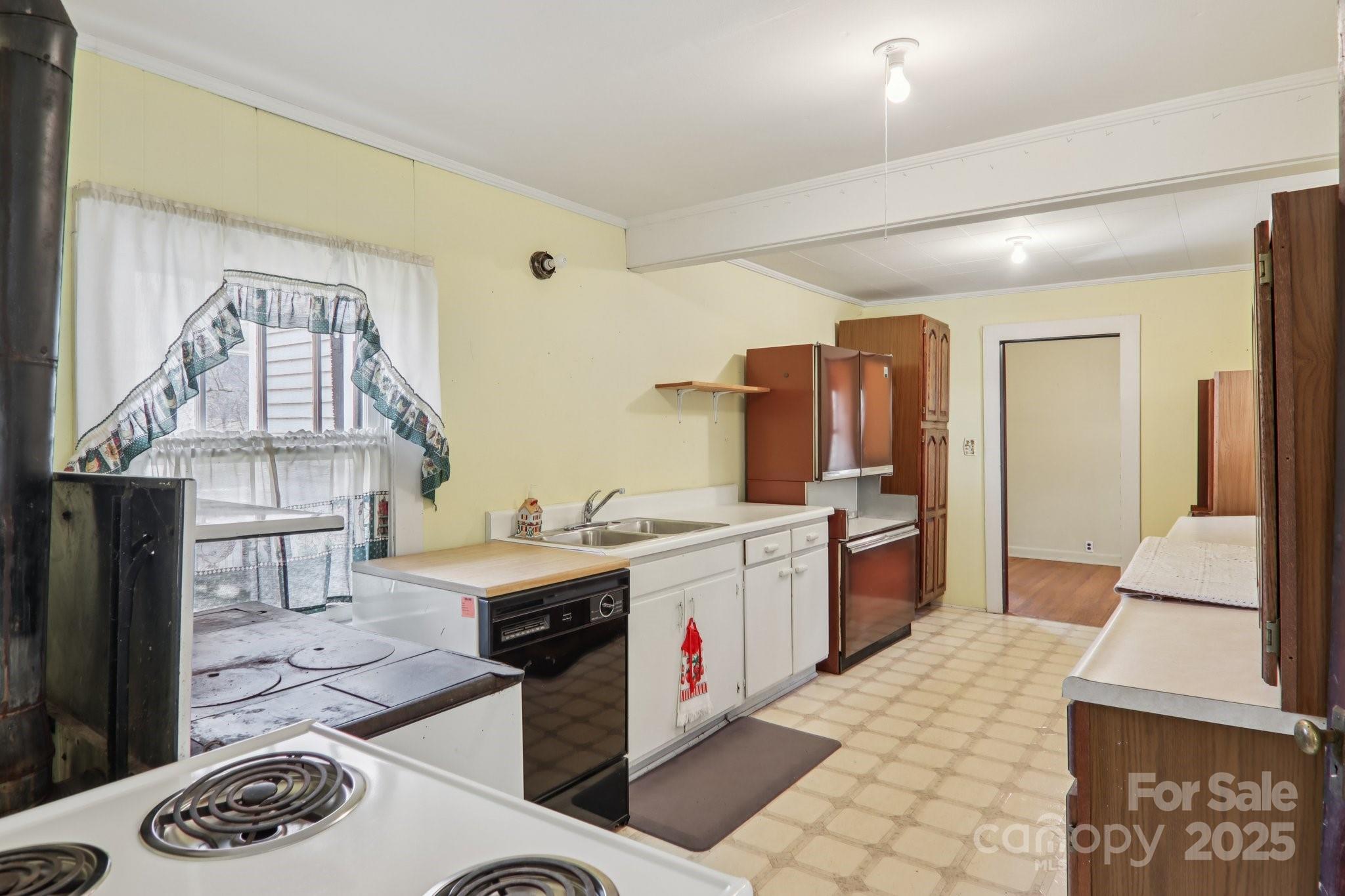 Once a working farm, this property is an incredible opportunity to build your dream homestead. A charming centennial farmhouse, with a porch that spans the whole front of the house, awaits your upgrades and personal touches. Enjoy a cool breeze, while listening to the sounds of a babbling creek and taking in views of the beautiful Plott Balsam Mountains. Hardwood floors are found throughout most of the home, and an original wood burning stove is the heart of the kitchen. Leave it for character, or renovate and make it your dream kitchen. With a little bit of love, this house could be cozy and sweet. Third bedroom does not have a closet, and is a pass through to the kitchen. It could be used as an office or dining room as well. Monitor heater is primary source of heat. Old fireplace has been sealed. Generous stand-up storage space under the house and an enclosed porch/sunroom is just off the back of the home. The 6.96 acres it sits on has a large length of road footage, with a creek that runs the length of the property. A generally flat field to the right side of the home would make a great place for grazing livestock or planting/gardening. With a gentle incline to the top of a ridge, this property could also be developed with several more potential home sites. This property is being sold as is, but is priced to sell!