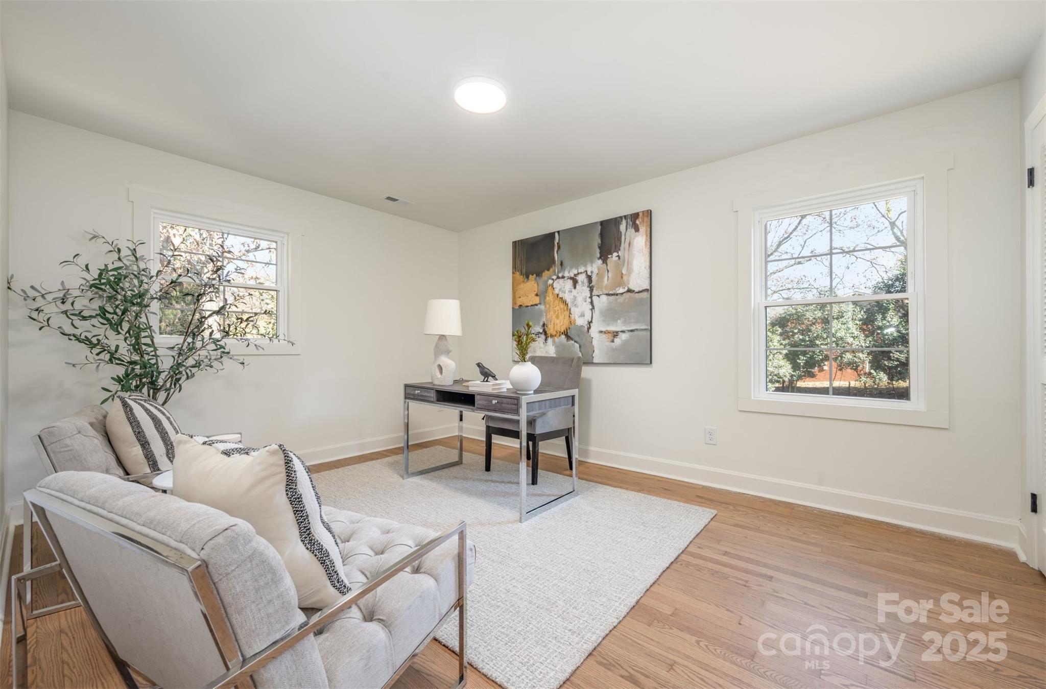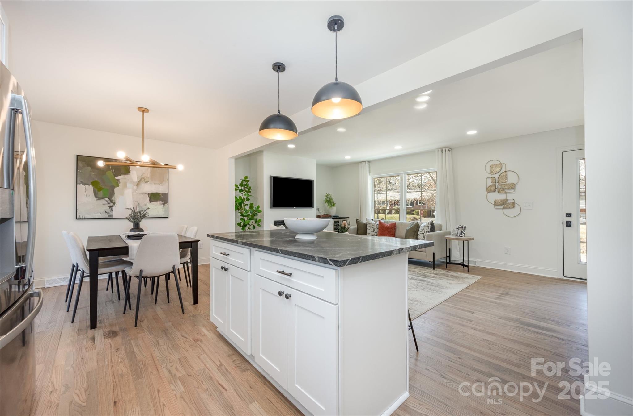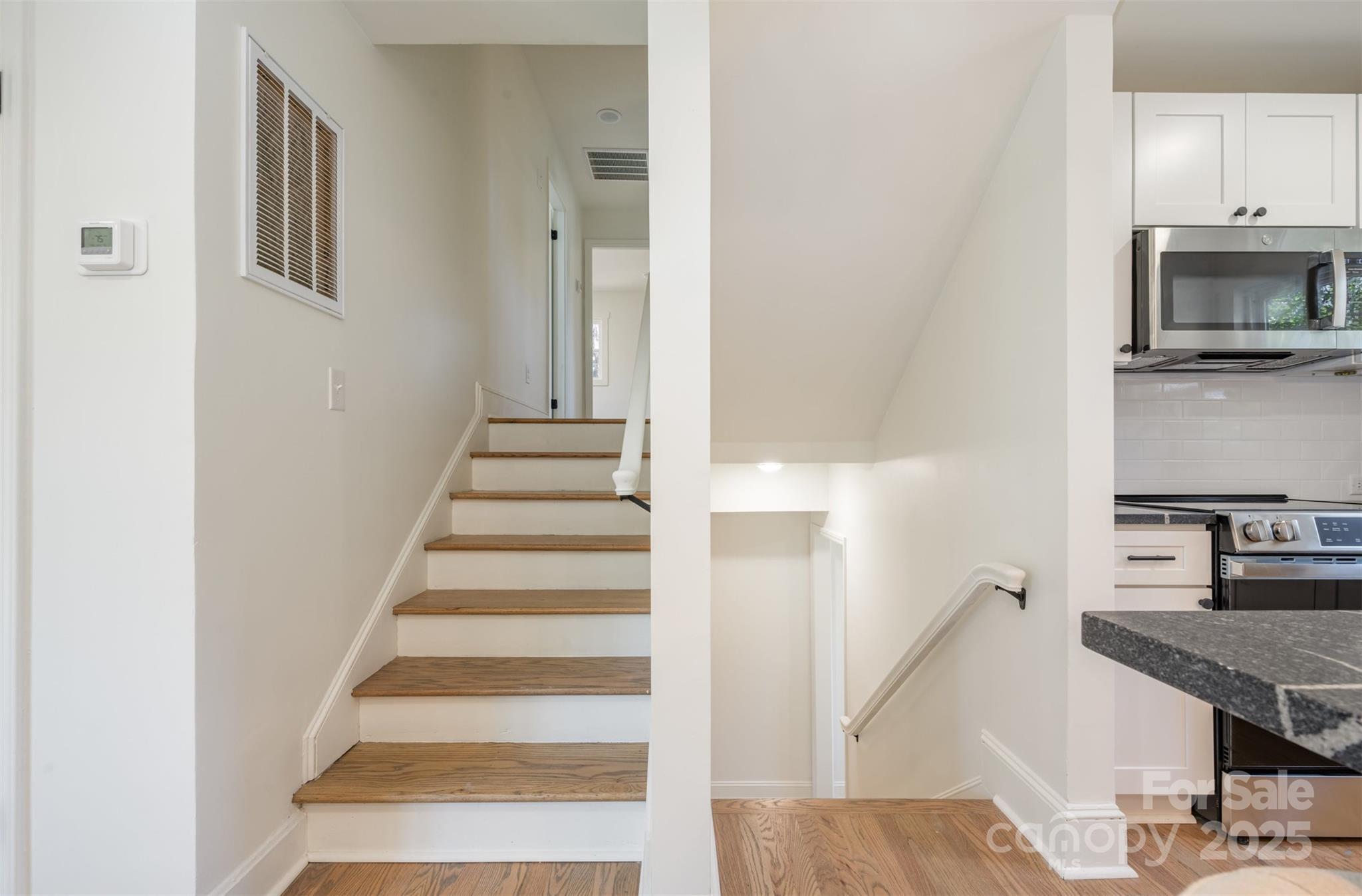 Welcome to this beautifully renovated split-level home in the Starmount neighborhood. The main floor features a thoughtfully redesigned kitchen, living and dining space complete with fireplace and quartz countertops. The upper level features three bedrooms and a full bath. The home boasts an additional level for the primary suite, making this split level four floors total. The primary suite makes a great getaway, complete with two large walk in closets, and a reimagined primary bathroom with soaking tub. Hardwood floors throughout main, upper and third floor. The lower level features a den and fully renovated bedroom, full bath and laundry room. The home is situated on a large corner lot just minutes from SouthPark, Park Road Park, Little Sugar Creek Greenway. Welcome home!