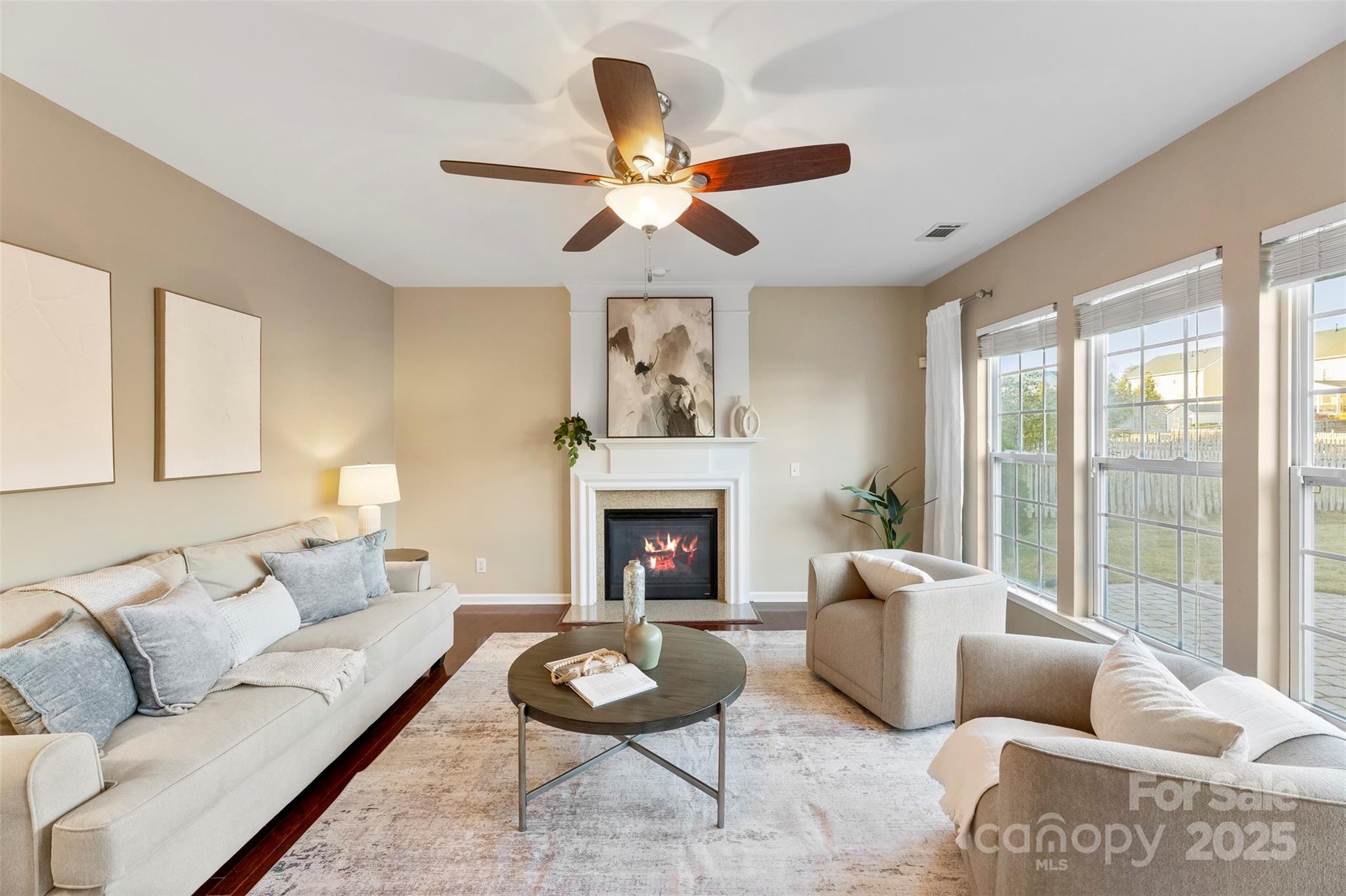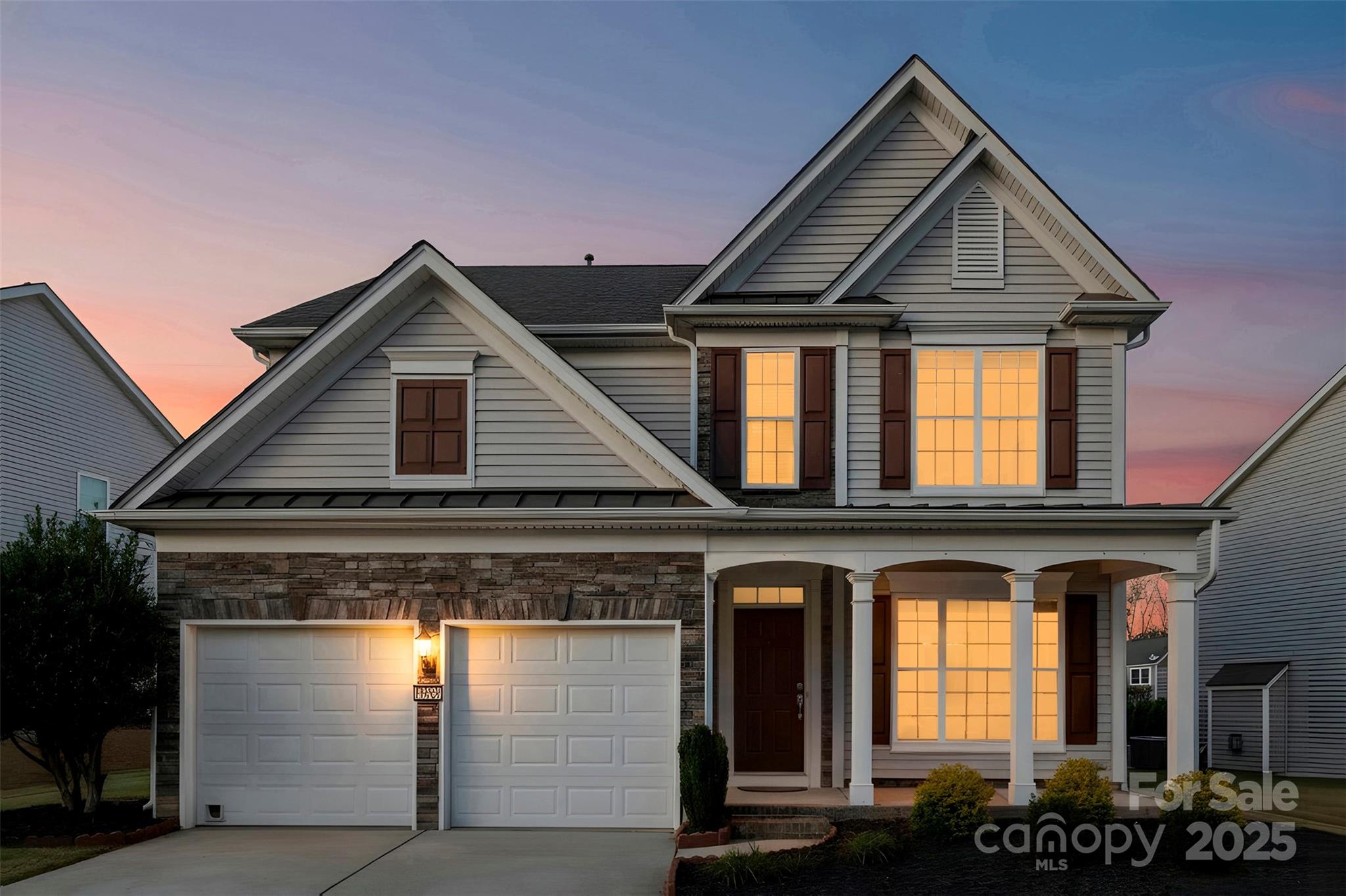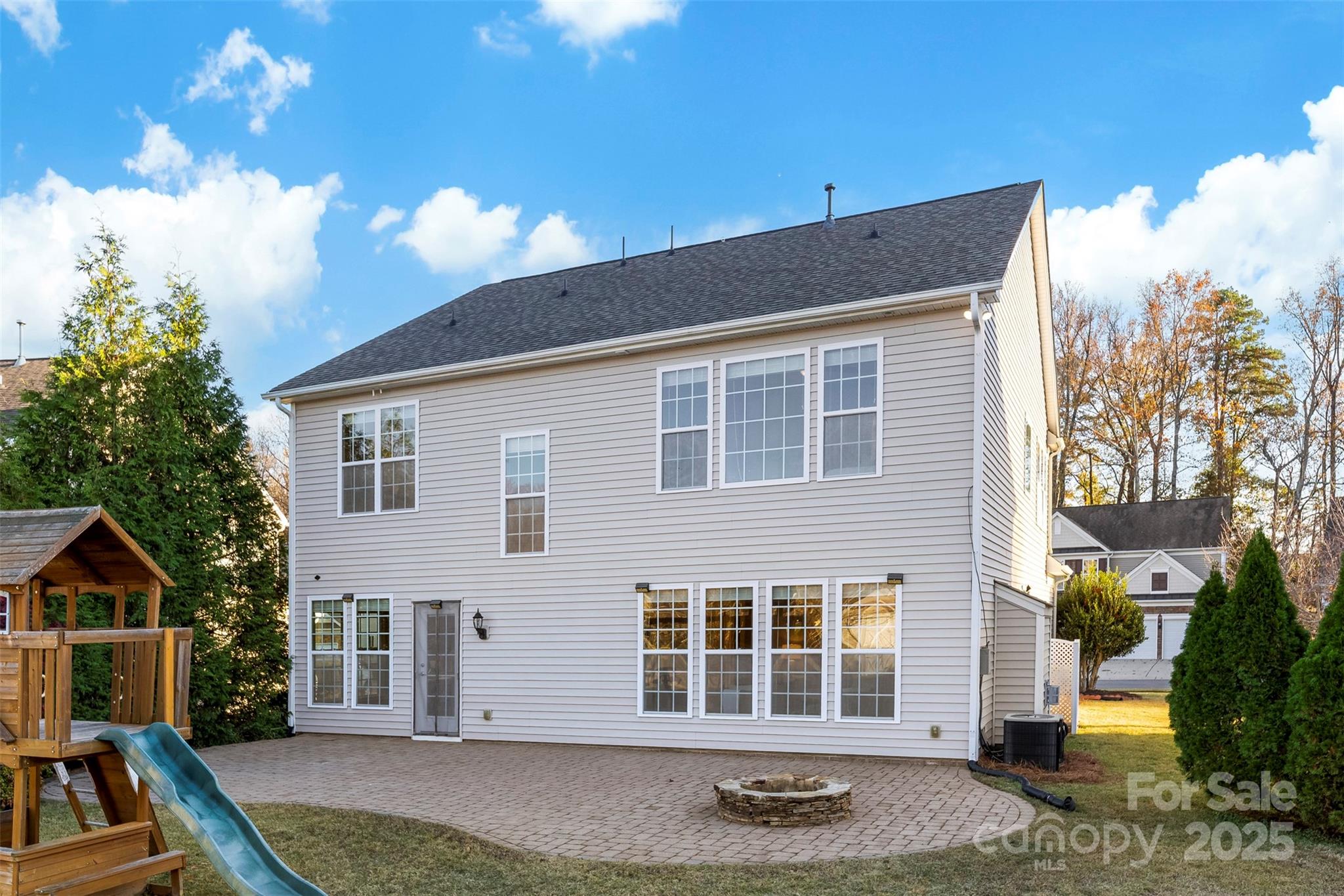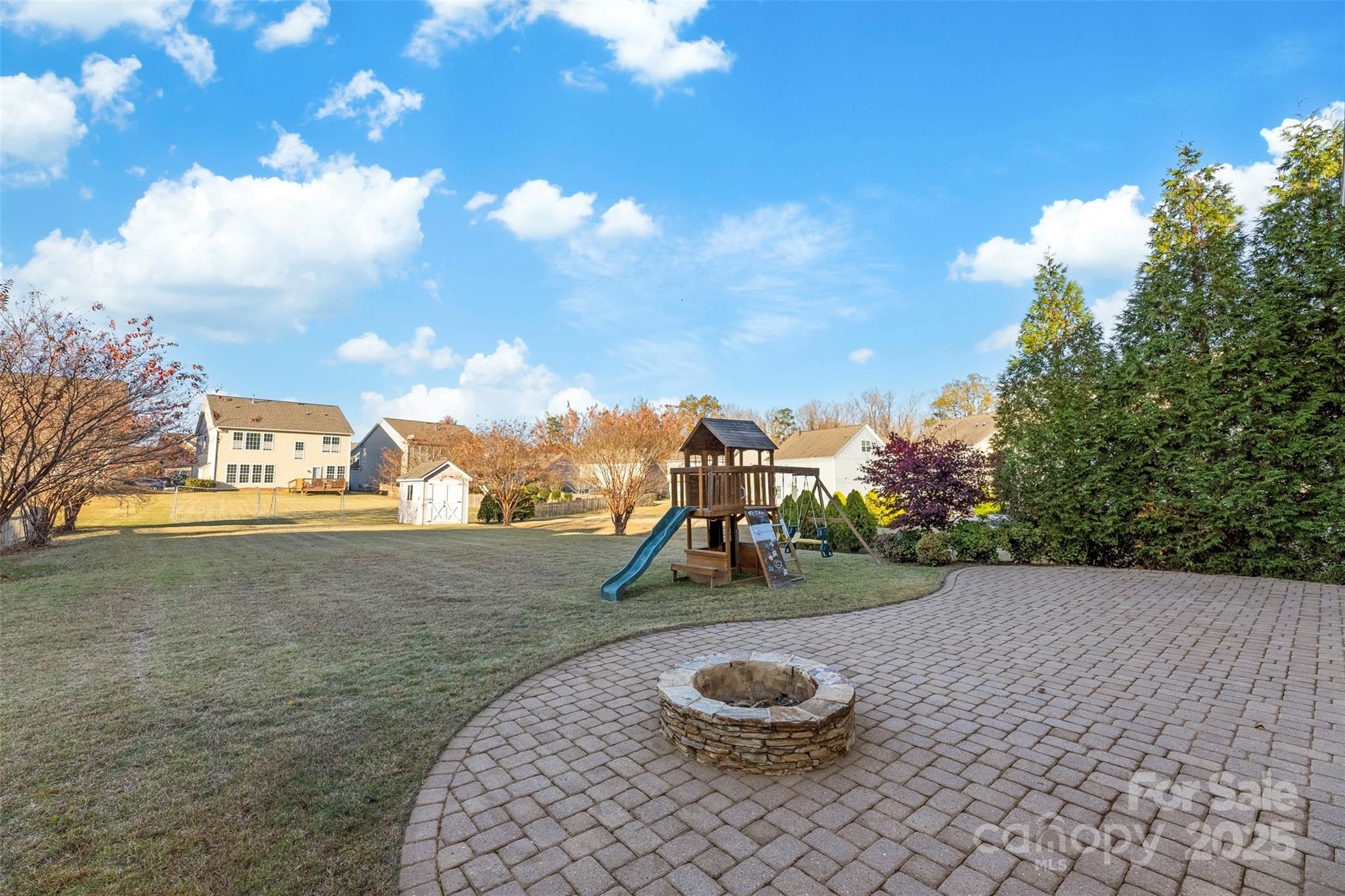 This isn’t just a house. It’s the kind of home that greets you with a deep breath of calm and a spark of excitement every time you walk through the door. Tucked in the heart of the Villages at Skybrook North, this 4-bedroom, 2.5-bath showstopper is full of thoughtful details and effortless charm. A covered front porch sets the tone for slow Sunday mornings. Step inside to find sunlit spaces, hardwood floors, and a layout that just flows. Host with style in the formal dining room wrapped in wainscoting and crowned with a tray ceiling. The heart of the home? A wide-open family room that invites everyone to gather around the gas log fireplace, seamlessly connected to an oversized kitchen made for living—think stainless steel appliances, gas range, microwave, breakfast bar, and a convenient built-in desk that keeps life organized but never in the way. Upstairs, your primary suite feels like a breath of fresh air—spacious, serene, and complete with a tray ceiling, dual vanities, soaking tub, separate shower, and a generous walk-in closet. The upstairs laundry adds an easy rhythm to daily life. Step outside, and the magic continues. This home sits on one of the largest lots in the neighborhood, with a brick paver patio, outdoor fire pit, and a custom-built storage shed that’s as practical as it is charming. The flat backyard is ready for summer barbecues, cozy nights by the fire, or a good old-fashioned game of catch. All this, within top-rated Cabarrus County Schools, just minutes from I-85, I-485, I-77, and all the best dining and shopping around.