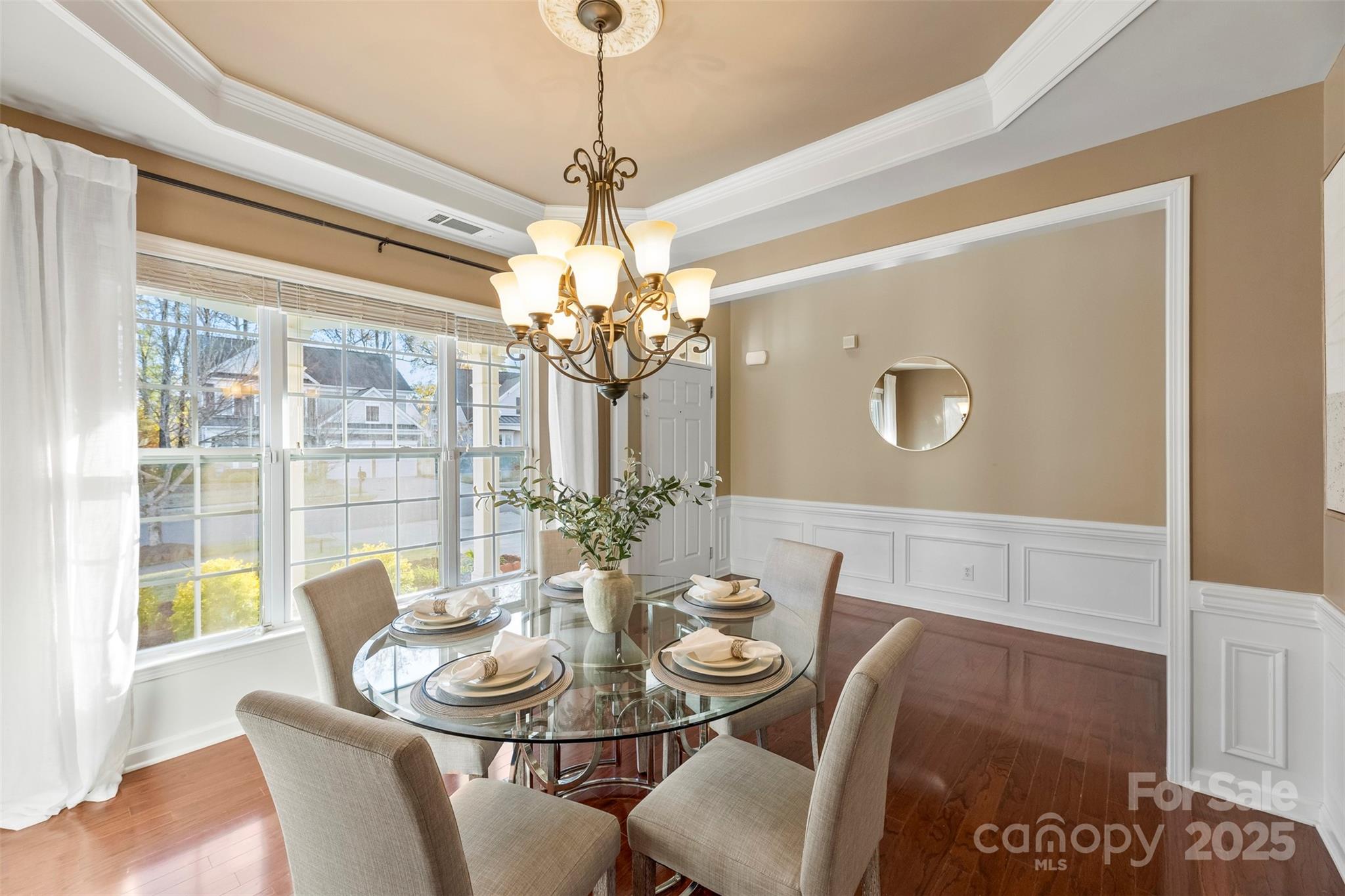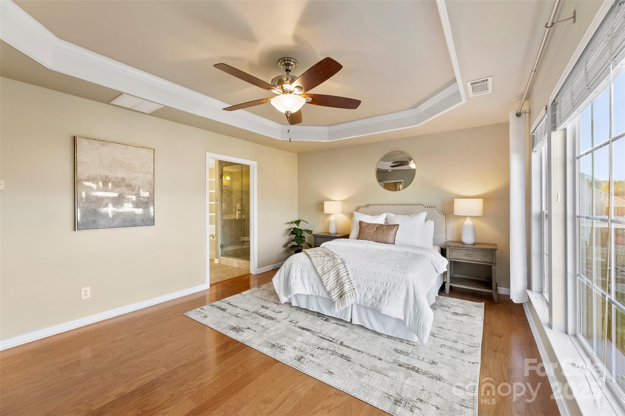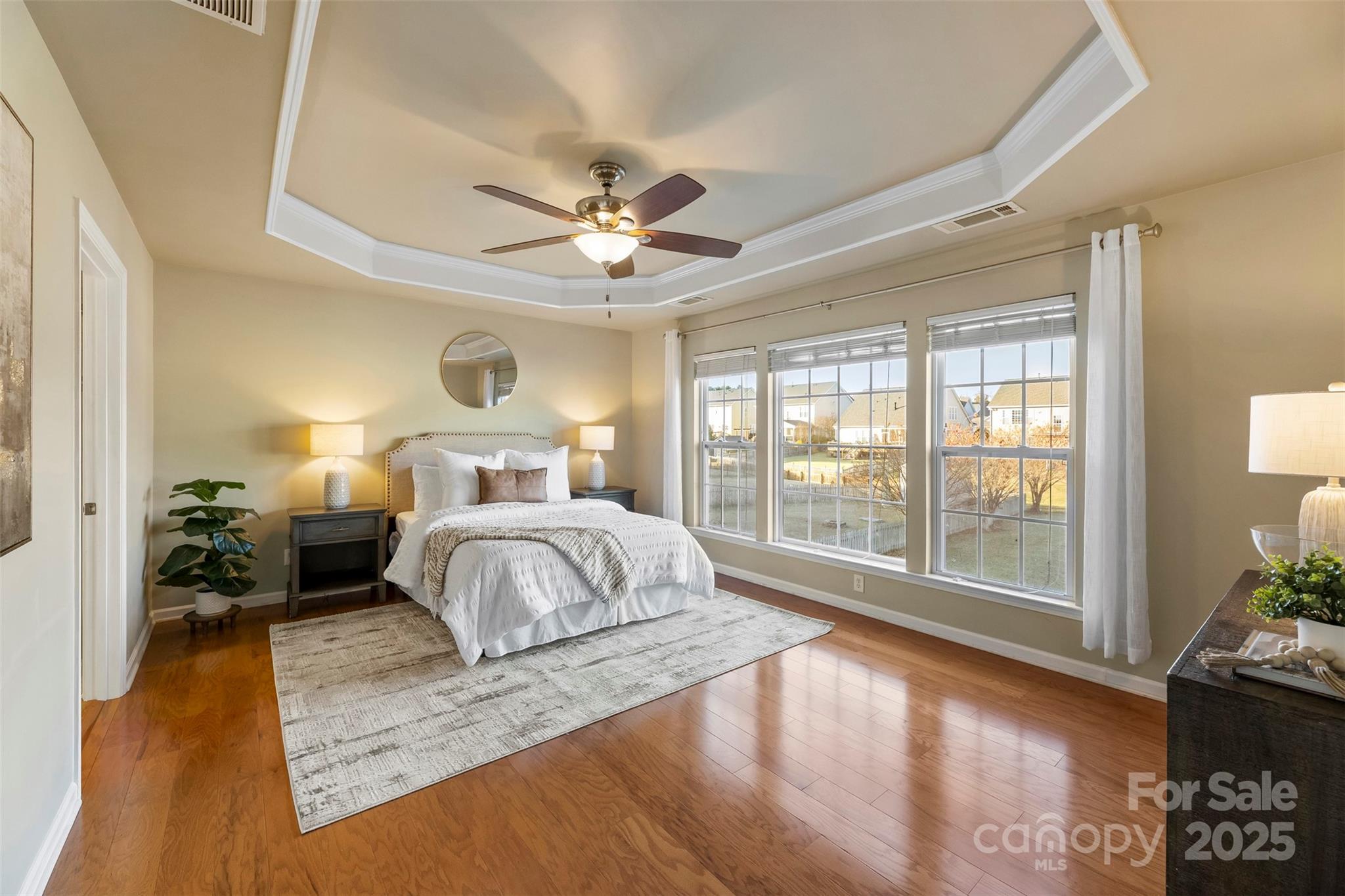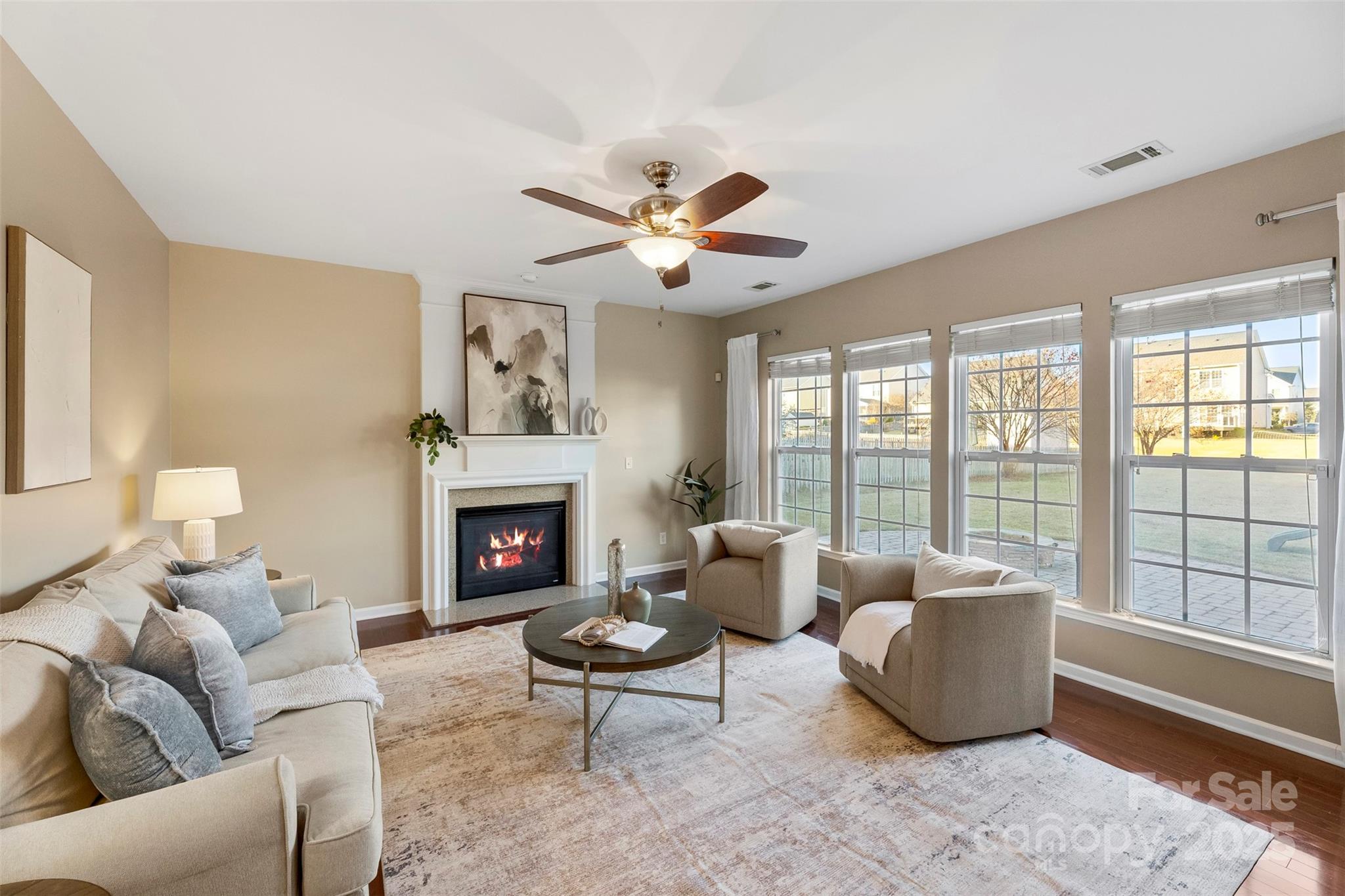 This isn’t just a house. It’s the kind of home that greets you with a deep breath of calm and a spark of excitement every time you walk through the door. Tucked in the heart of the Villages at Skybrook North, this 4-bedroom, 2.5-bath showstopper is full of thoughtful details and effortless charm. A covered front porch sets the tone for slow Sunday mornings. Step inside to find sunlit spaces, hardwood floors, and a layout that just flows. Host with style in the formal dining room wrapped in wainscoting and crowned with a tray ceiling. The heart of the home? A wide-open family room that invites everyone to gather around the gas log fireplace, seamlessly connected to an oversized kitchen made for living—think stainless steel appliances, gas range, microwave, breakfast bar, and a convenient built-in desk that keeps life organized but never in the way. Upstairs, your primary suite feels like a breath of fresh air—spacious, serene, and complete with a tray ceiling, dual vanities, soaking tub, separate shower, and a generous walk-in closet. The upstairs laundry adds an easy rhythm to daily life. Step outside, and the magic continues. This home sits on one of the largest lots in the neighborhood, with a brick paver patio, outdoor fire pit, and a custom-built storage shed that’s as practical as it is charming. The flat backyard is ready for summer barbecues, cozy nights by the fire, or a good old-fashioned game of catch. All this, within top-rated Cabarrus County Schools, just minutes from I-85, I-485, I-77, and all the best dining and shopping around.