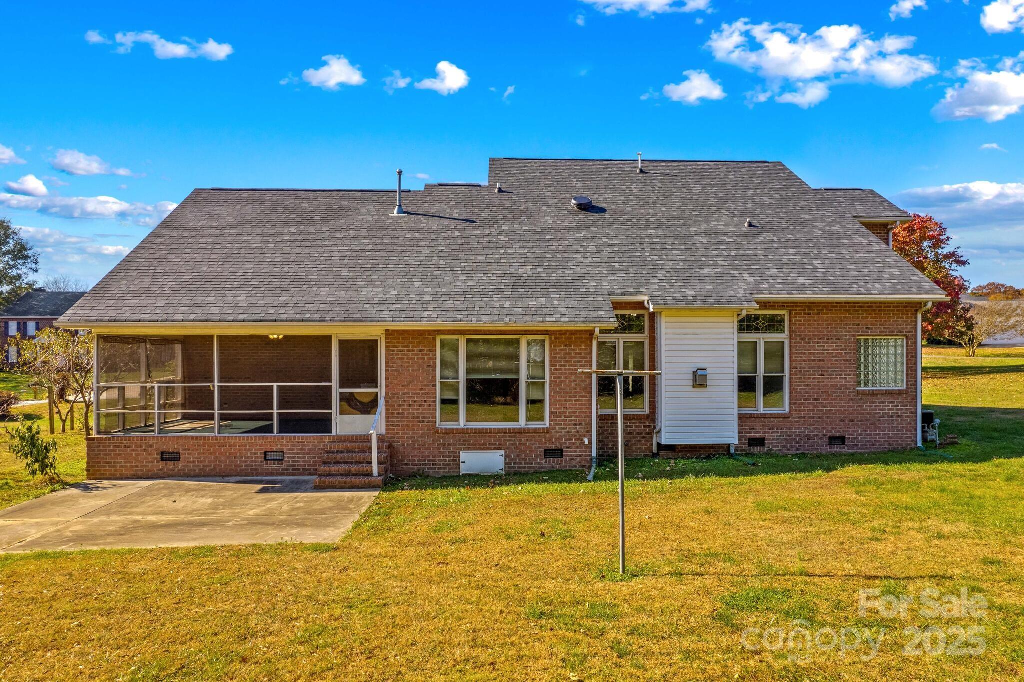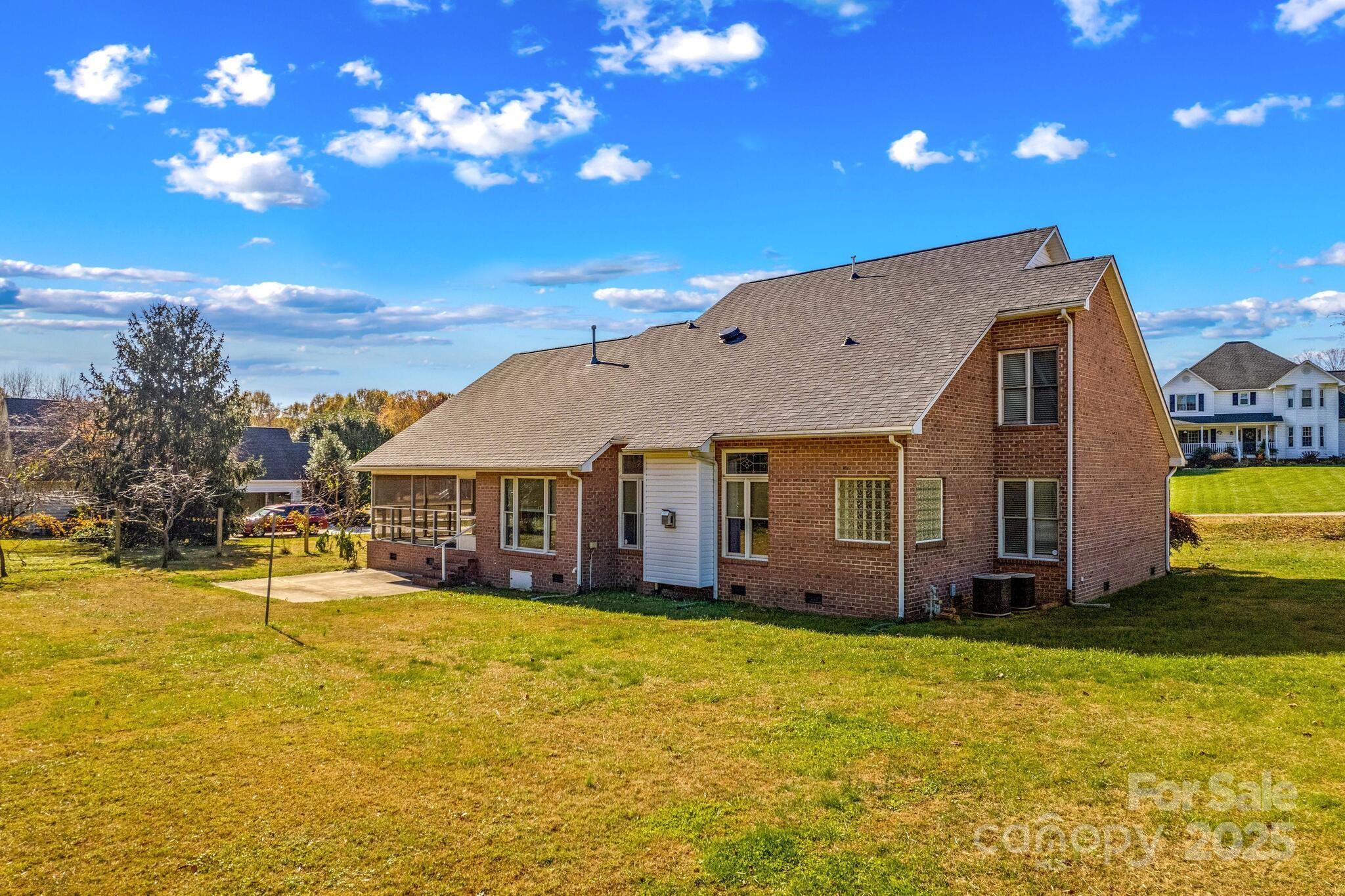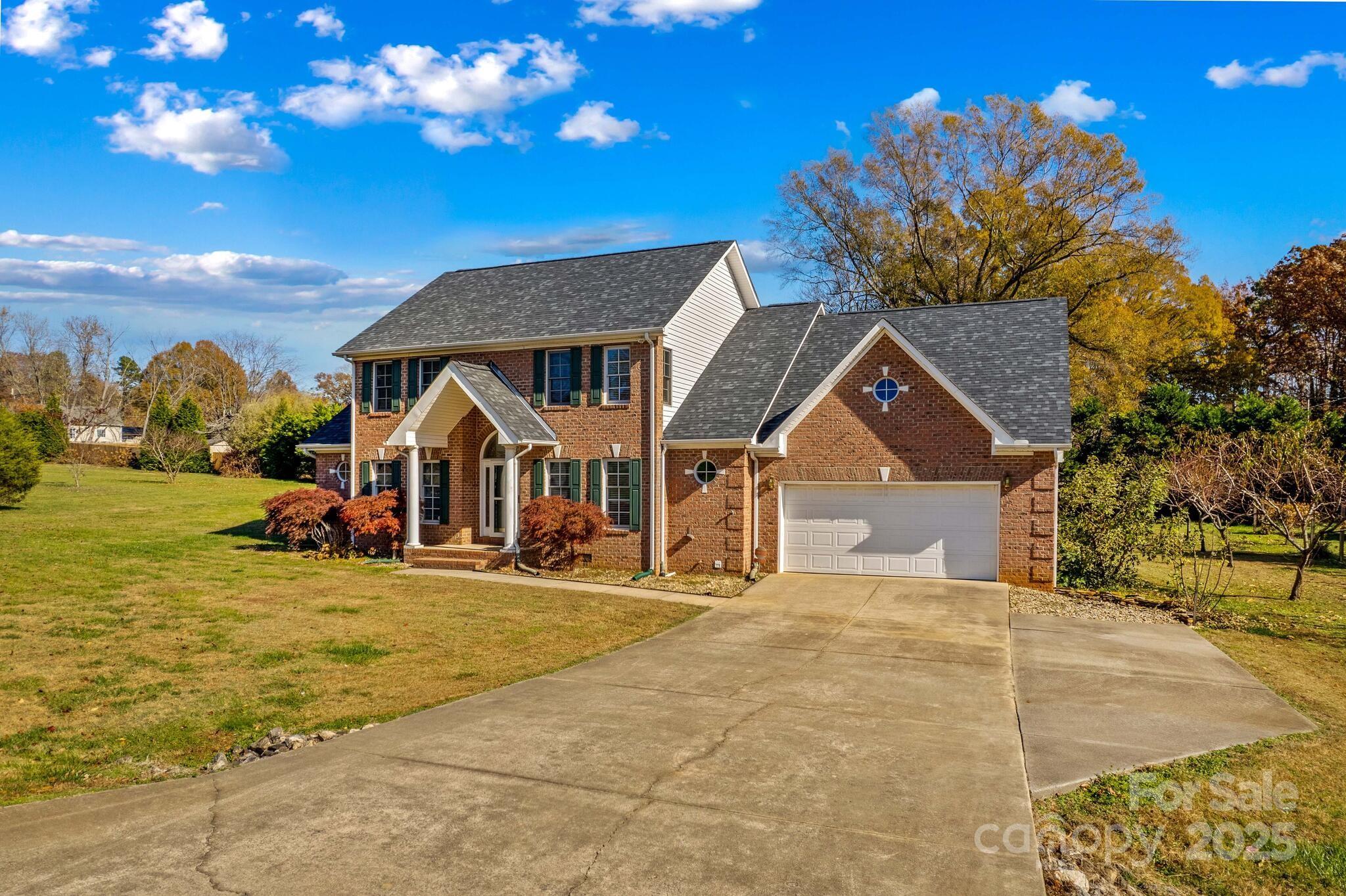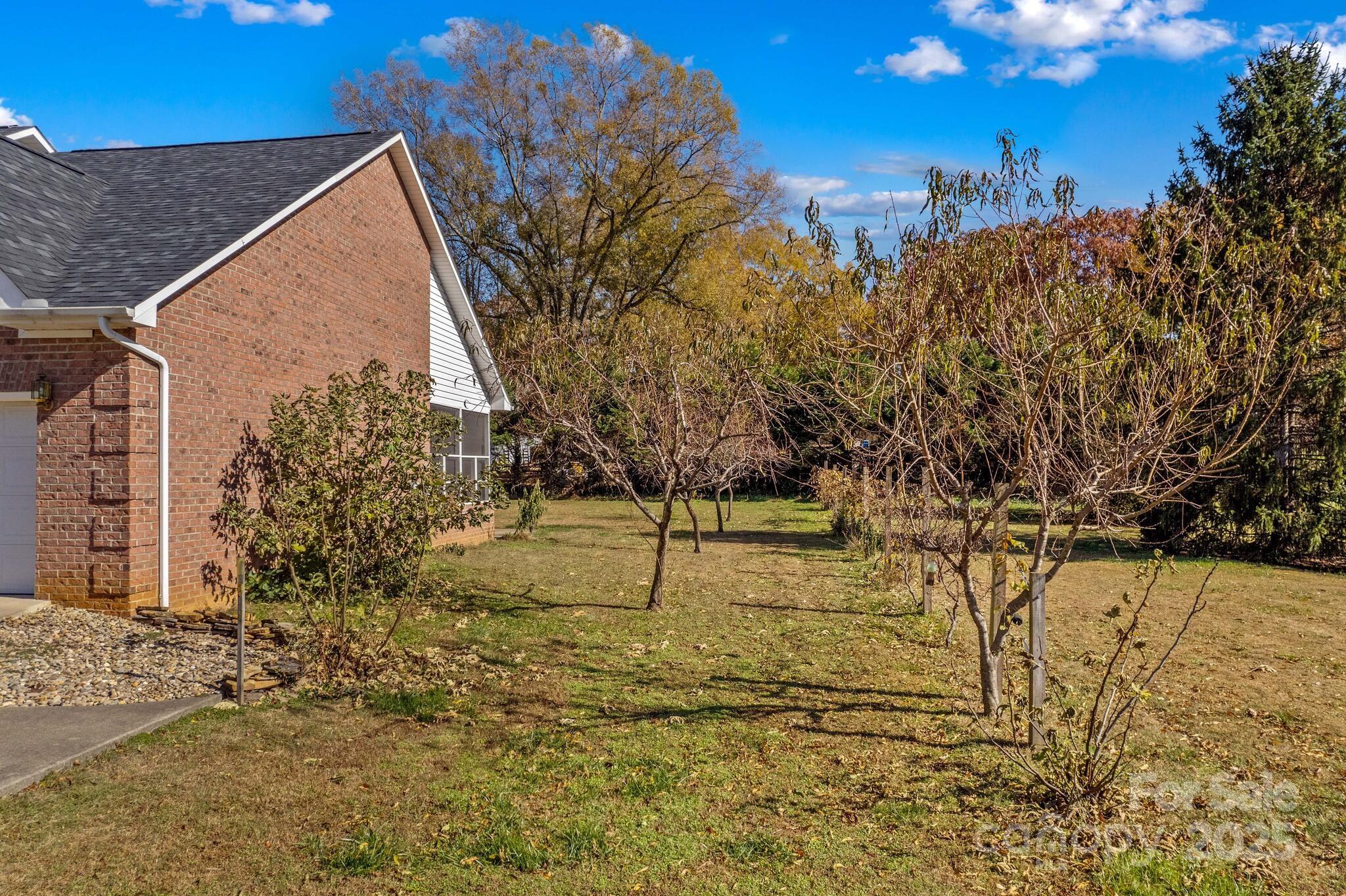Full Brick home in quiet, desirable neighborhood with no HOA, natural lighting, great floorplan, moldings and hardwood floors through out most of main level, large kitchen with granite countertops, White cabinets, gas range, breakfast bar & center island with attached breakfast room. Large screened porch/patio overlooking private yard with mature grape vines, peach trees, fig tree and peppers. Great room with gas logs/blower, Dining room, Primary bedroom on main with large walk in closet, sitting room ideal for office or exercise room, bathroom has duel sinks, separate shower and garden tub. Laundry room with sink. upstairs 3 additional bedrooms and full bath. Large attic storage walk in & more storage garage pull down. two car garage. conveniently located near I-40 and I-77 ,shopping, dining and golf courses. You will enjoy entertaining as well as everyday living in this beautiful home. This home is a value and priced to sell. Room for a pool. A must see that won't last!