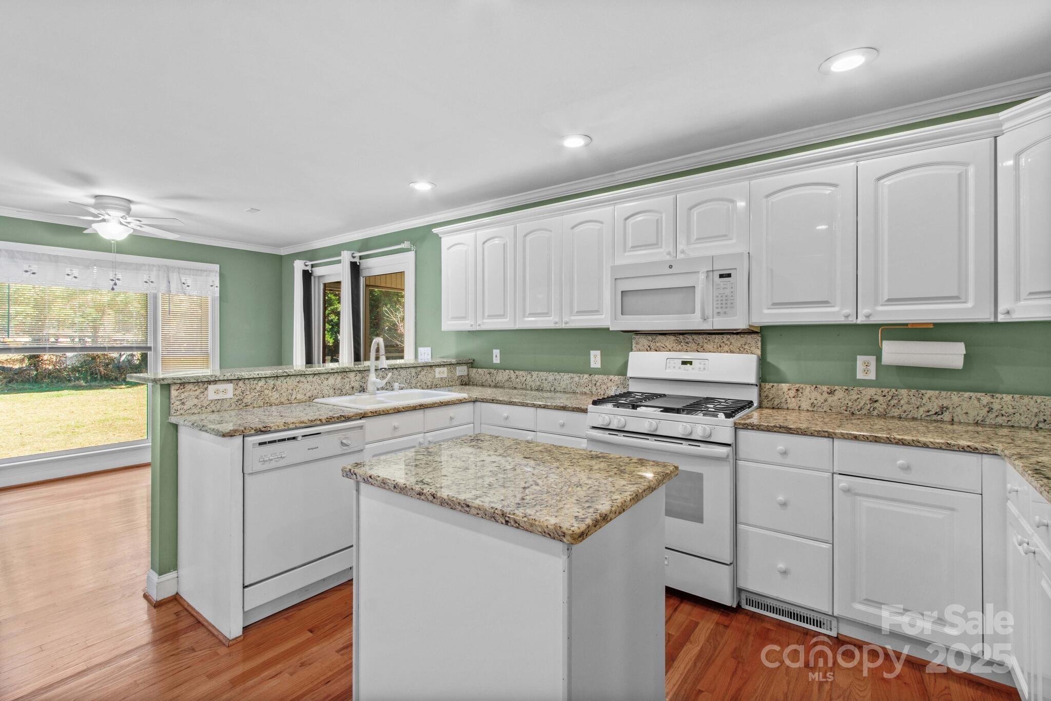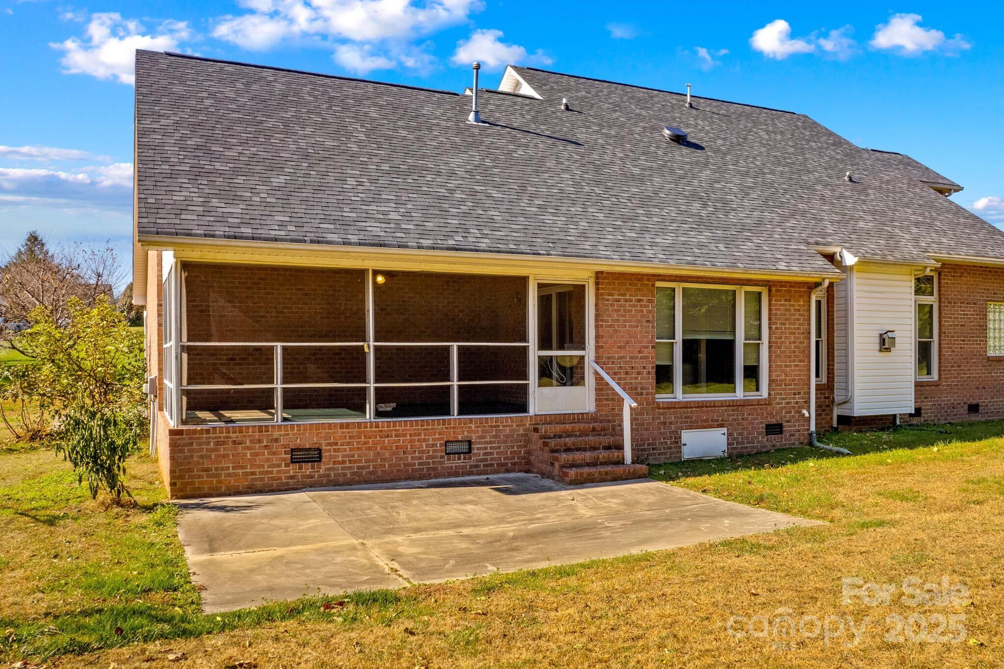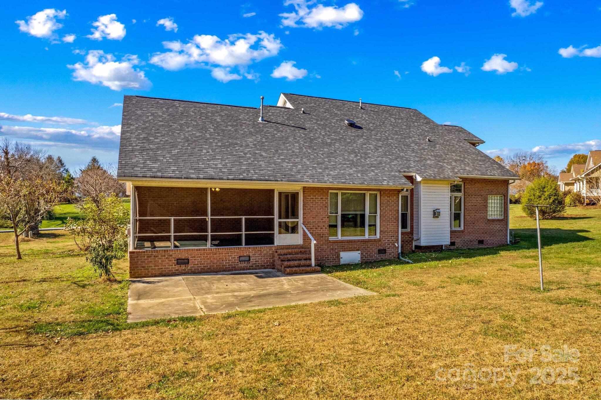 Full Brick home in quiet, desirable neighborhood with no HOA, natural lighting, great floorplan, moldings and hardwood floors through out most of main level, large kitchen with granite countertops, White cabinets, gas range, breakfast bar & center island with attached breakfast room. Large screened porch/patio overlooking private yard with mature grape vines, peach trees, fig tree and peppers. Great room with gas logs/blower, Dining room, Primary bedroom on main with large walk in closet, sitting room ideal for office or exercise room, bathroom has duel sinks, separate shower and garden tub. Laundry room with sink. upstairs 3 additional bedrooms and full bath. Large attic storage walk in & more storage garage pull down. two car garage. conveniently located near I-40 and I-77 ,shopping, dining and golf courses. You will enjoy entertaining as well as everyday living in this beautiful home. This home is a value and priced to sell. Room for a pool. A must see that won't last!