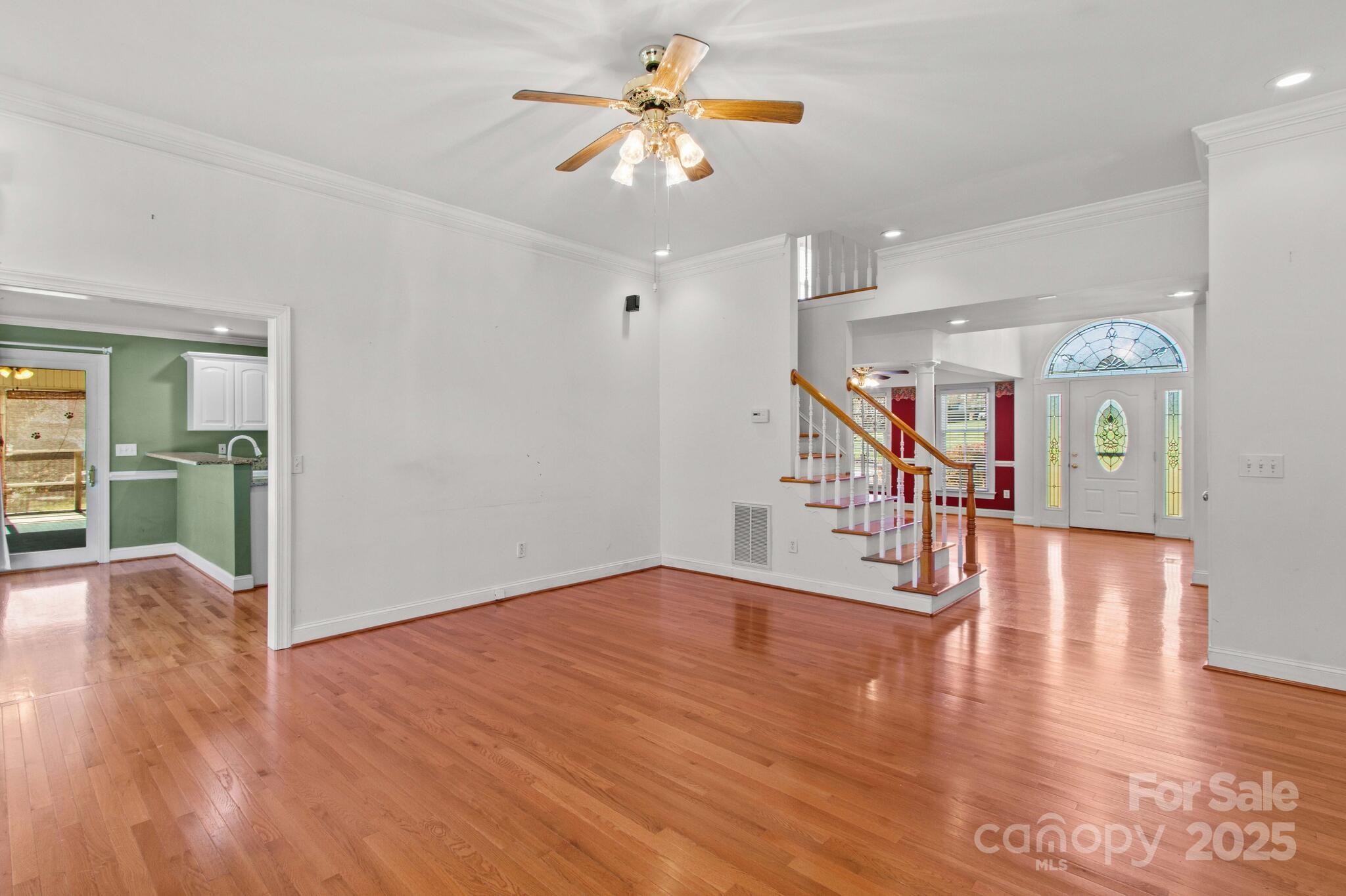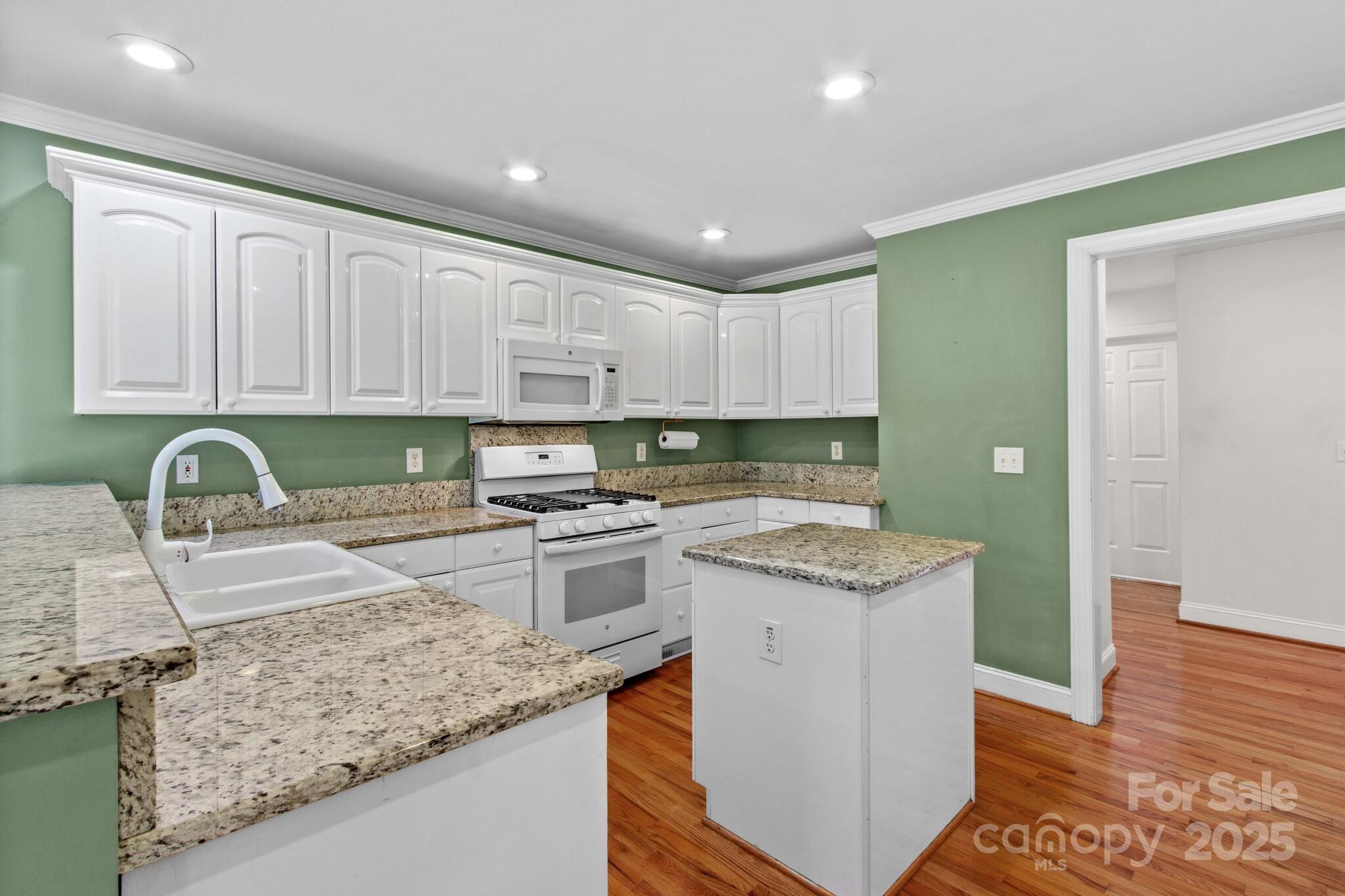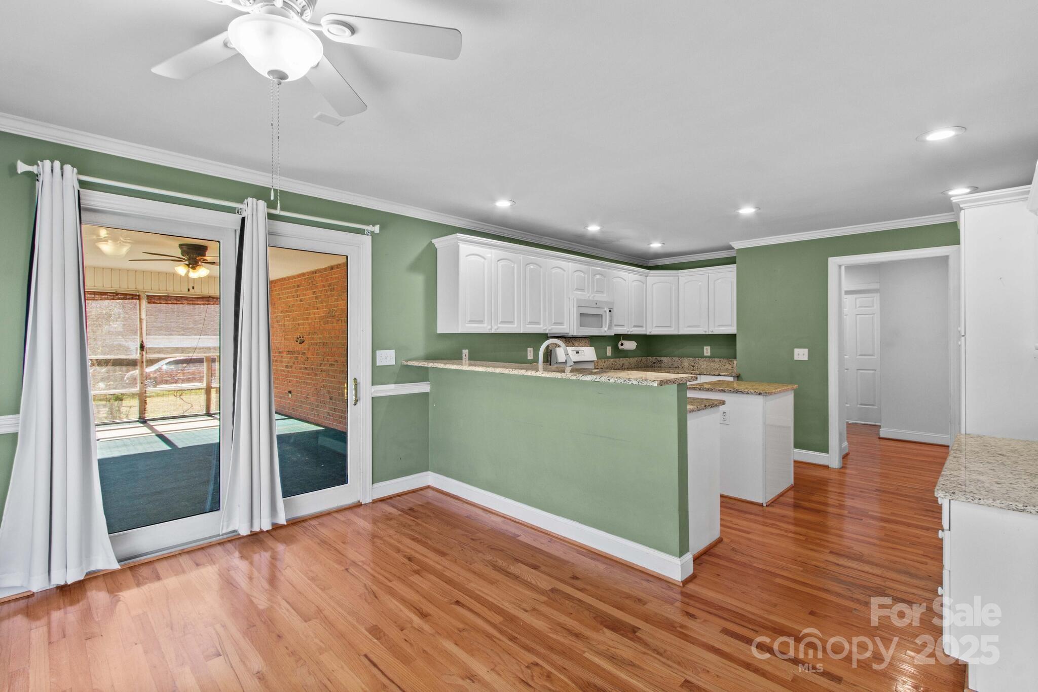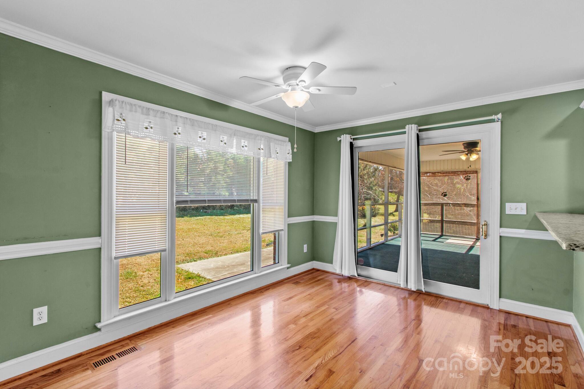 Full Brick home in quiet, desirable neighborhood with no HOA, natural lighting, great floorplan, moldings and hardwood floors through out most of main level, large kitchen with granite countertops, White cabinets, gas range, breakfast bar & center island with attached breakfast room. Large screened porch/patio overlooking private yard with mature grape vines, peach trees, fig tree and peppers. Great room with gas logs/blower, Dining room, Primary bedroom on main with large walk in closet, sitting room ideal for office or exercise room, bathroom has duel sinks, separate shower and garden tub. Laundry room with sink. upstairs 3 additional bedrooms and full bath. Large attic storage walk in & more storage garage pull down. two car garage. conveniently located near I-40 and I-77 ,shopping, dining and golf courses. You will enjoy entertaining as well as everyday living in this beautiful home. This home is a value and priced to sell. Room for a pool. A must see that won't last!