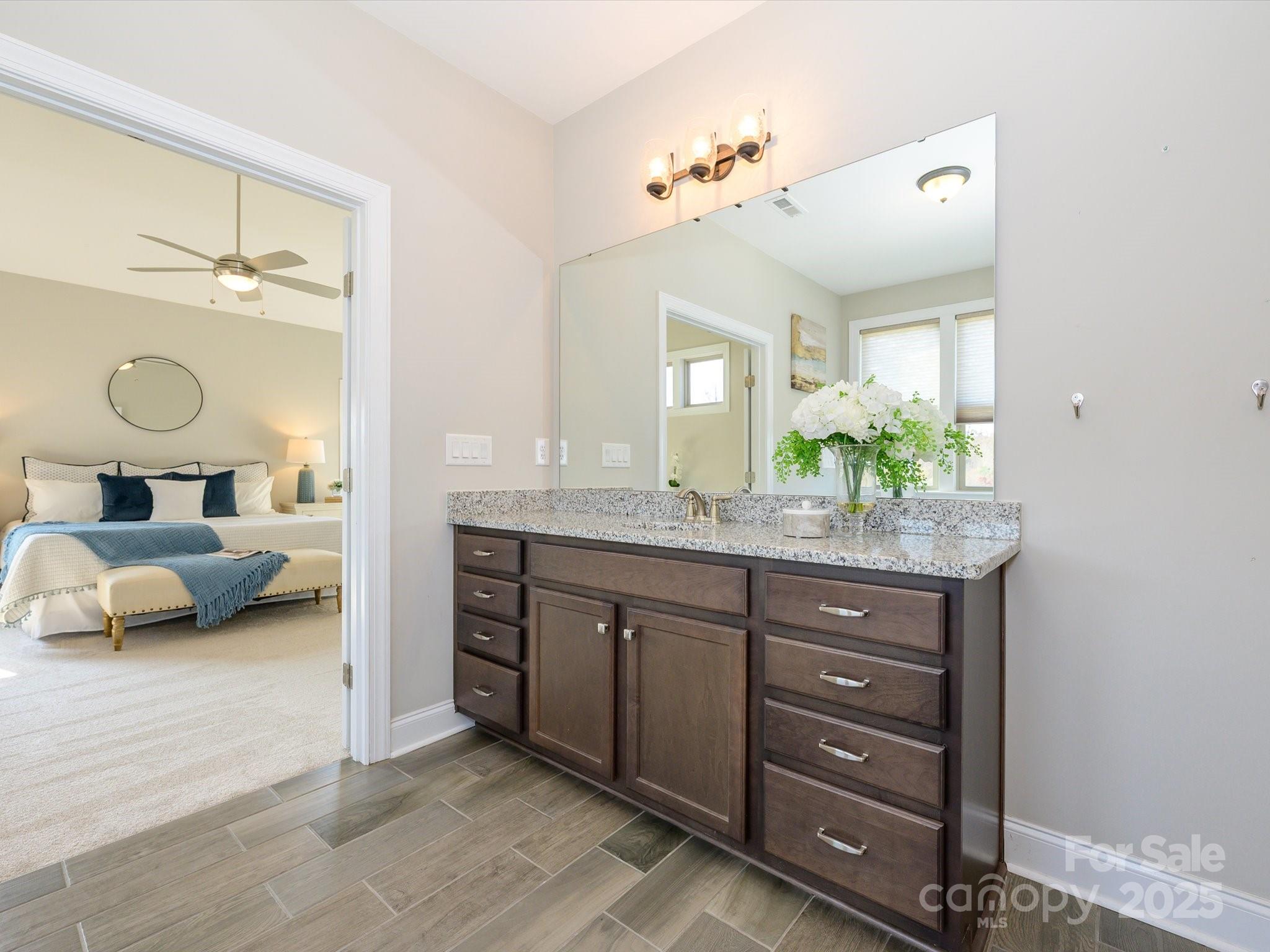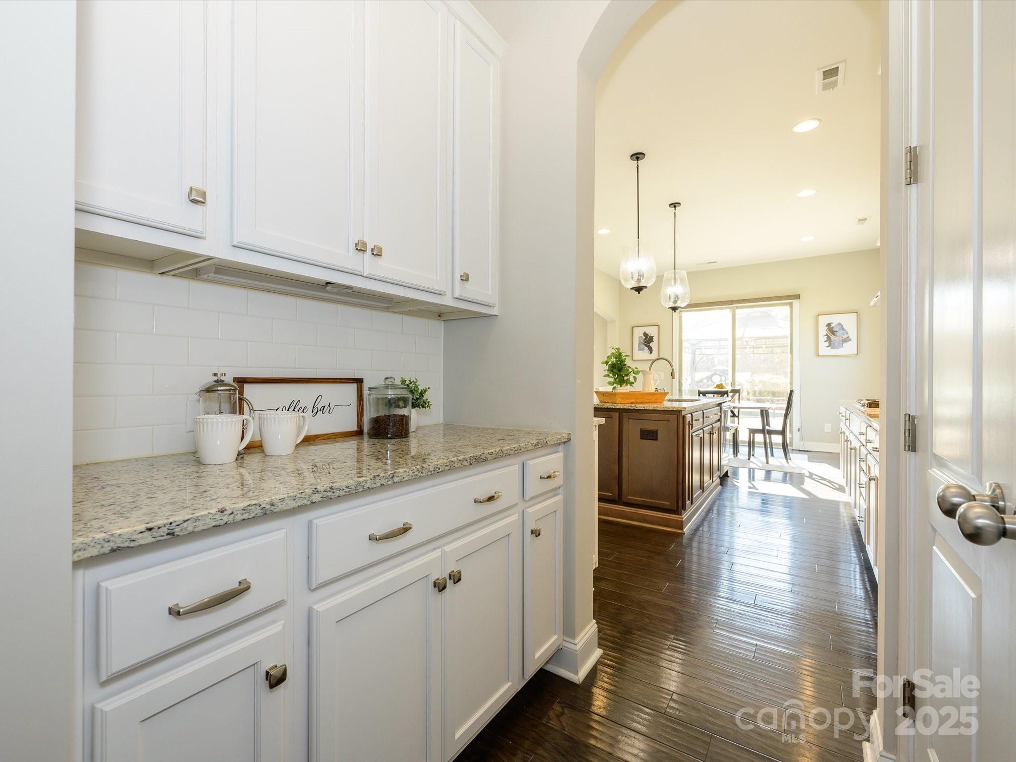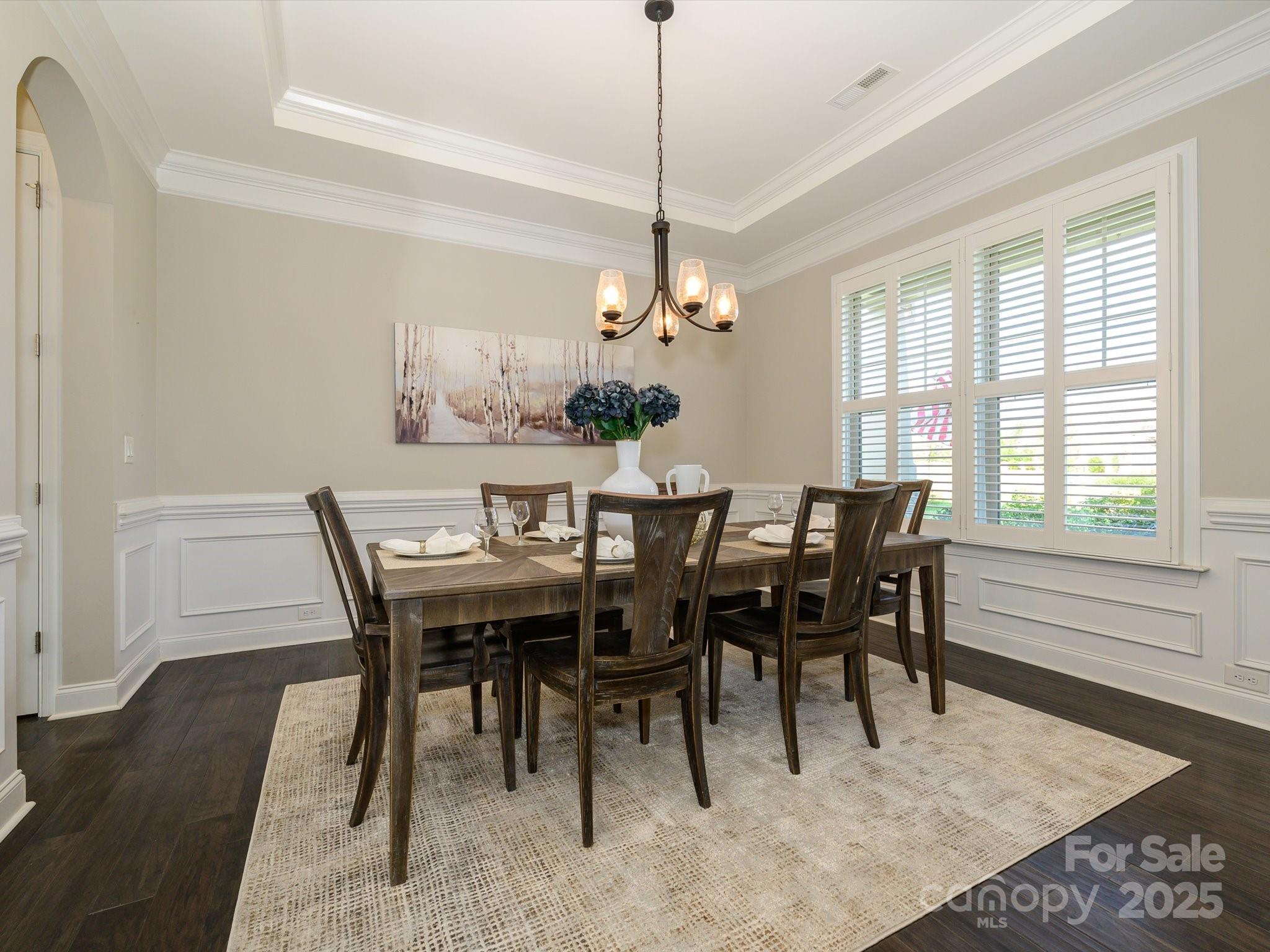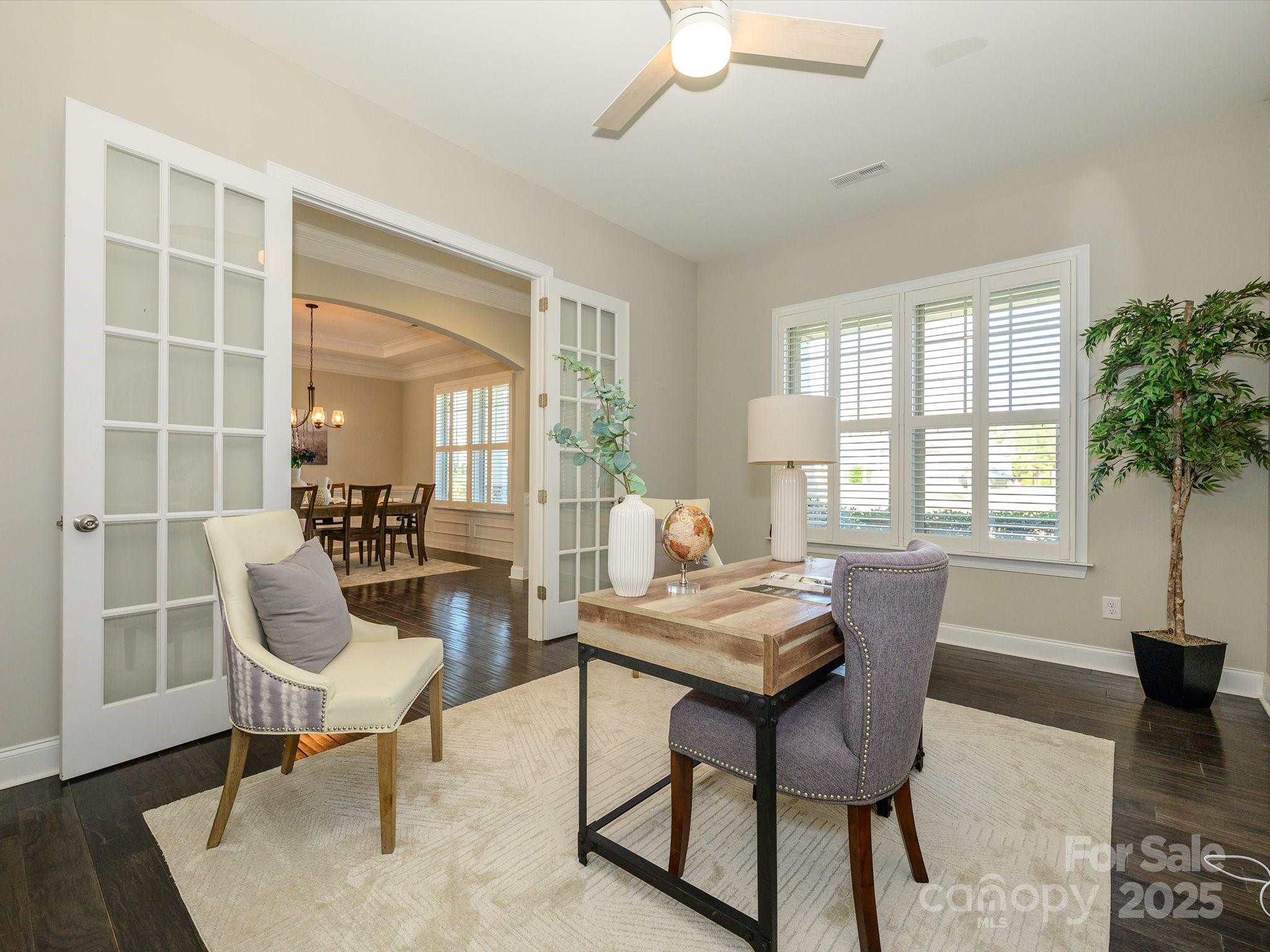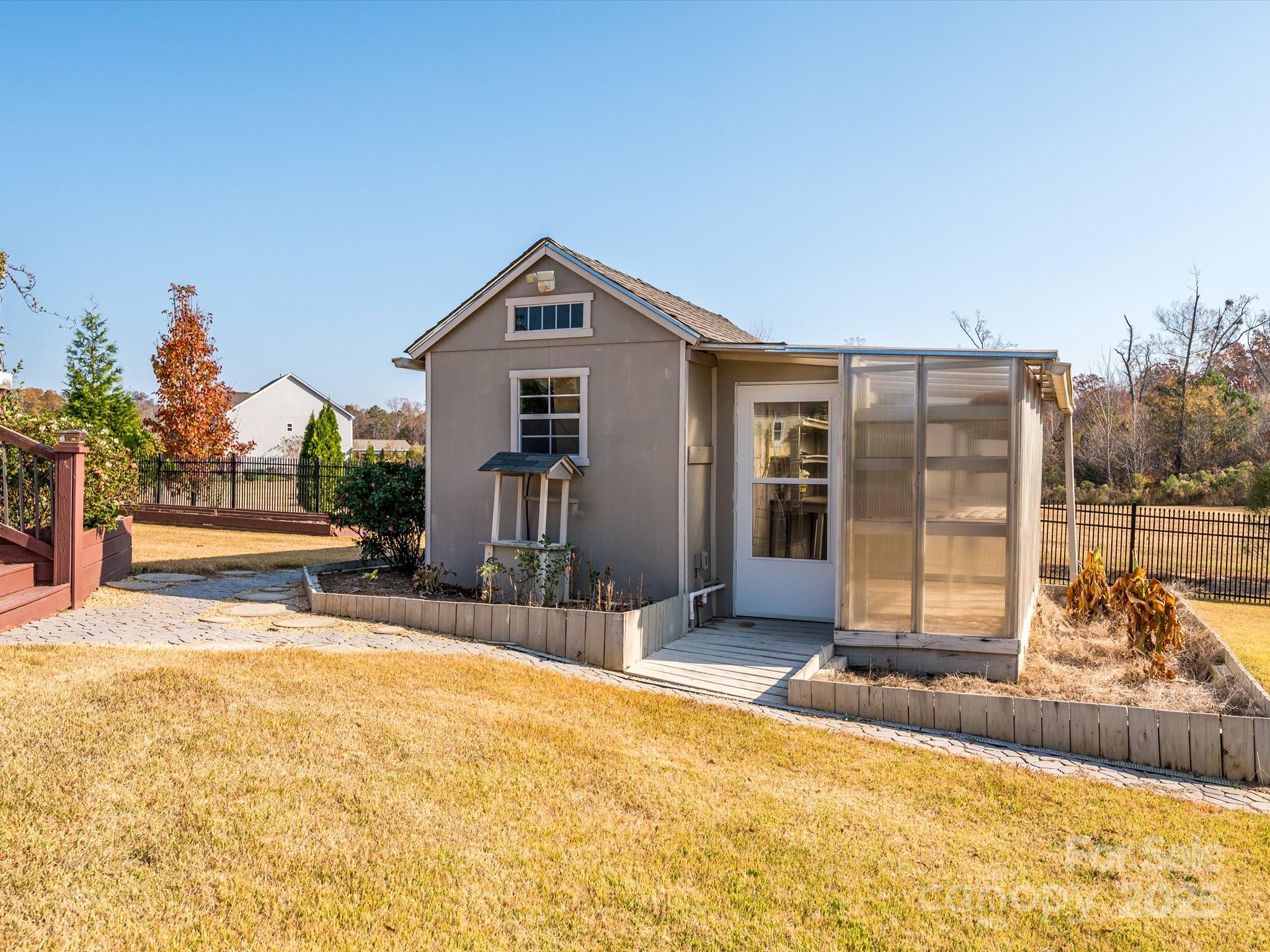 Welcome to this exceptional 2017 Bonterra-built home, where timeless elegance meets modern comfort. With striking Stackstone and cedar-style fiber cement accents, a covered front porch, and board-and-batten shutters, the exterior exudes curb appeal and invites you inside. A three-car side-load garage with pedestrian access, keypad entry, and ample hanging storage offers both convenience and style, complemented by a double-wide driveway and charming walkway to the front door with sidelights and transom. This home backs to trees and has no neighbor to the left. Step inside to discover gleaming hardwood floors throughout the main level, 10-foot ceilings, crown molding, and wainscoting, setting the tone for the sophisticated living spaces. To the left of the entry, a home office features French doors, plantation shutters, and ceiling fan with light kit—perfect for working from home. To the right, a formal dining room boasts tray ceilings, a stunning chandelier, and plantation shutters, ideal for entertaining. The great room is an inviting centerpiece with a coffered ceiling, gas-log fireplace with mantle, ceiling fan, and recessed lighting, seamlessly flowing into the gourmet kitchen. Here you’ll find 42-inch white cabinets with molding, granite countertops, subway tile backsplash, a large island, gas cooktop, wall oven and microwave, and dishwasher, along with a Butler’s pantry and spacious two-door pantry for all your culinary needs. A breakfast nook bathed in natural light completes this chef-ready space. The main floor guest suite provides privacy and comfort with a walk-in closet, en suite bath with walk-in shower, gentleman-height granite vanity, and tile flooring. A thoughtfully designed mudroom features a stainless steel utility sink, 18-inch tile, and built-in storage, conveniently located off the garage. Upstairs, wood treads with a carpet runner lead to a series of spacious bedrooms, including a Jack and Jill bath with dual sinks and tile surround. The bonus room with vaulted ceiling and ceiling fan overlooks the backyard, providing a versatile space for recreation or relaxation. The luxurious owner suite is a private retreat with vaulted ceilings, large windows, spa-inspired bath with garden tub, seamless glass walk-in shower, dual vanities, water closet, and an expansive walk-in closet with organizers. The backyard is a serene oasis designed for entertainment and relaxation, featuring a saline pool with PebbleTec finish, hot tub (sold as-is with no known issues), patio with a pergola and built-in grilling area, deck with seating areas, outdoor fireplace, built-in fire pit, pavilion, greenhouse, raised garden beds, and outbuilding. With solar energy, this home combines eco-friendly efficiency with upscale living. No pets have lived in this home and has been a non-smoking household.