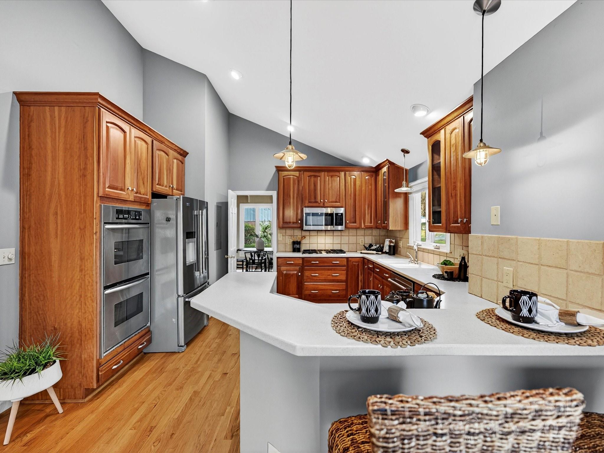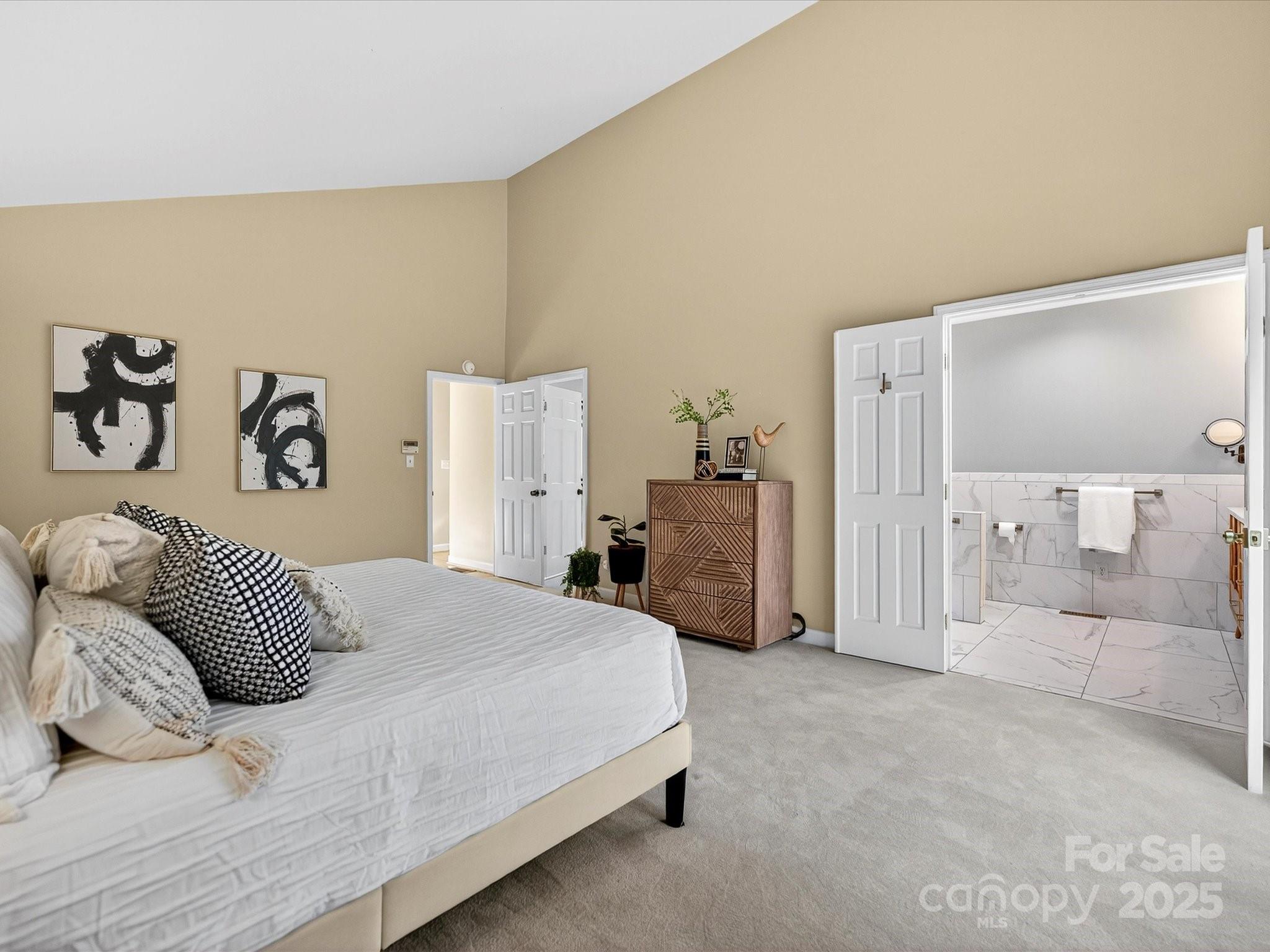 Wonderful single family home in Carmel South. This home sits on a .27 acre private cul-de-sac lot. Entering into the large foyer you will find a grand great room with cathedral ceilings, built-ins, and a stone fireplace ready with gas hookup. From the great room exit to the large deck and private backyard views. A short hall from the foyer leads to the large main level primary suite and newly remodel primary bath with a "wet room" tub and shower concept. Also enjoy the cedar shelving closet system in the primary bedroom. The dining room is located just off the foyer with custom built ins, wet bar and beverage refrigerator. The kitchen has new high level cabinets, stainless steel appliances, gas cooktop, sitting bar, breakfast area and cozy keeping room all with access to a remodeled half bath and side deck. All the lower level living areas have beautiful oak hardwood flooring and cathedral ceilings in each room. On the upper level you will find lots of light in the two large bedrooms, each with full private baths. The expanded two car garage is just off the side deck and offers storage or workshop space.