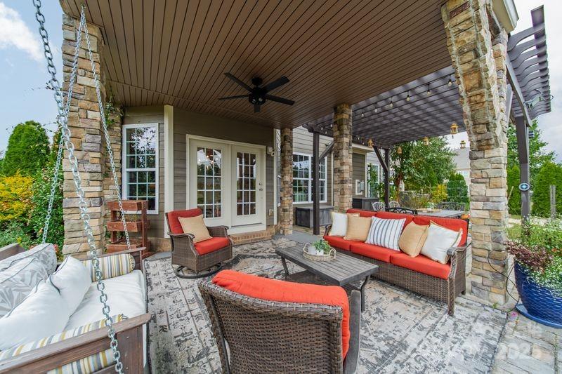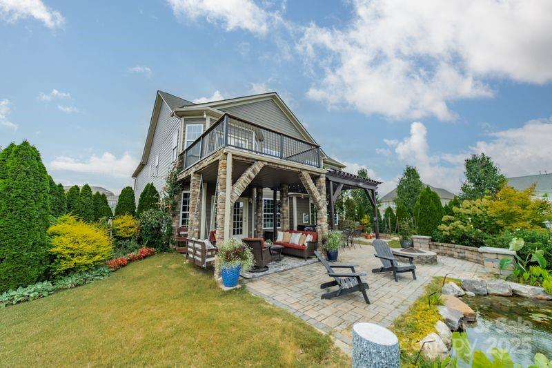 This popular Blythe Floorplan by M/I Homes has been upgraded with thoughtful details and ready for its new owner! Downstairs features wood floors throughout, chef’s kitchen with white cabinetry, tile backsplash with ample counter & storage space, center island + separate breakfast bar, wall oven + microwave, gas cooktop, walk-in pantry & breakfast area + formal dining room! Spacious great room with fireplace & downstairs bedroom / bathroom. Upstairs, the primary suite is a true retreat—complete with spa-like bathroom, dual vanities, soaking tub, and a custom walk-in Closet-by-Design that’s to die for! Step outside to your private balcony overlooking the backyard sanctuary. Movie nights come alive in the oversized bonus/media room, complemented by an open loft area for even more living space. Three additional bedrooms, two full baths complete the upstairs. Nestled on a landscaped .35 acre lot, the backyard is a fenced private oasis featuring lush gardens, a koi pond, and an extended paver patio ideal for entertaining or quiet relaxation. The courtyard driveway leads to a two-car garage plus an additional one-car garage. Fresh interior and exterior paint make this home shine. Located in the desirable Blume community, enjoy sidewalks throughout plus a pool, playground, tennis courts, and volleyball courts. With Top rated schools, nearby grocery stores, restaurants, shopping and easy access to I-485, come experience why this home is so loved!
