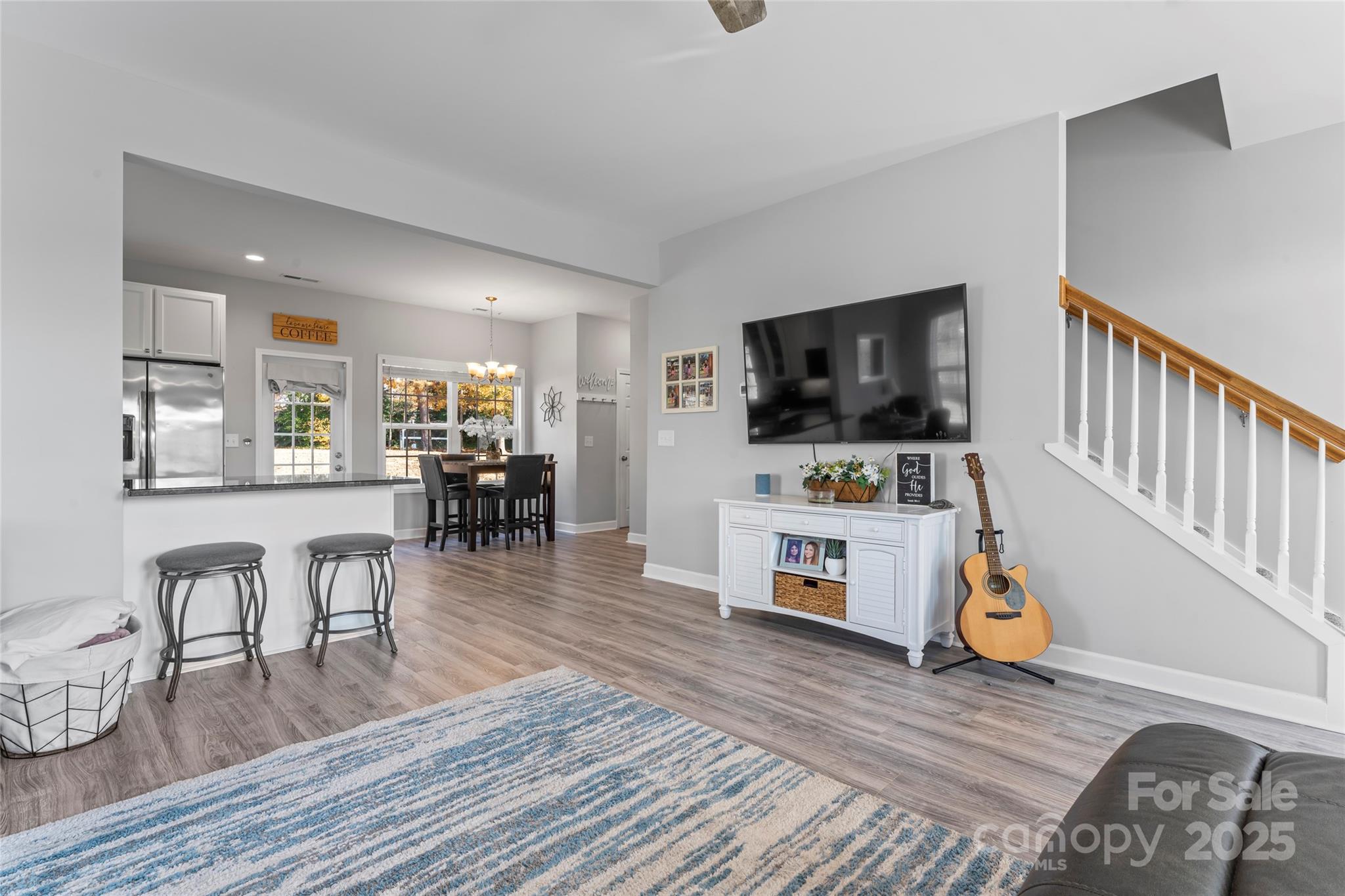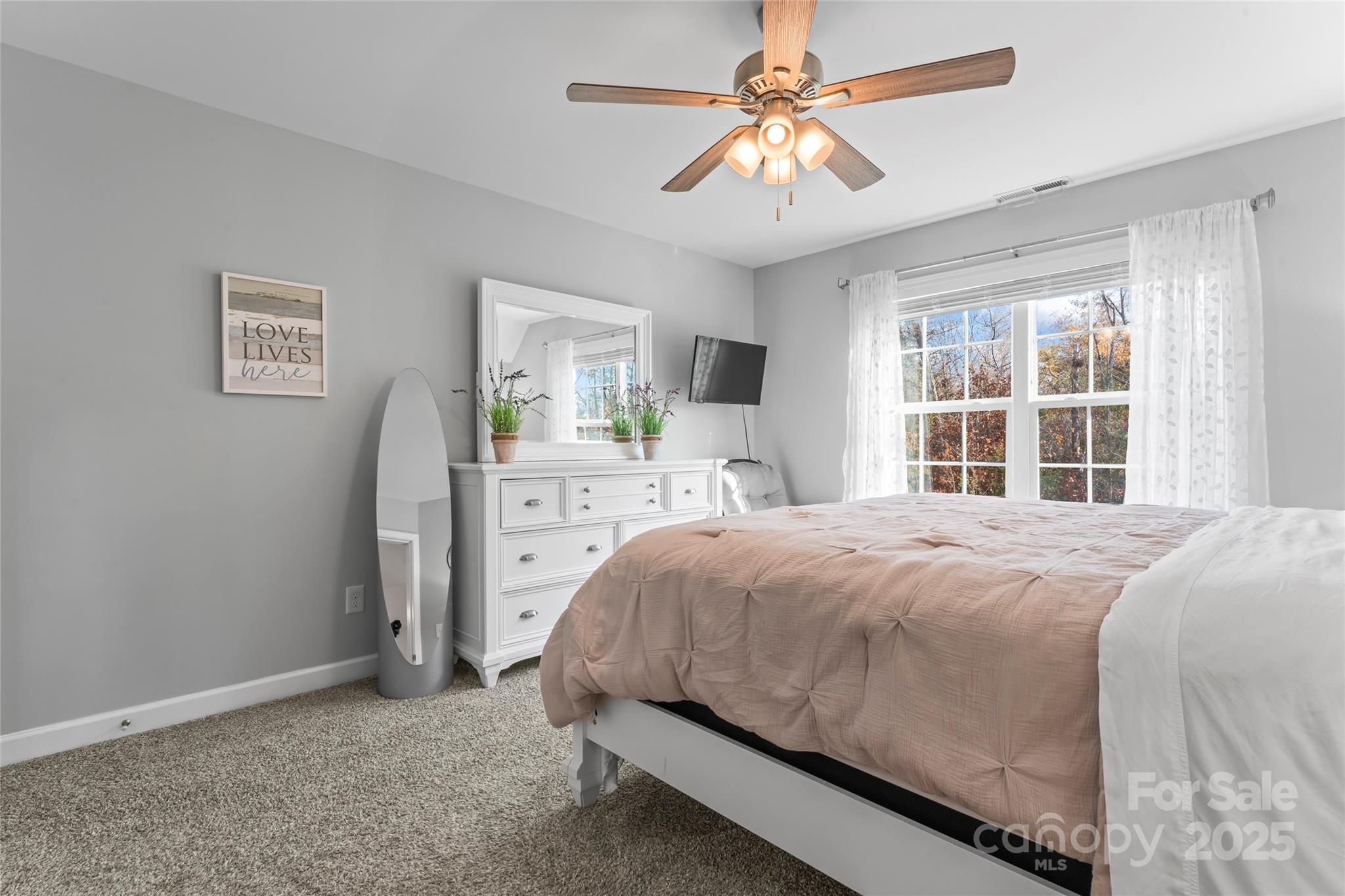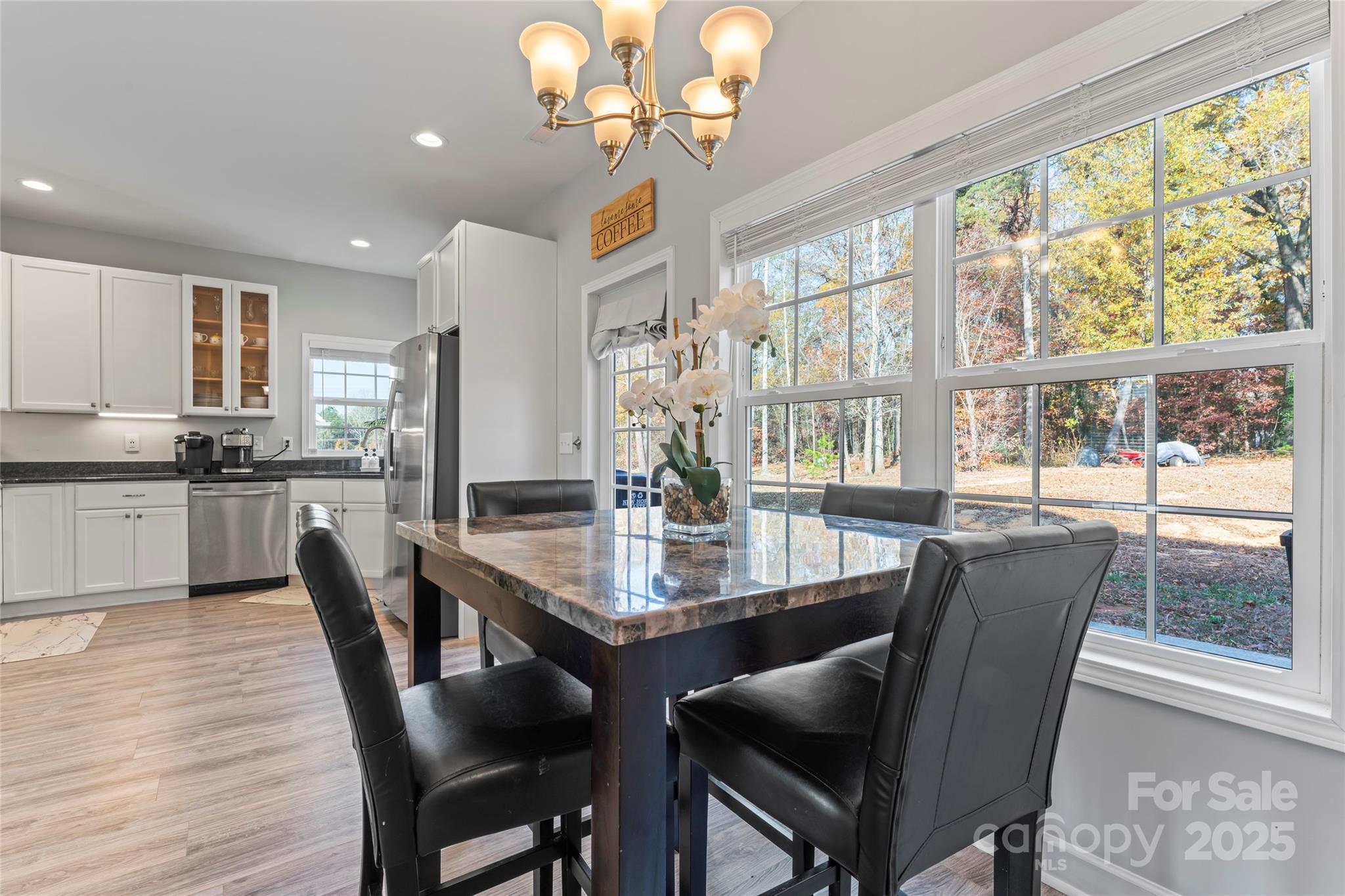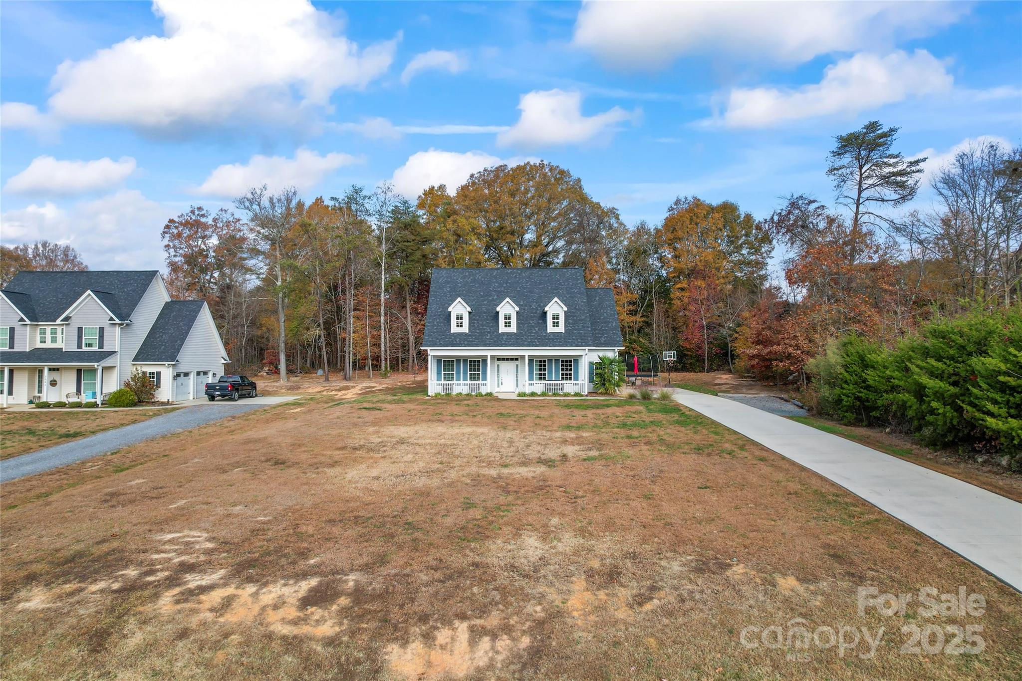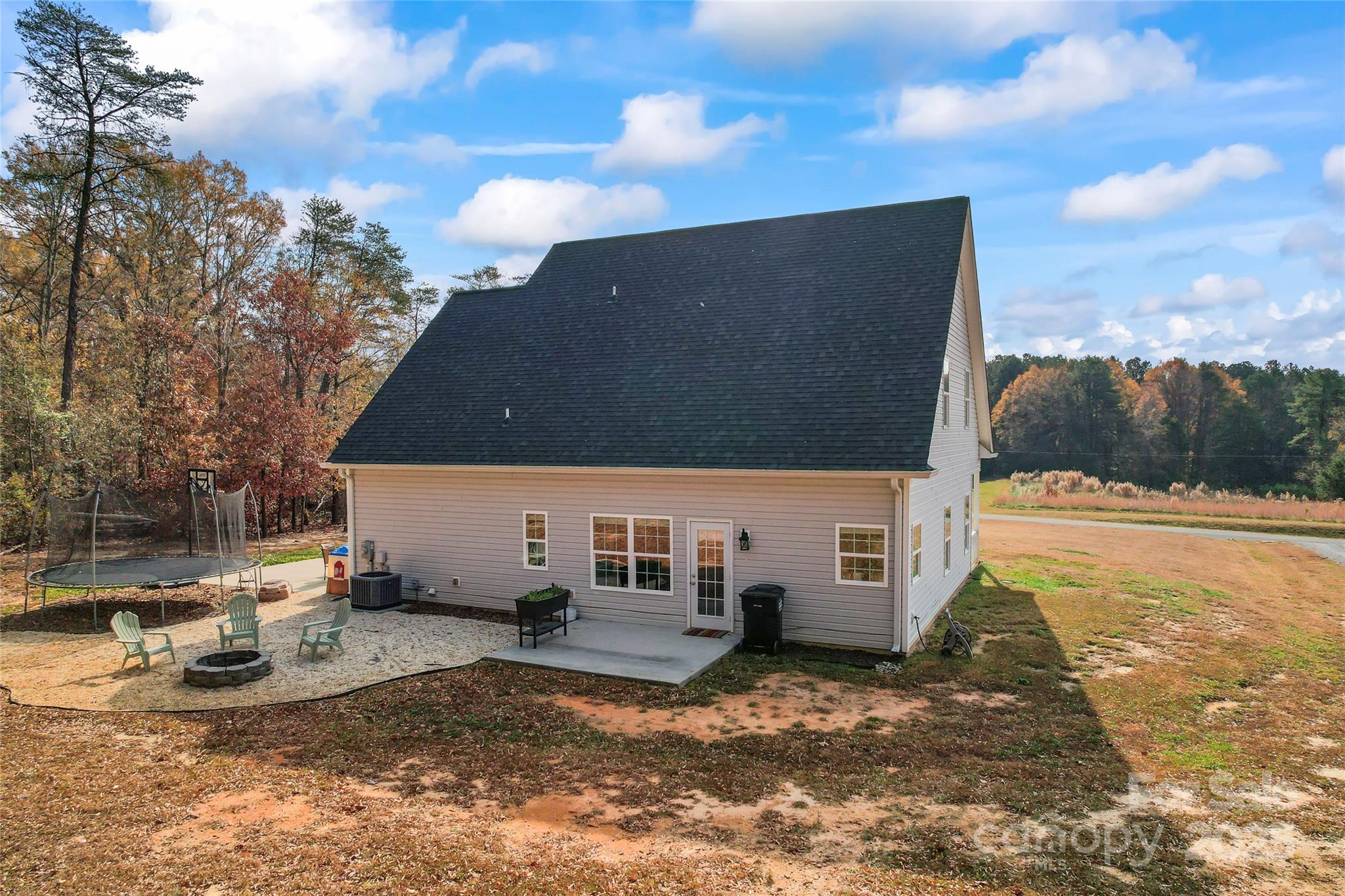 Charming home on almost 3/4 of an acre with gorgeous curb appeal! This beautiful home with massive front yard features an inviting large front porch! Inside you find a bright and open layout filled with natural light! The kitchen boasts white cabinetry, granite countertops and stainless-steel appliances making it an ideal space for cooking and entertaining that is open to the large family room! The primary suite is a true retreat with plenty of space to relax! The ensuite bath features a separate large garden tub, tiled shower, granite topped vanity with double sinks and walk in closet. Large spacious secondary bedrooms and bathroom separate from the primary suite makes this an ideal layout! Additional highlights include a walk-in attic and a bright spacious side load garage! Step outside to a tree-lined backyard complete with a patio and firepit perfect for relaxing and entertaining. This home offers the perfect blend of comfort, space, and convenience as it is located just minutes from shopping and everyday essentials and provides both privacy and accessibility.