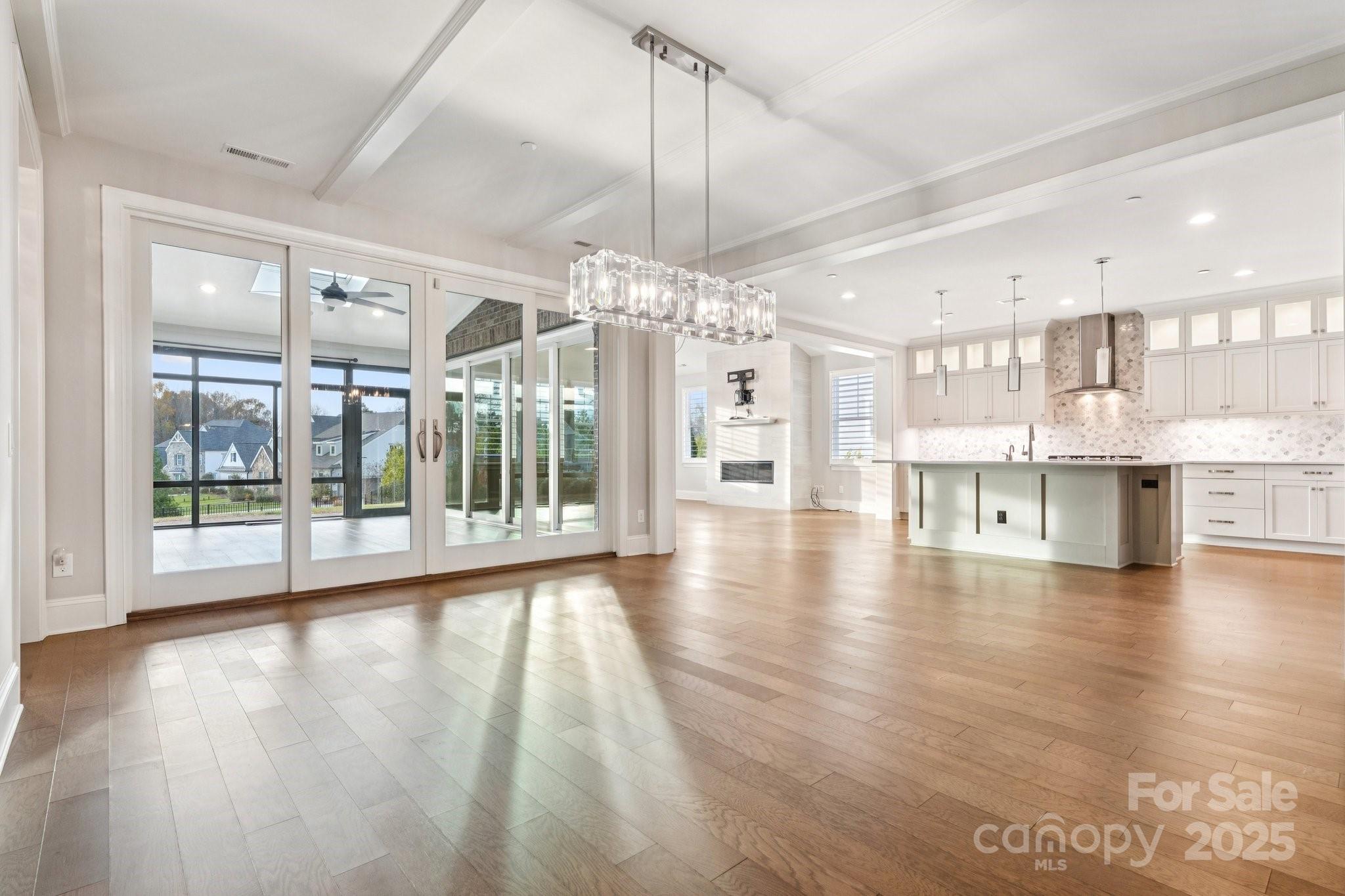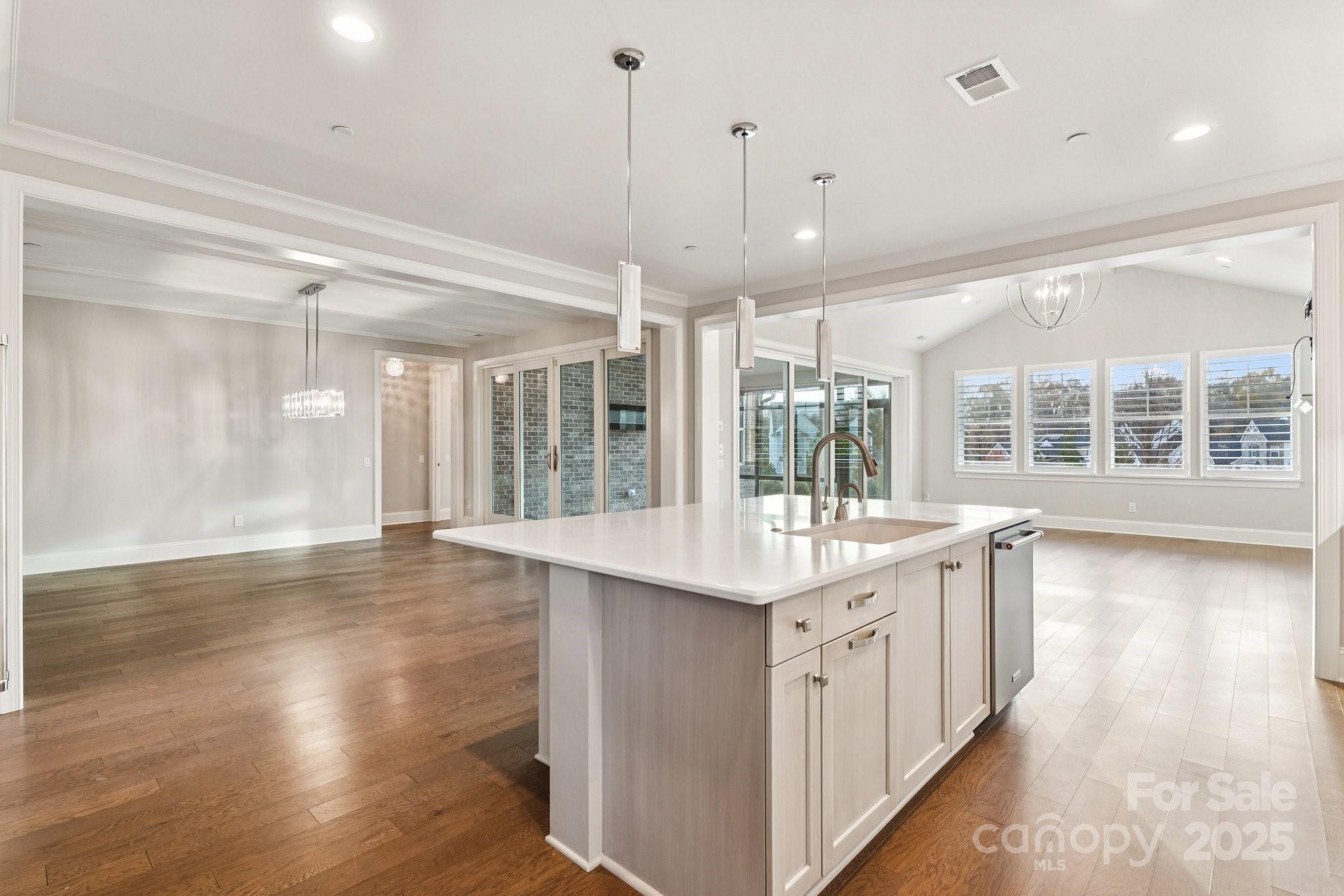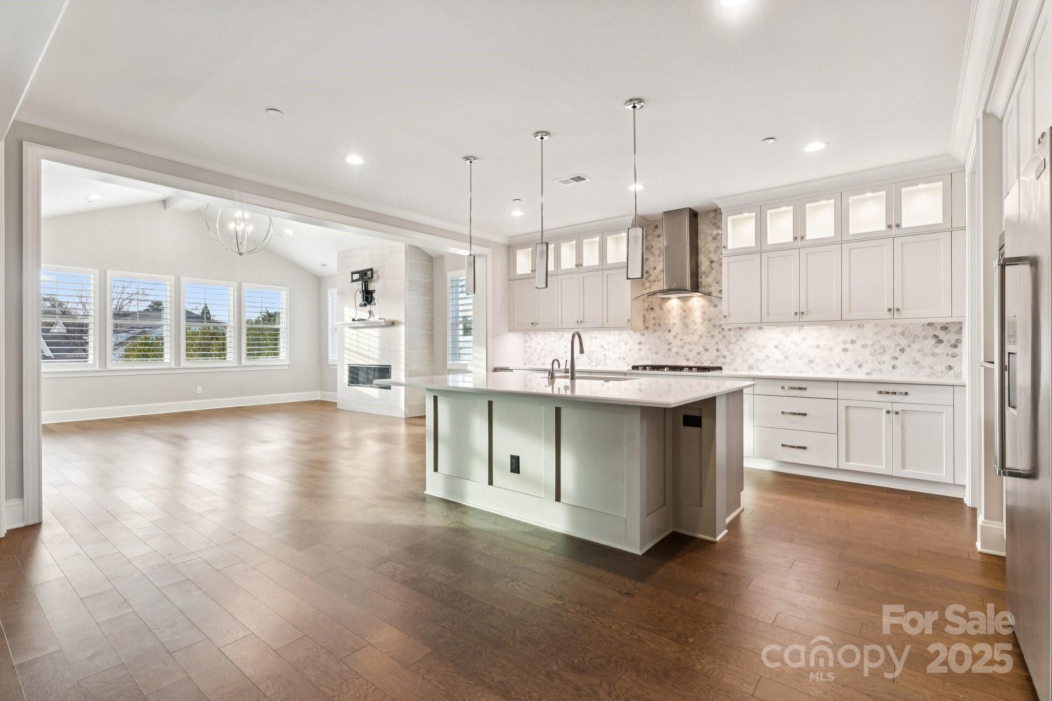 Full Brick Beauty Built by Classica Homes Located in a coveted neighborhood, this stunning home offers main-level living at its finest. The primary suite features a custom walk-in closet with built-in storage, complemented by an additional guest suite on the main level for convenience. Enjoy custom hardwood floors, upgraded trim with 7¼" baseboards, and stacking sliding doors that create seamless indoor-outdoor living. The chef’s kitchen boasts KitchenAid stainless steel appliances, an oversized island with pendant lighting, and a chimney-style hood with glass canopy. A sunroom completes the main level, providing a peaceful retreat for relaxation and views. Upstairs, a large loft/bonus room with wet bar is perfect for entertaining. Additional highlights include a water filtration system, instant hot water dispenser, generous walk-in storage area, and a gas line stub out on the patio for outdoor cooking and endless entertaining. Highly sought after schools and ease of commute via I485 to Uptown Charlotte.